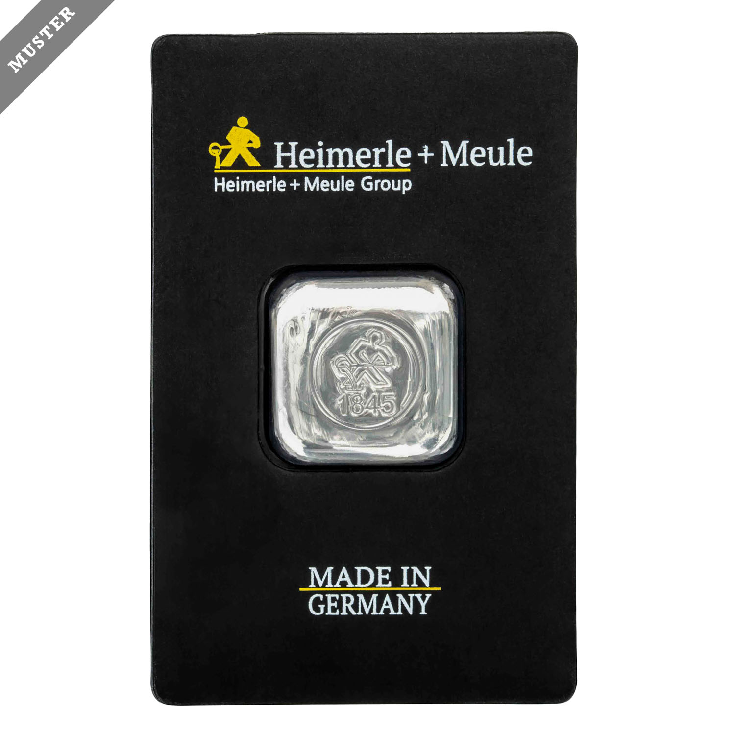 SILVER bar - 1 oz fine silver, cast, square shape, manufacturer: Heimerle+Meule, in original packaging.