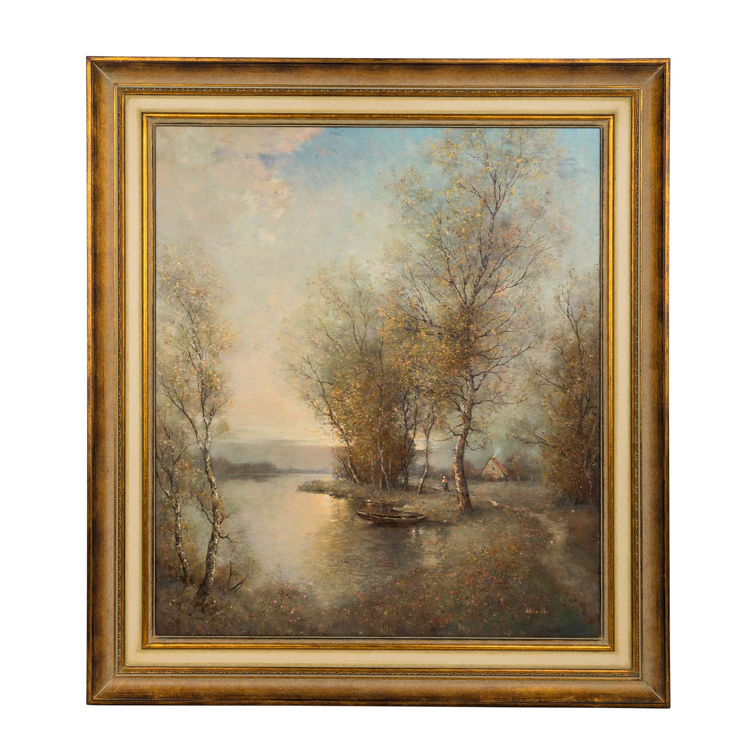 HEINISCH, HERBERT (1932-2005) ""Am Altrhein"" Oil on canvas, signed, hxw: 70/80 cm, framed, original letter enclosed.