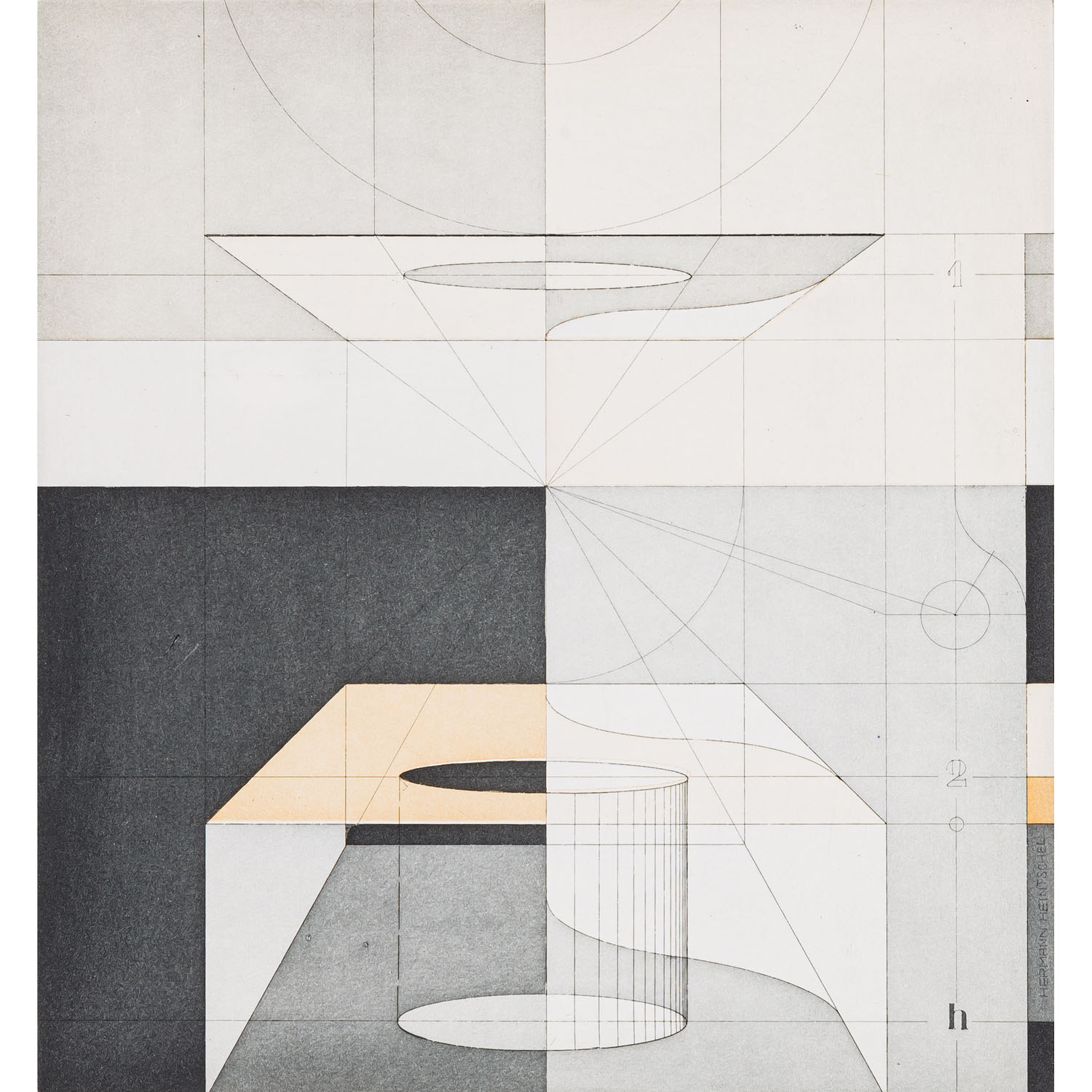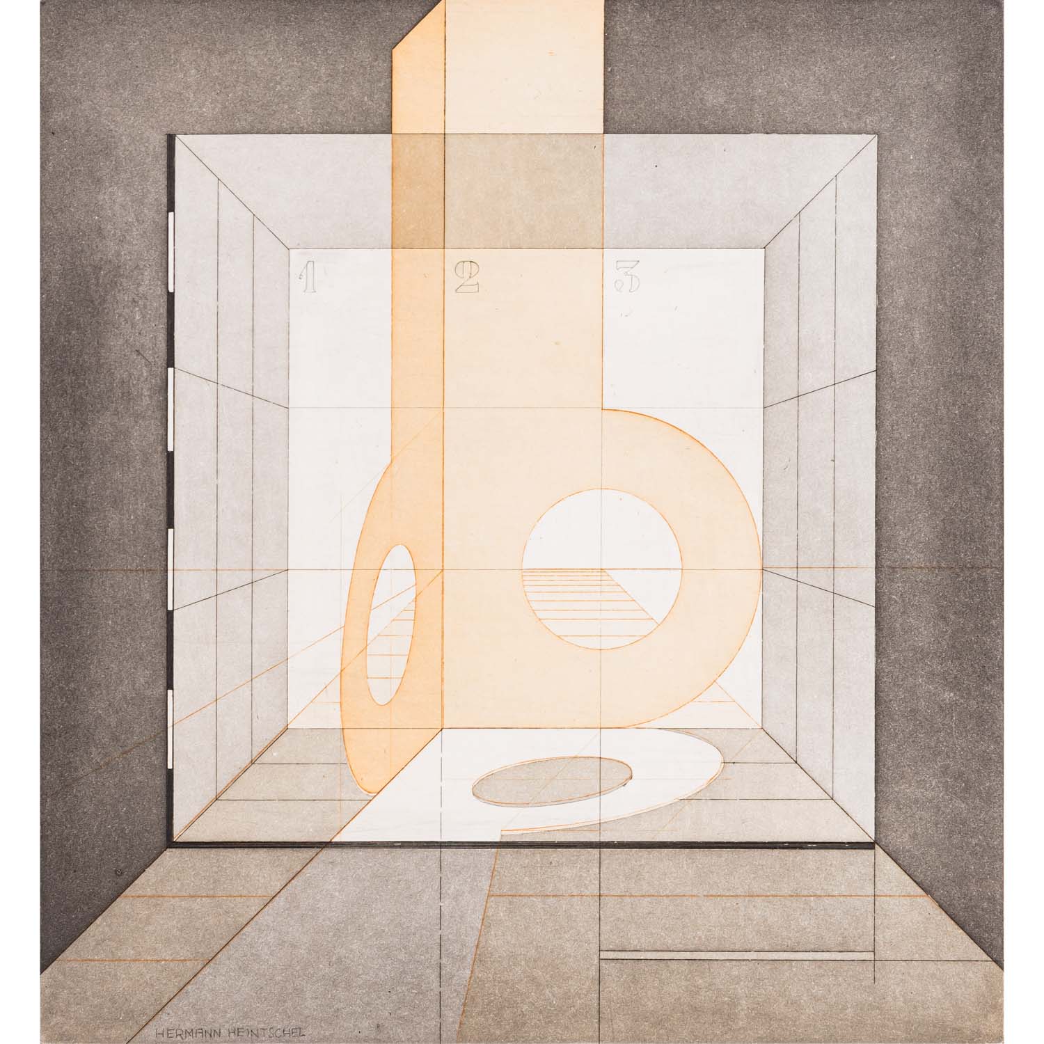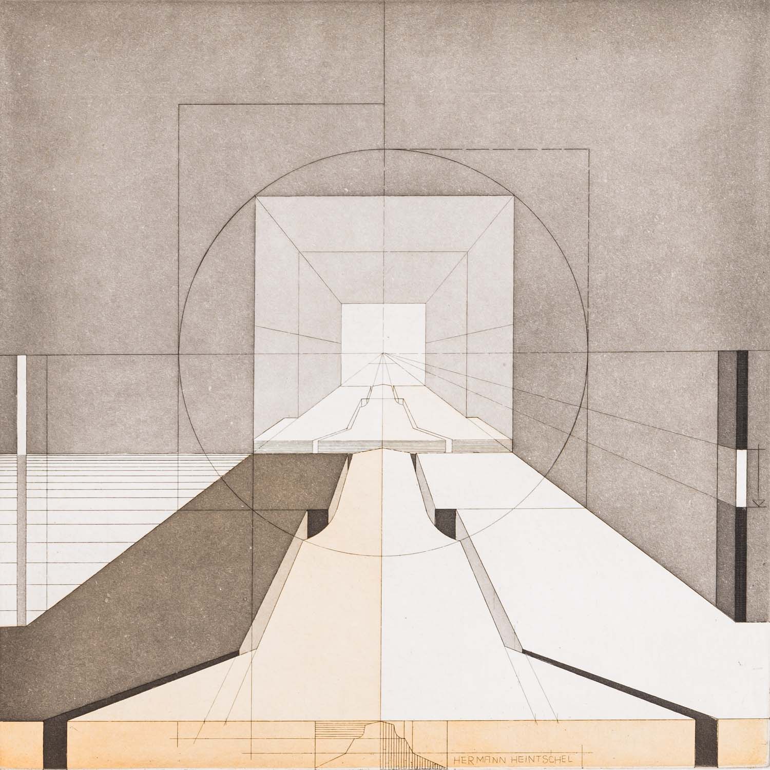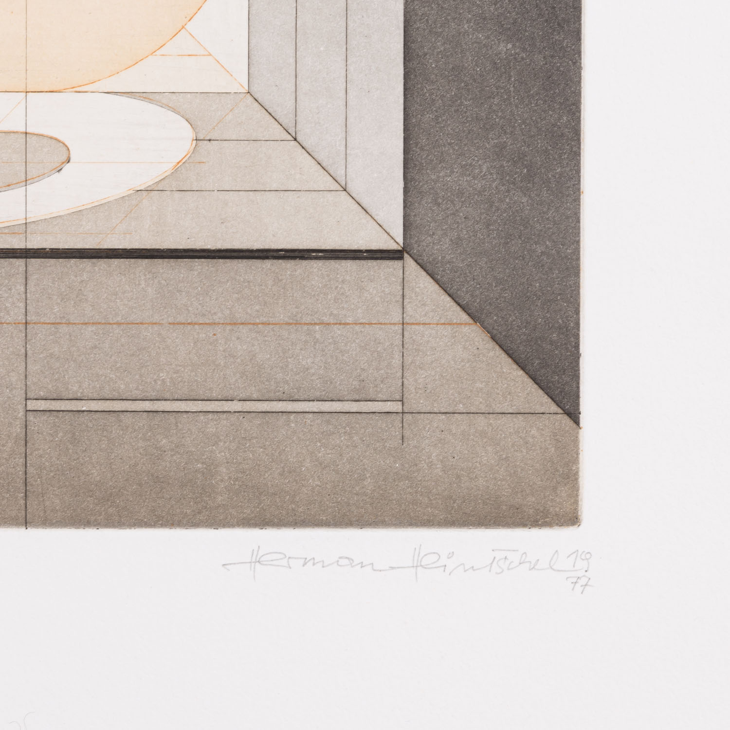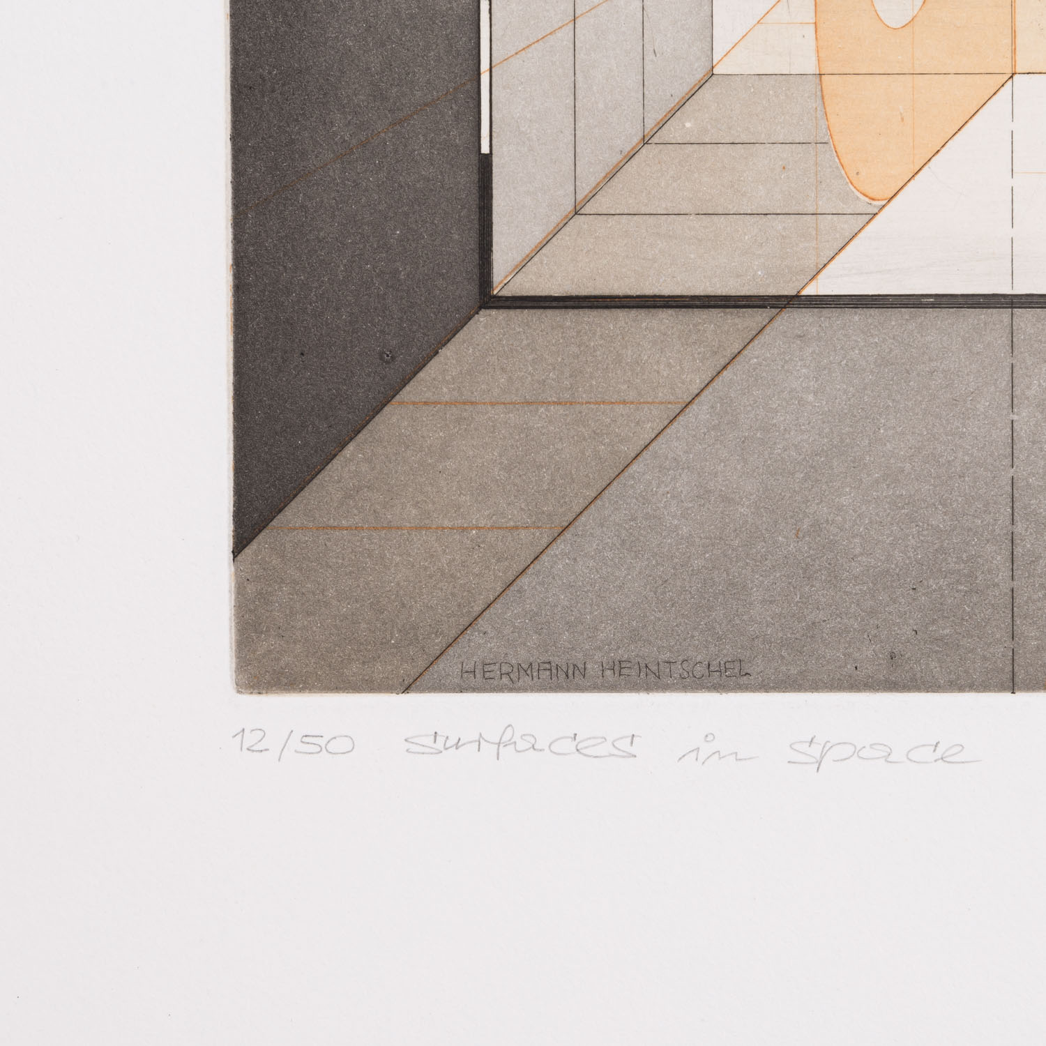 HEINTSCHEL, HERMANN (1931-1998), 5 colour aquatint etchings 'Surefaces in Space' and others, 1977/78, each on laid paper, each signed and dated by hand in pencil, each numbered (edition of 50), drystamp 'HEINTSCHEL HANDDRUCK' lower right, HxW: plate each approx. 26x24 cm, sheet each approx. 53x38 cm. Traces of age, partially slightly browned and stained.