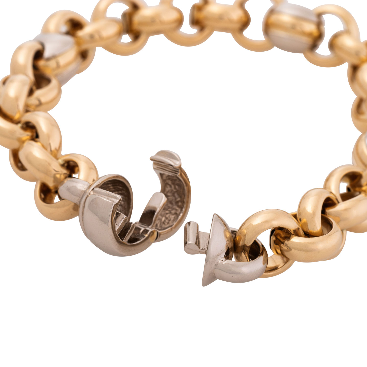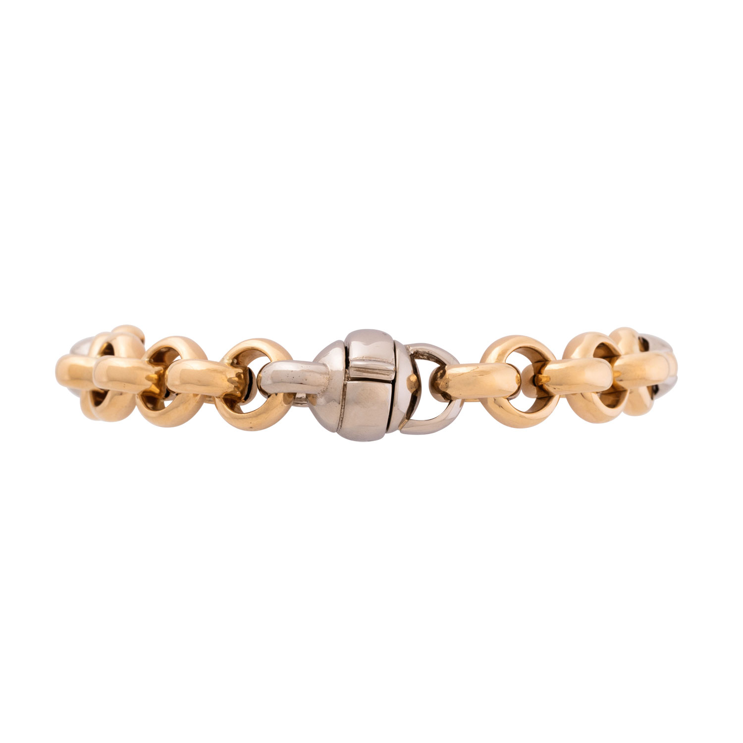 Bracelet, 18K yellow and white gold, 35.9 g, L: ca. 21 cm, ball clasp with clip ca. 1.3 cm, late 20th century, minimal signs of wear.