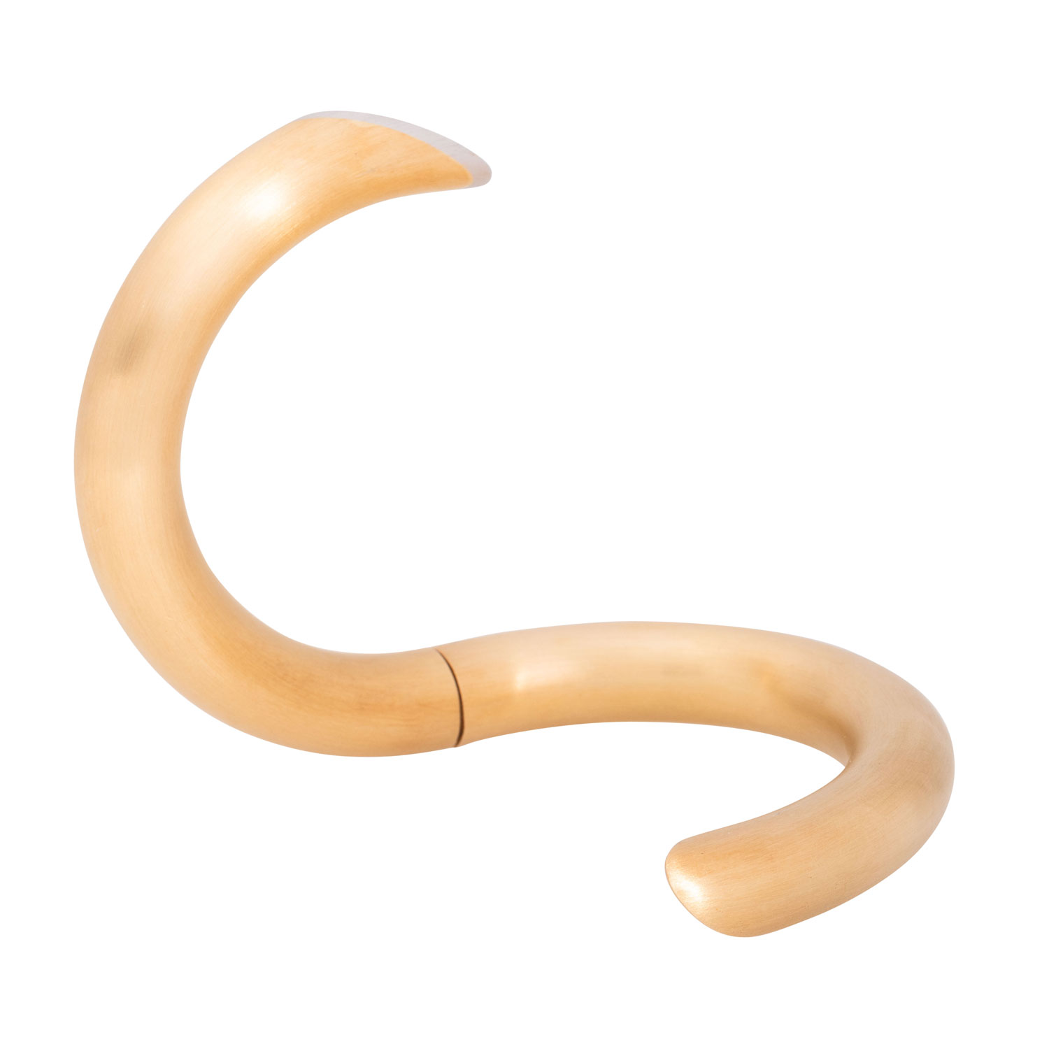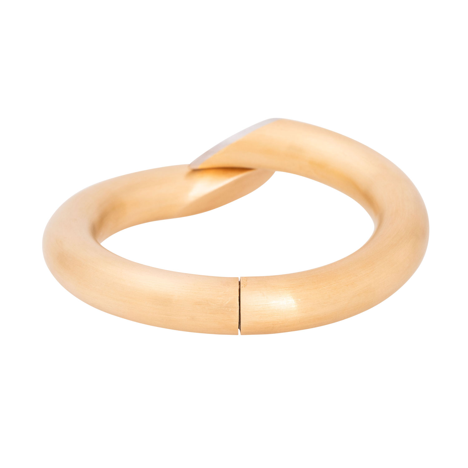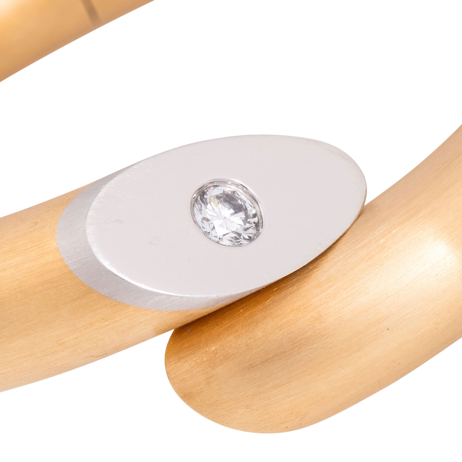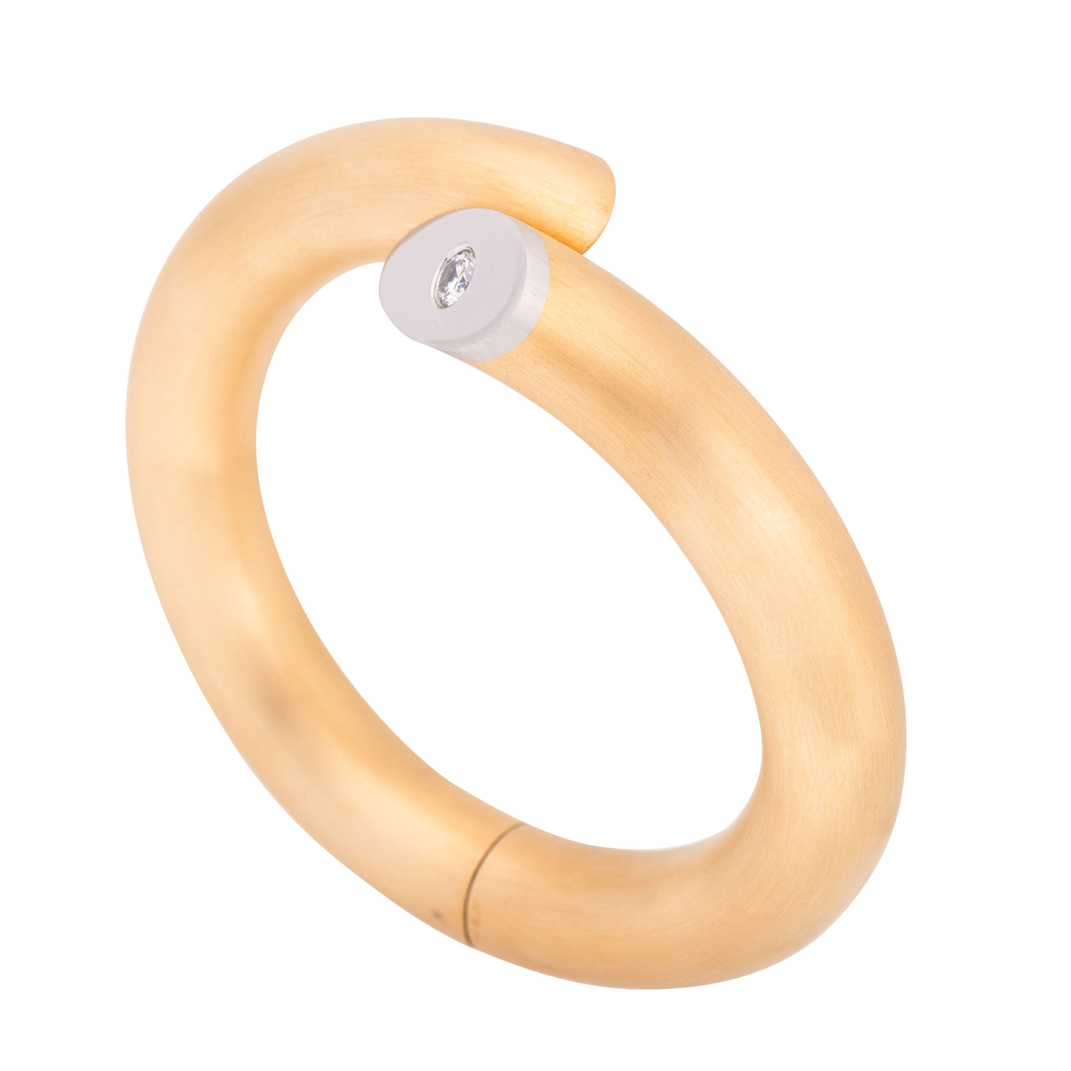 HENRICH & DENZEL bangle with brilliant-cut diamond ca. 0.5 ct, ca. TIW (K)/VS, 18K yellow gold, with platinum detail, 106.8 g, inner circumference ca. 17.5 cm, round profil D: 11.5 mm, ingenious folding and rotating mechanism, 1990s, satinized surface slightly abraded, otherwise good condition, marked HD fine jewellers quality.