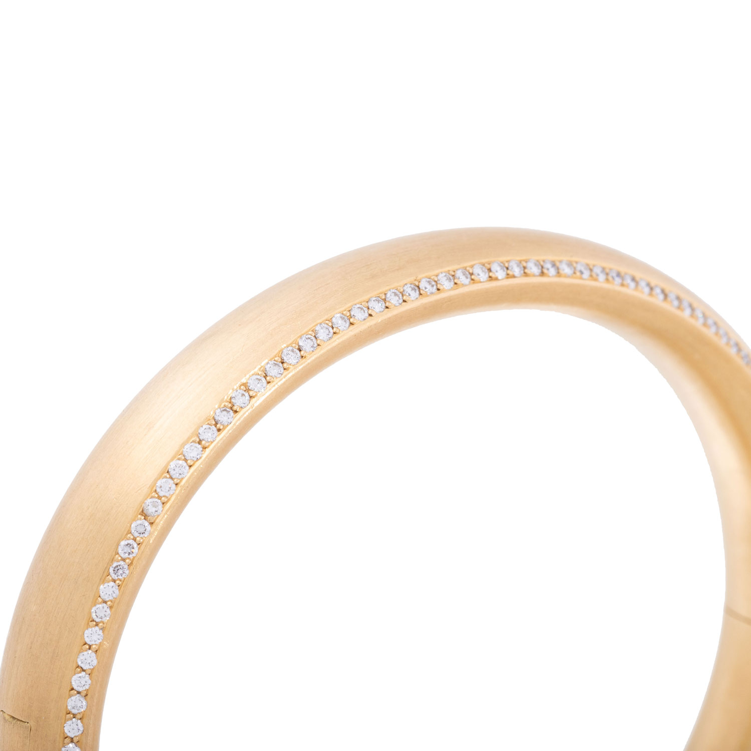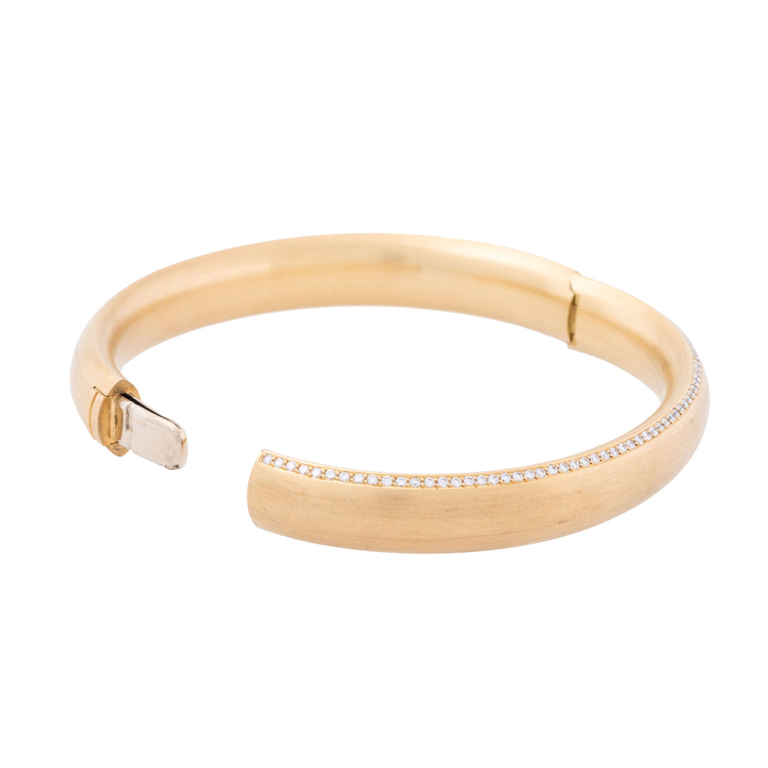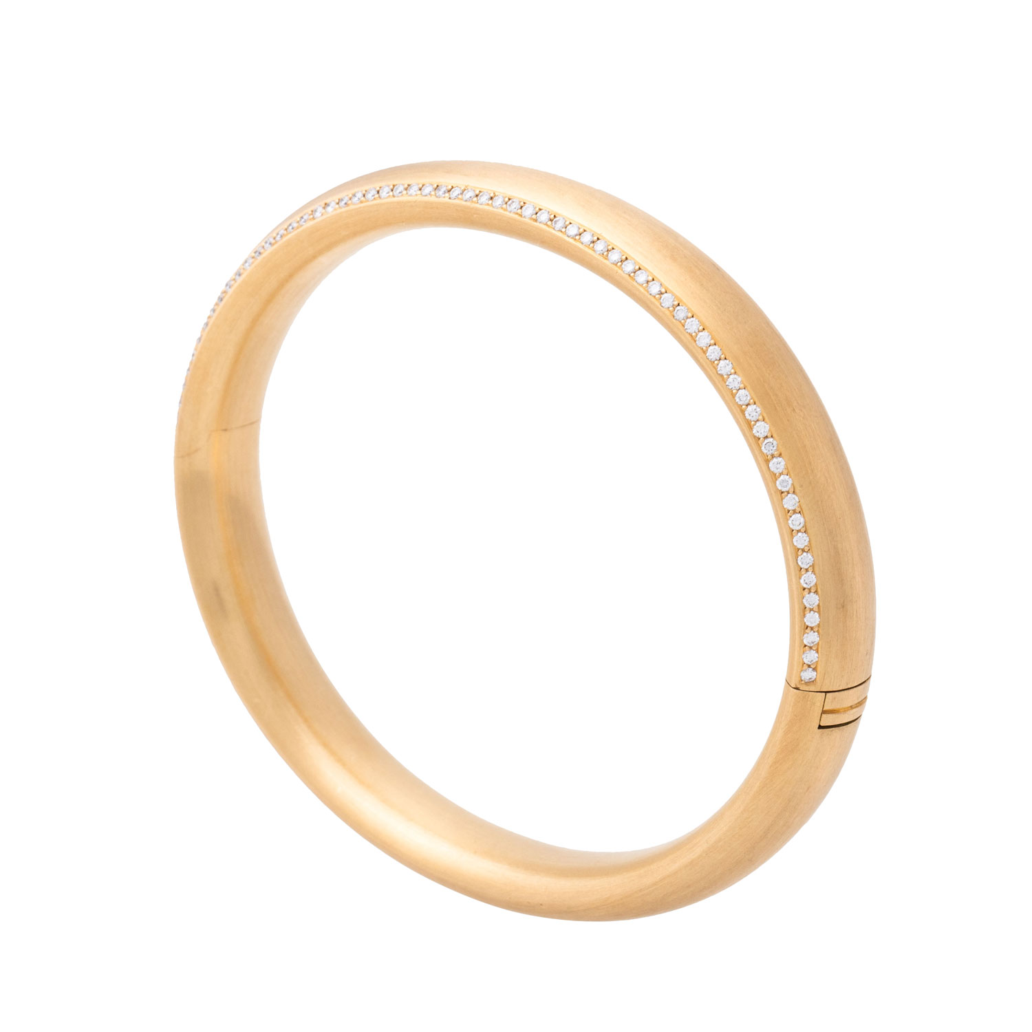 HENRICH & DENZEL bangle with brilliant- cut diamonds totalling ca. 0,52 ct, RW (F-G)/ IF (engraved). 18K YG, 52,5 g. 20th/ 21st century, with signs of wear, hallmarked.