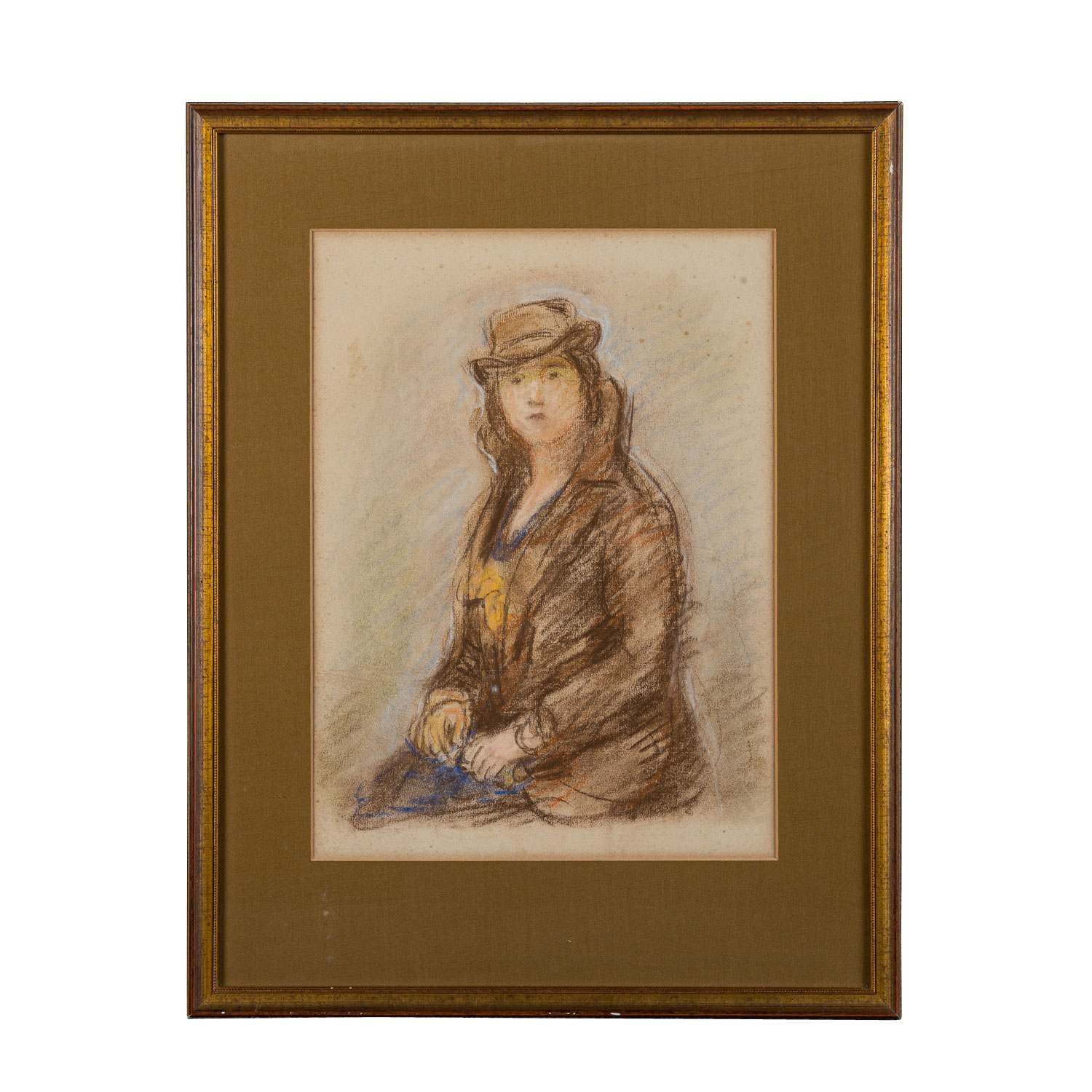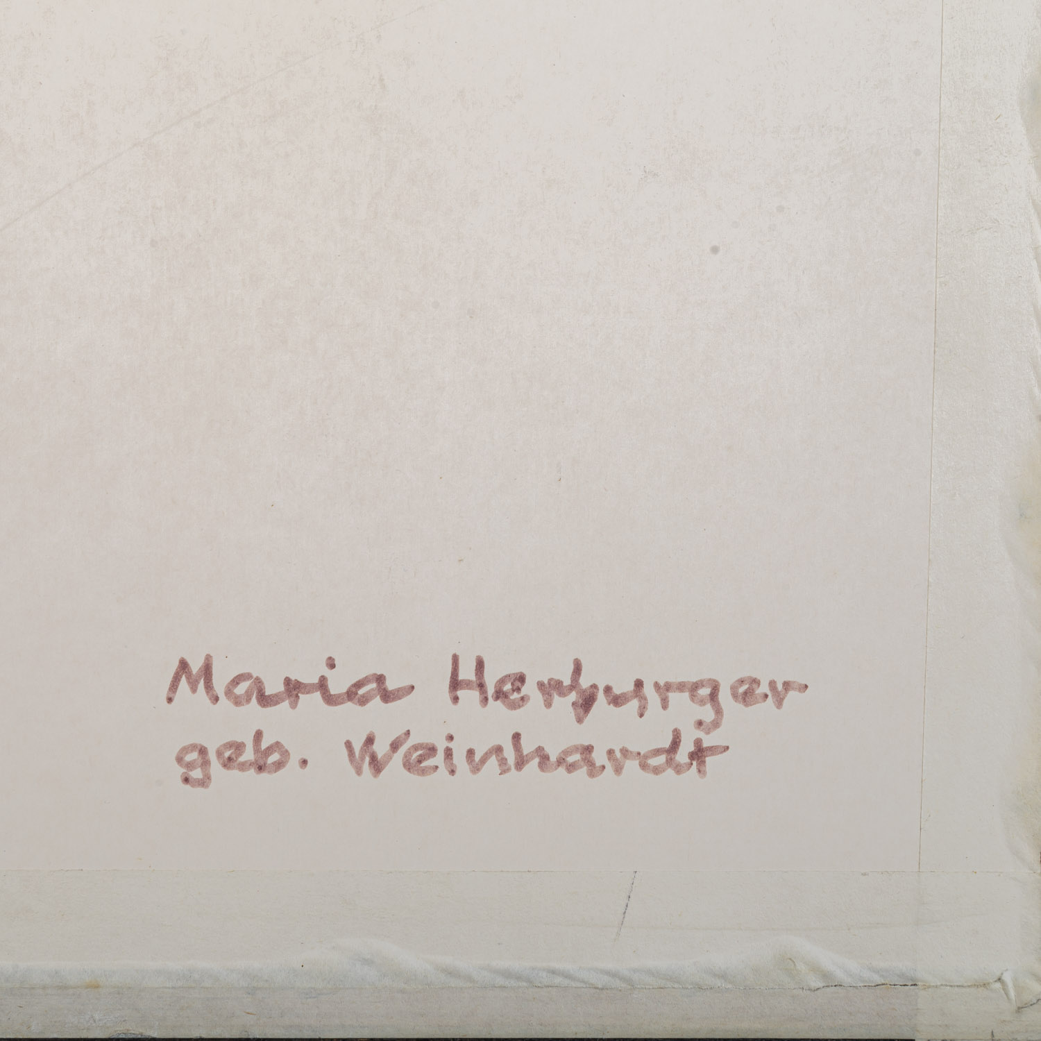 HERBURGER, JULIUS (1900-1973), 'Half portrait of the artist's wife', colored chalk/paper, HxW: passe-partout cutout approx. 37.5x27.5 cm (55x42 cm with frame). Browned and stained. Framed behind glass in a passe-partout. VERSO inscribed 'Marie Herburger...'. ATTACHED copy of a similar drawing in: Julius Herburger, paintings, drawings, Museum Langenargen, published by Robert Gessler 1990.