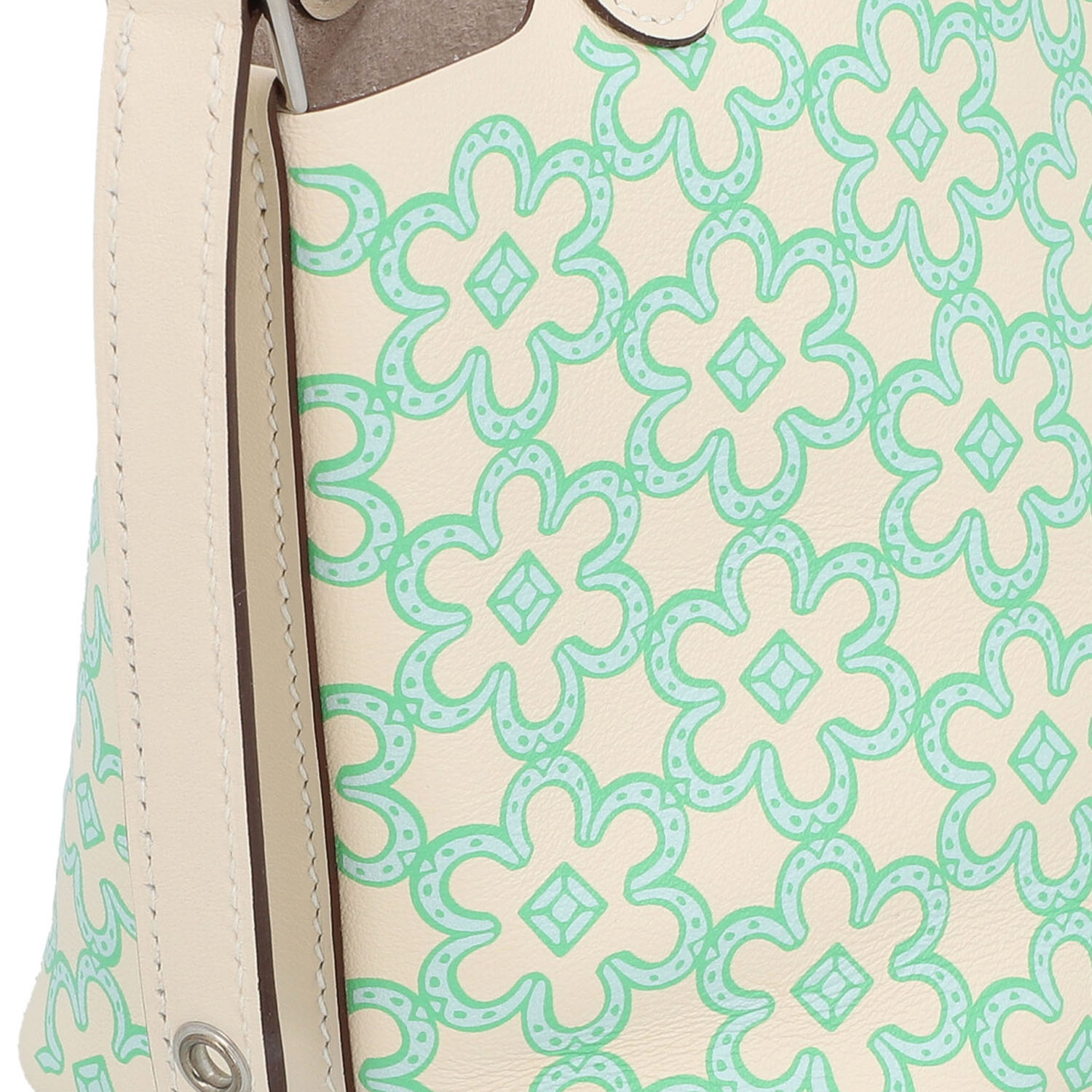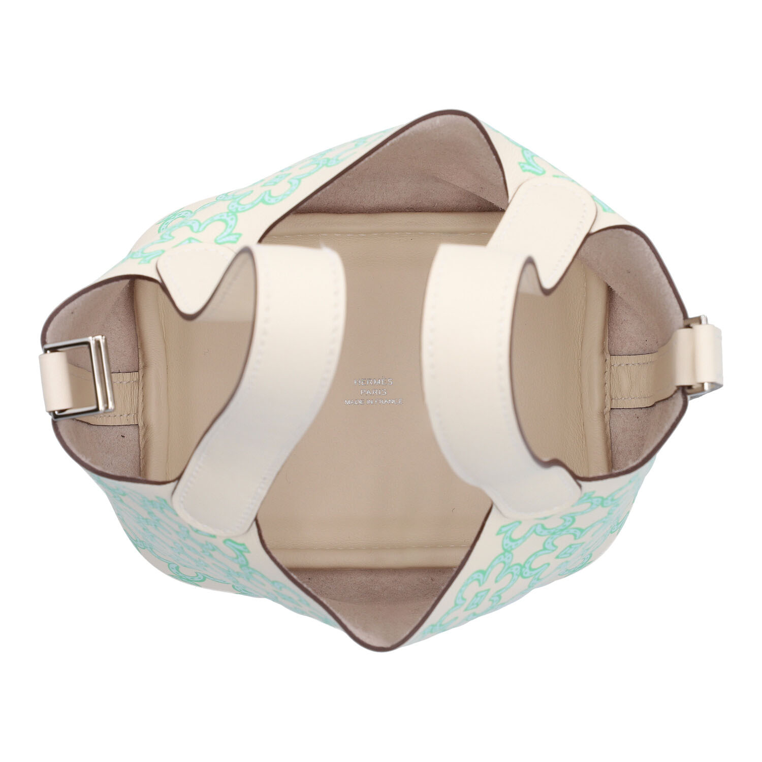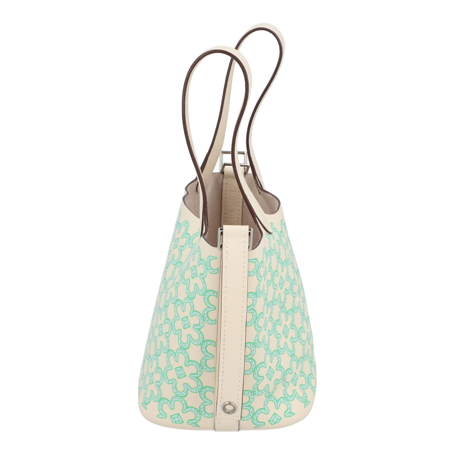 HERMÈS pouch bag ‘PICOTIN MICRO’, coll.: 2022. Happy Daisy on Swift leather in Nata, hardware with palladium plating, double handle and strap fastening. Box and dust bag enclosed. Very good condition.12 x 9 x 13 cm.