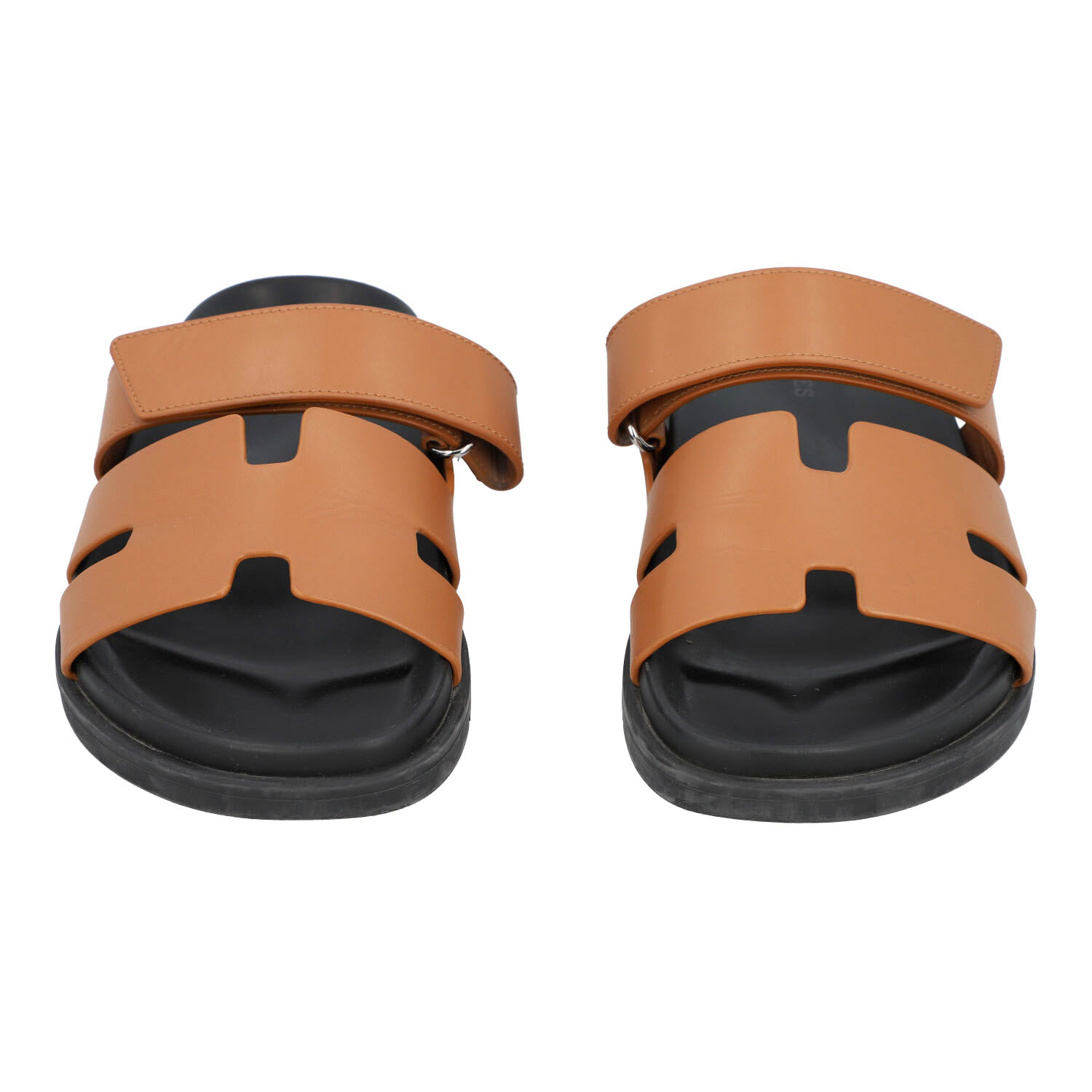 HERMÈS sandals “CHYPRE”, size 39, classic model with light brown leather straps. Box and dust bag enclosed. Slight signs of wear.