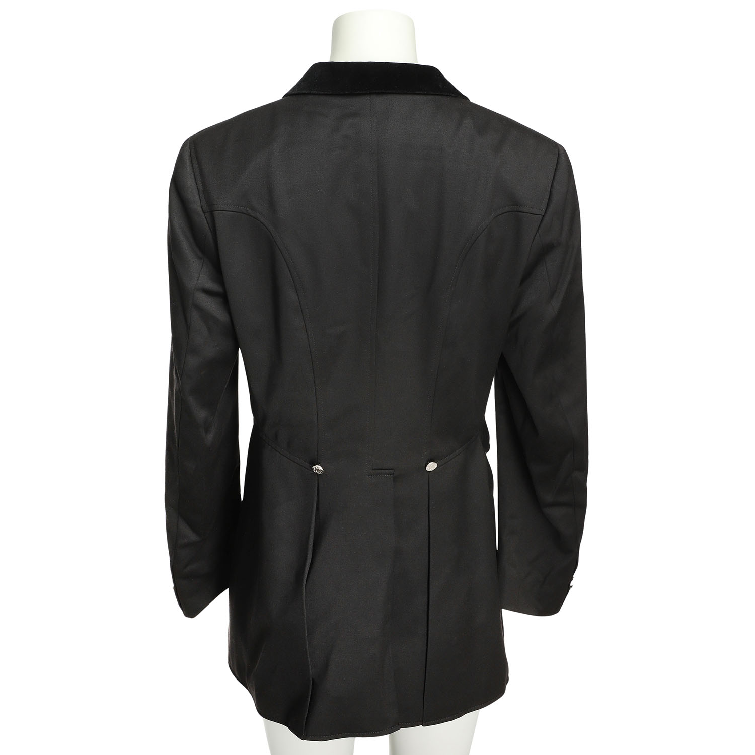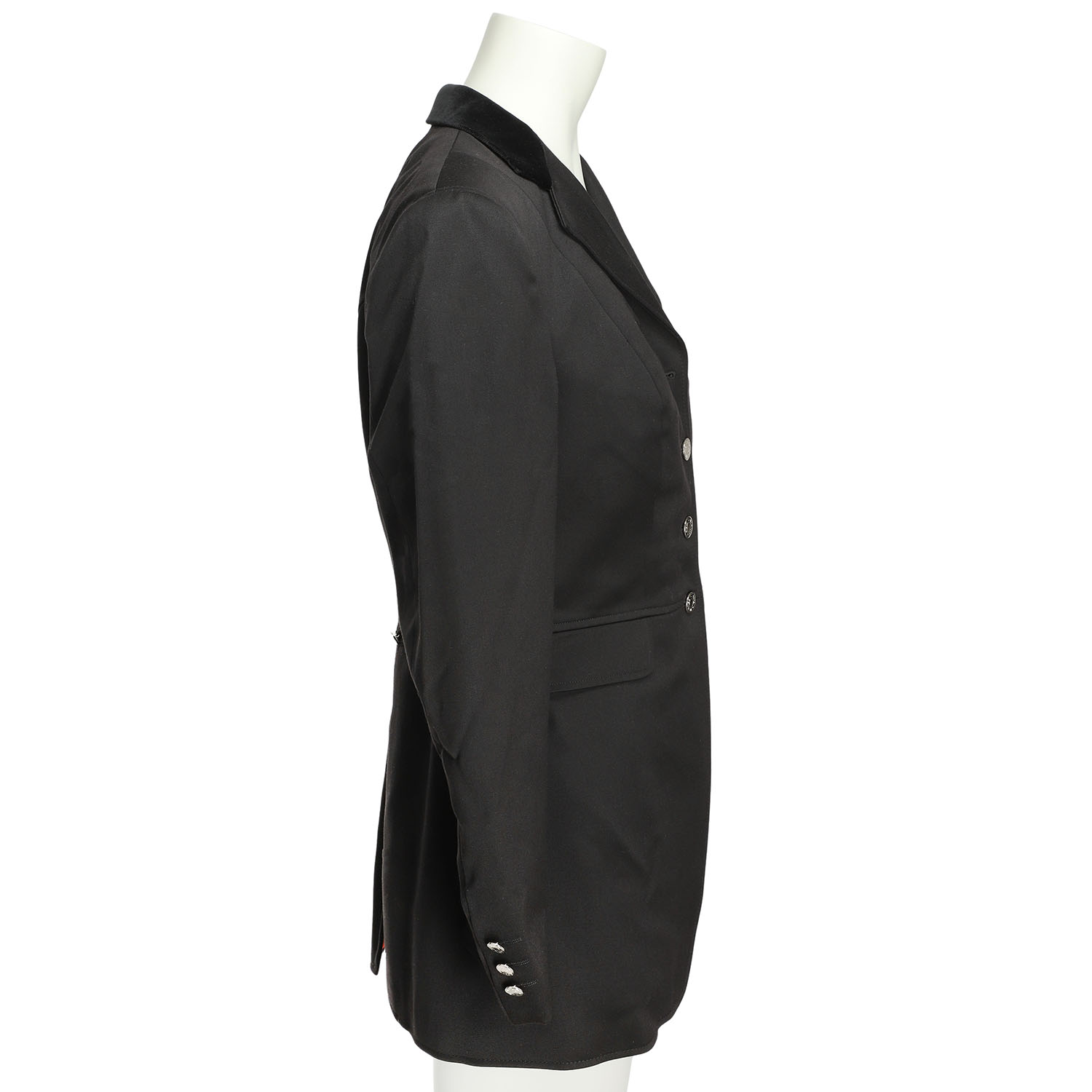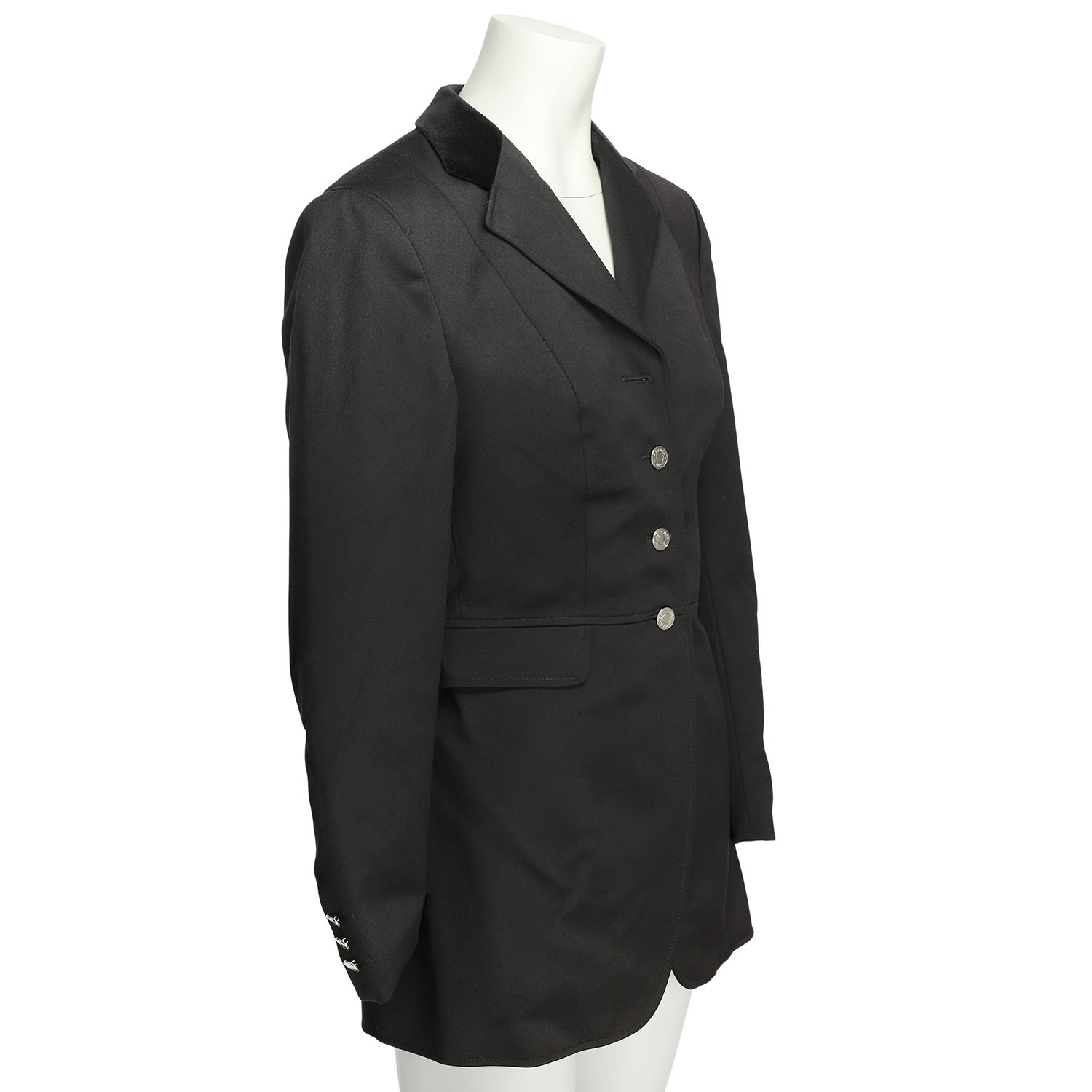 HERMÈS competition jacket, size 38, retail price: approx. 1.900,-€. Wool blend. Black model with silver-coloured hardware, button fastening and velvet upper collar. Good condition.