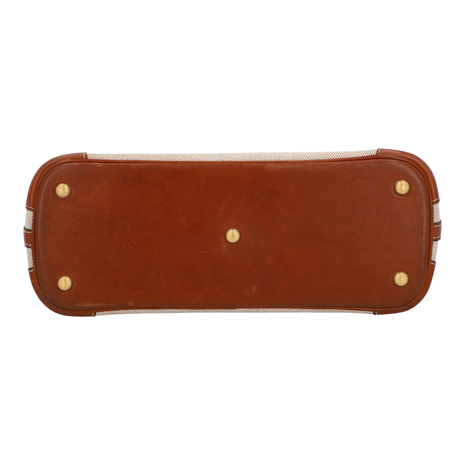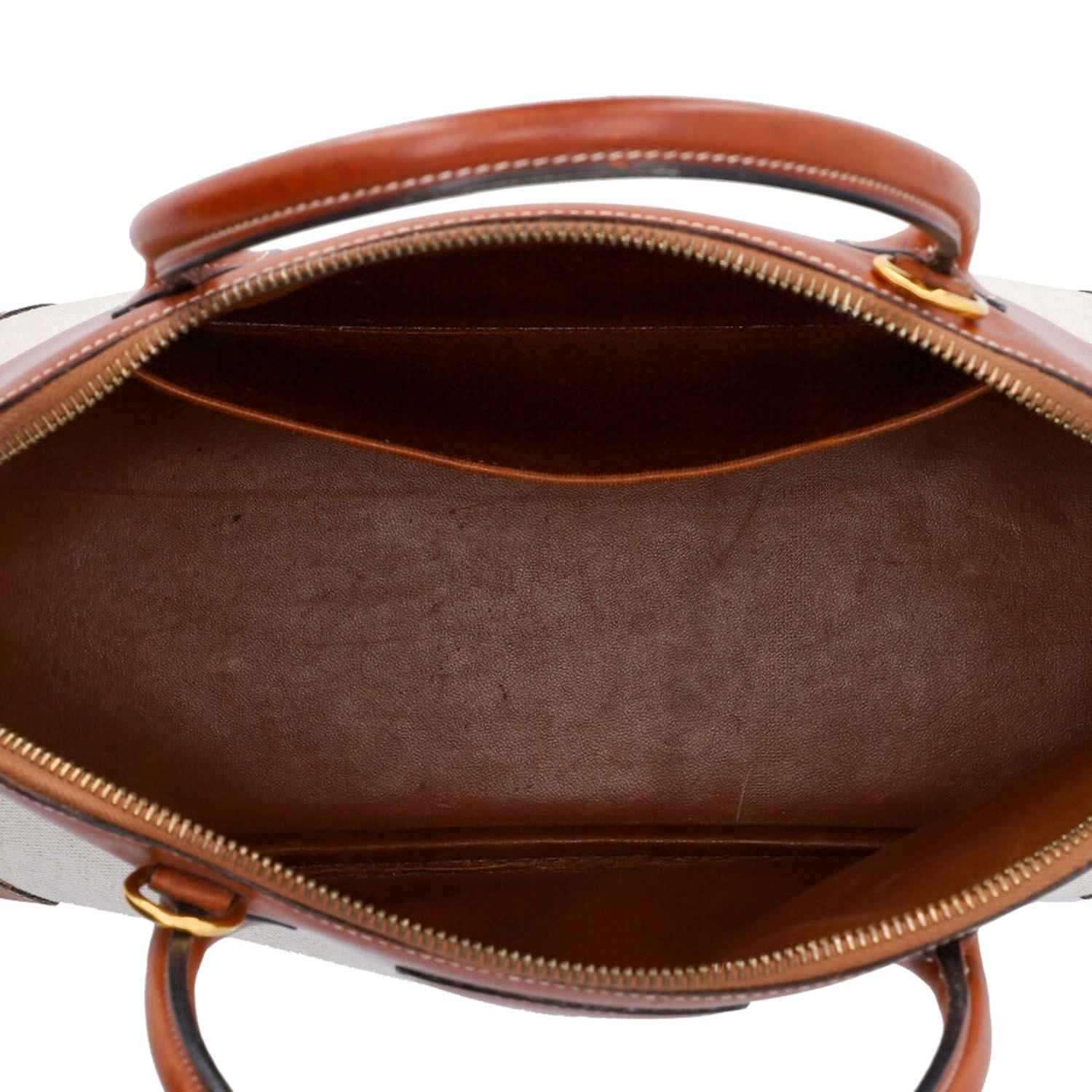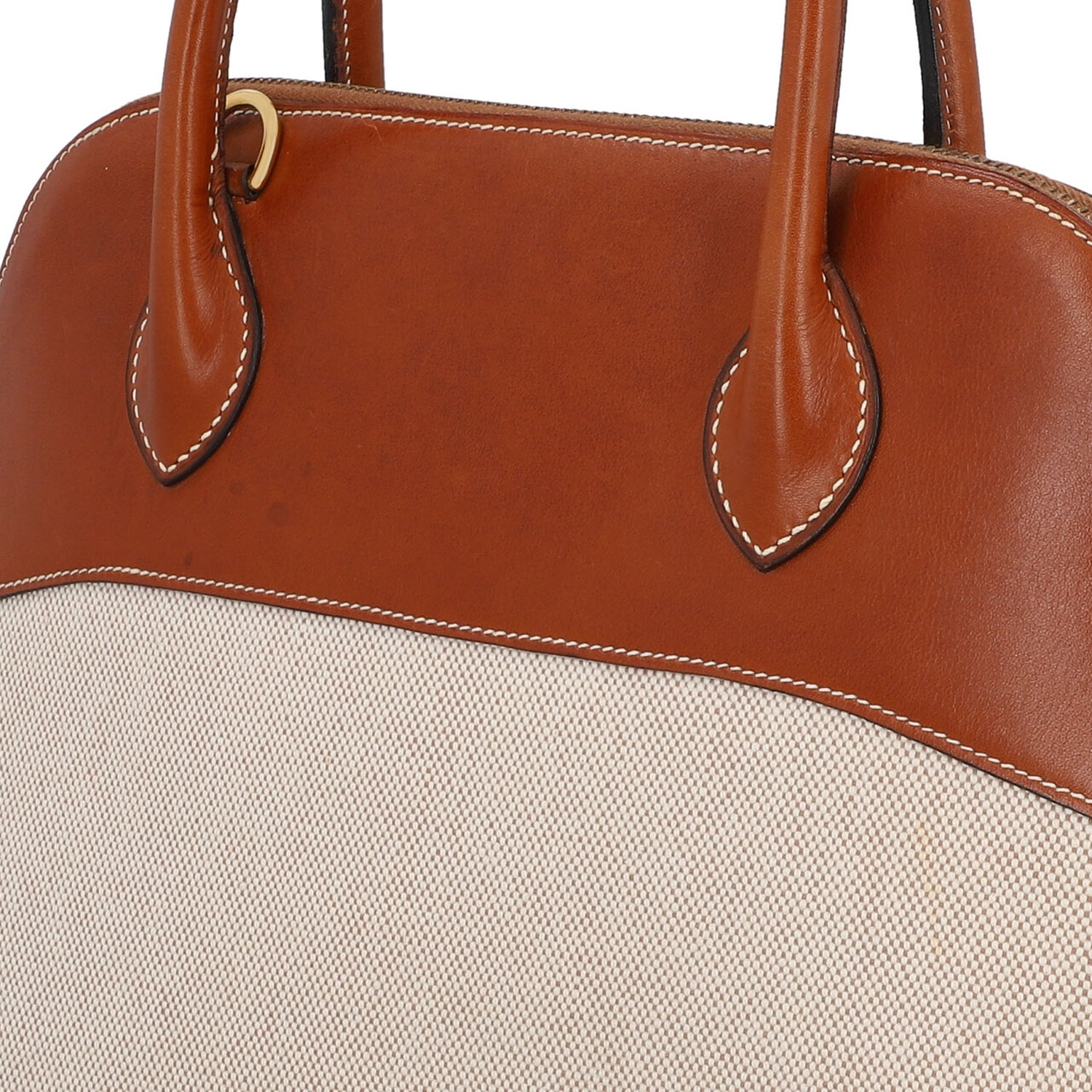 HERMÈS VINTAGE handle bag “BOLIDE 31”, coll.: 1995. Toile and Barina leather with gold-plated hardware, double handle and zipper. Interior with one compartment. Detachable shoulder strap, key in clochette, lock and dust bag enclosed. Signs of use and age present.