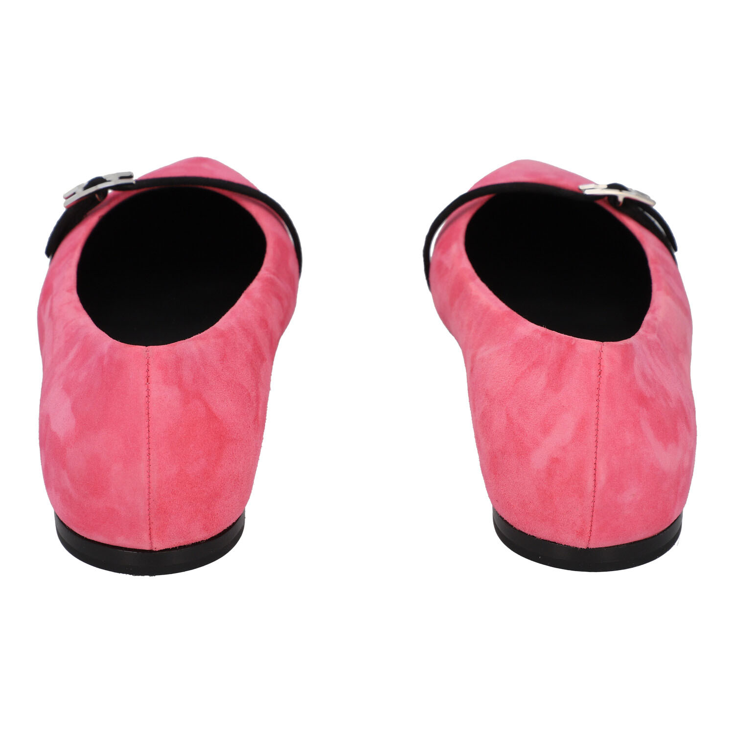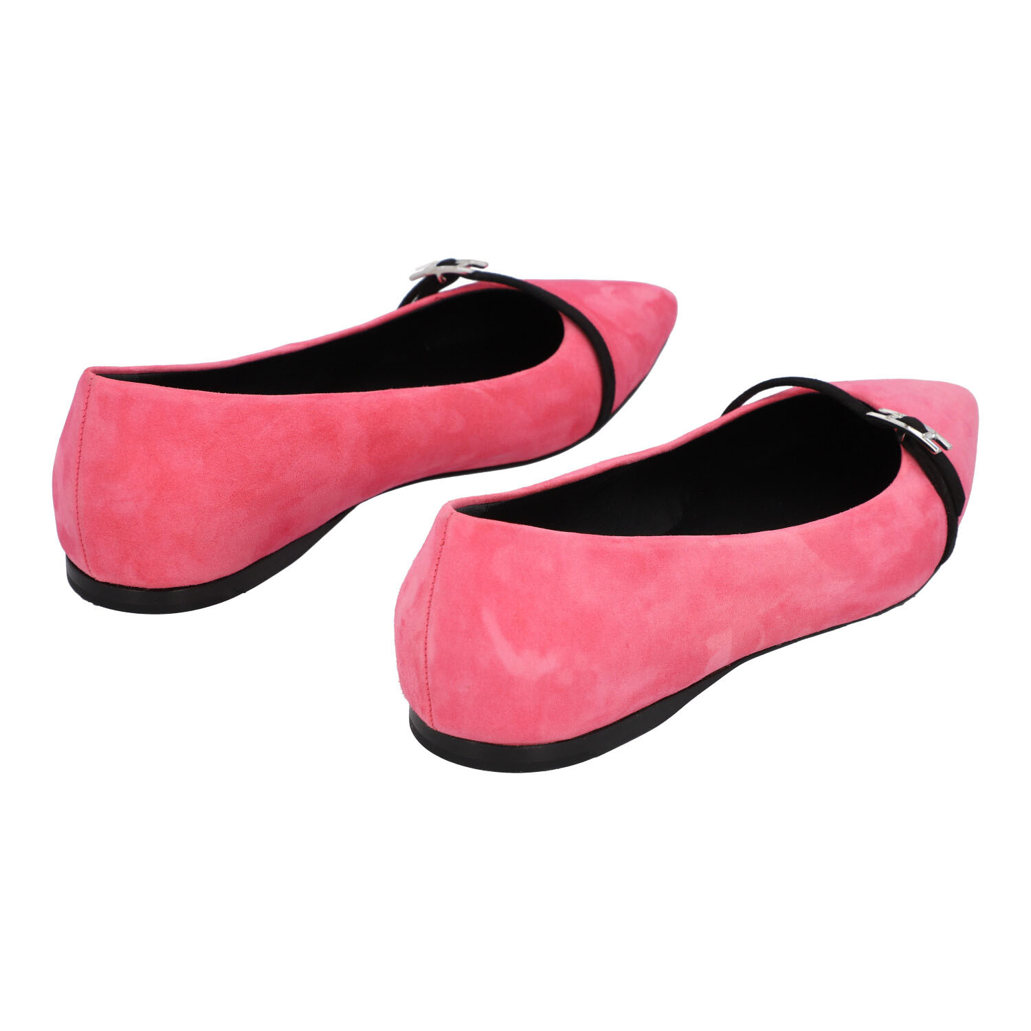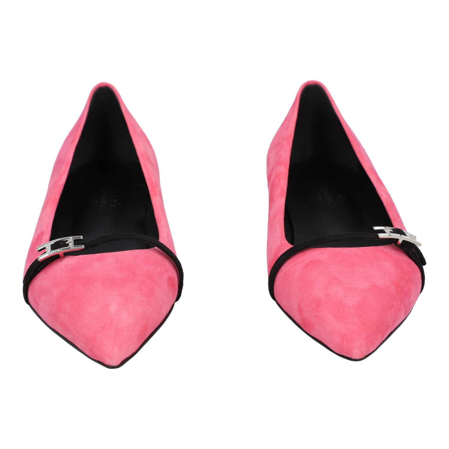 HERMÈS ballet flats 'LAURA', size 39,5. Suede in pink with black strap and hapi clasp with rhinestone trim. Box enclosed. As good as new.
