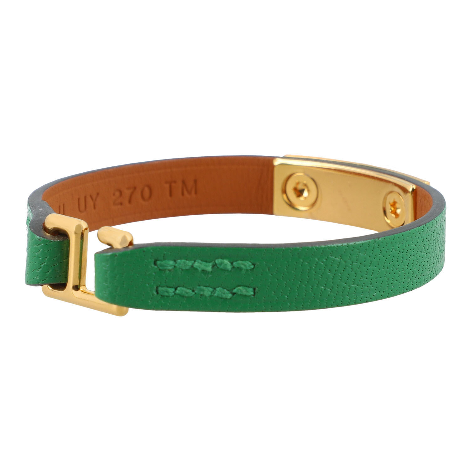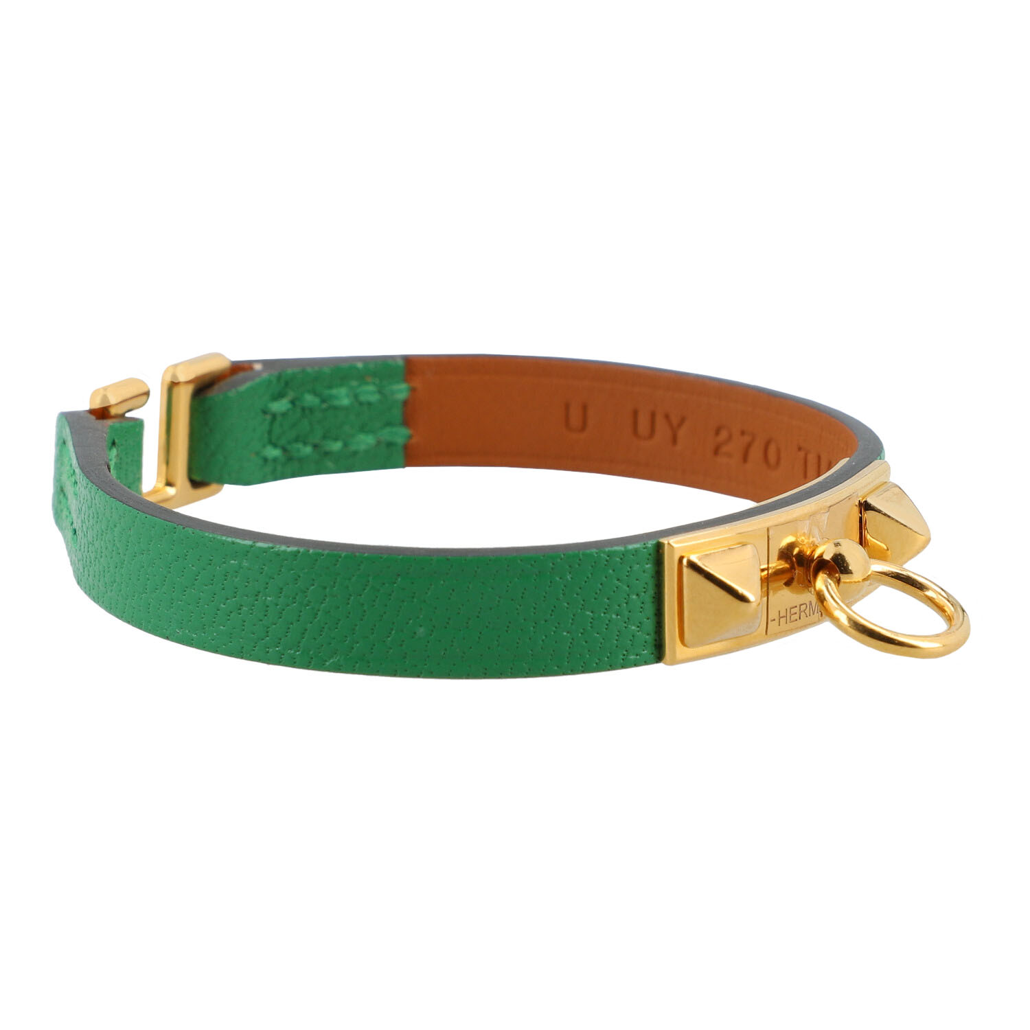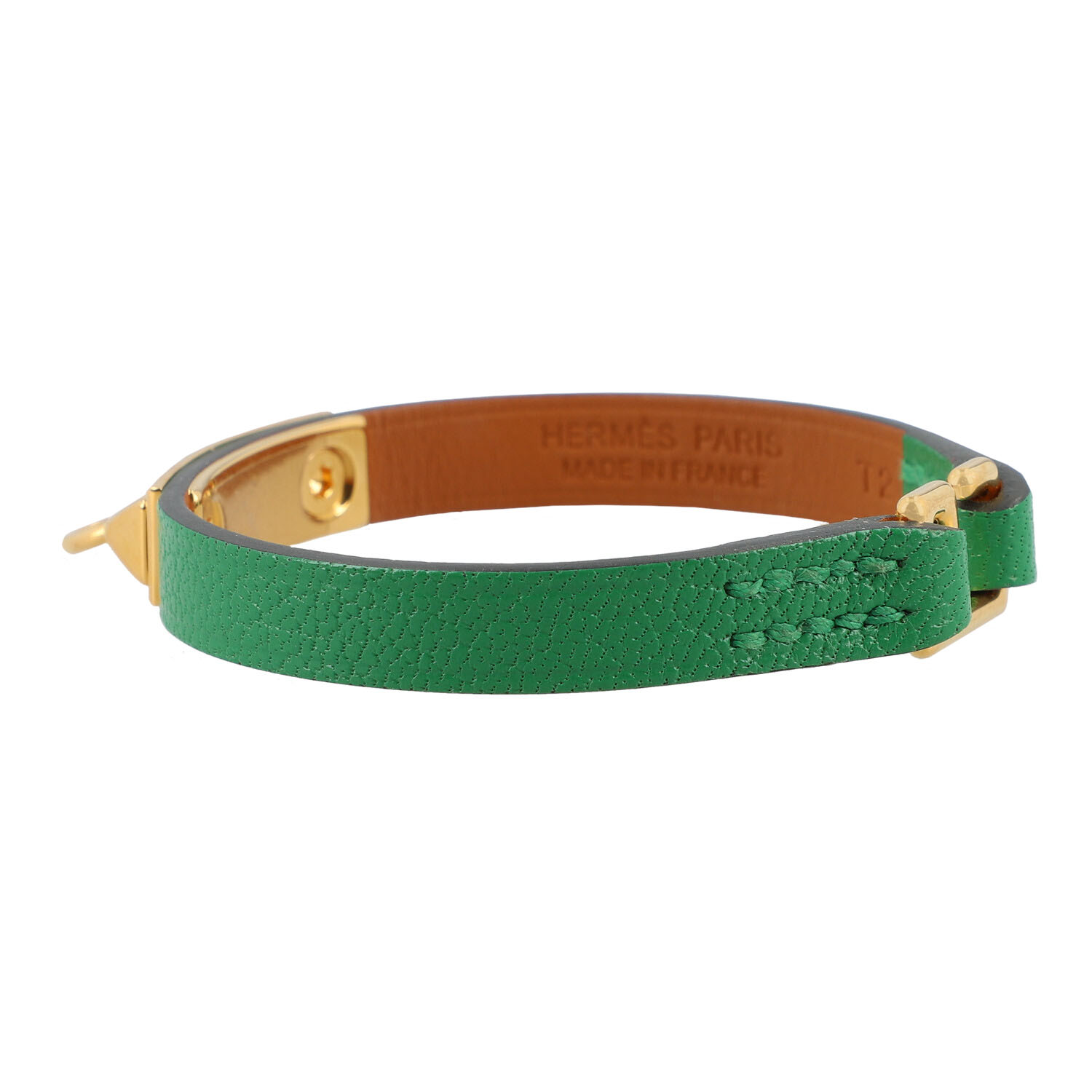 HERMÈS bracelet ‘RIVALE MINI’, size T2. Bracelet made from Swift calfskin in light green with gold-plated hardware. Length approx. 16cm. In very good condition.
