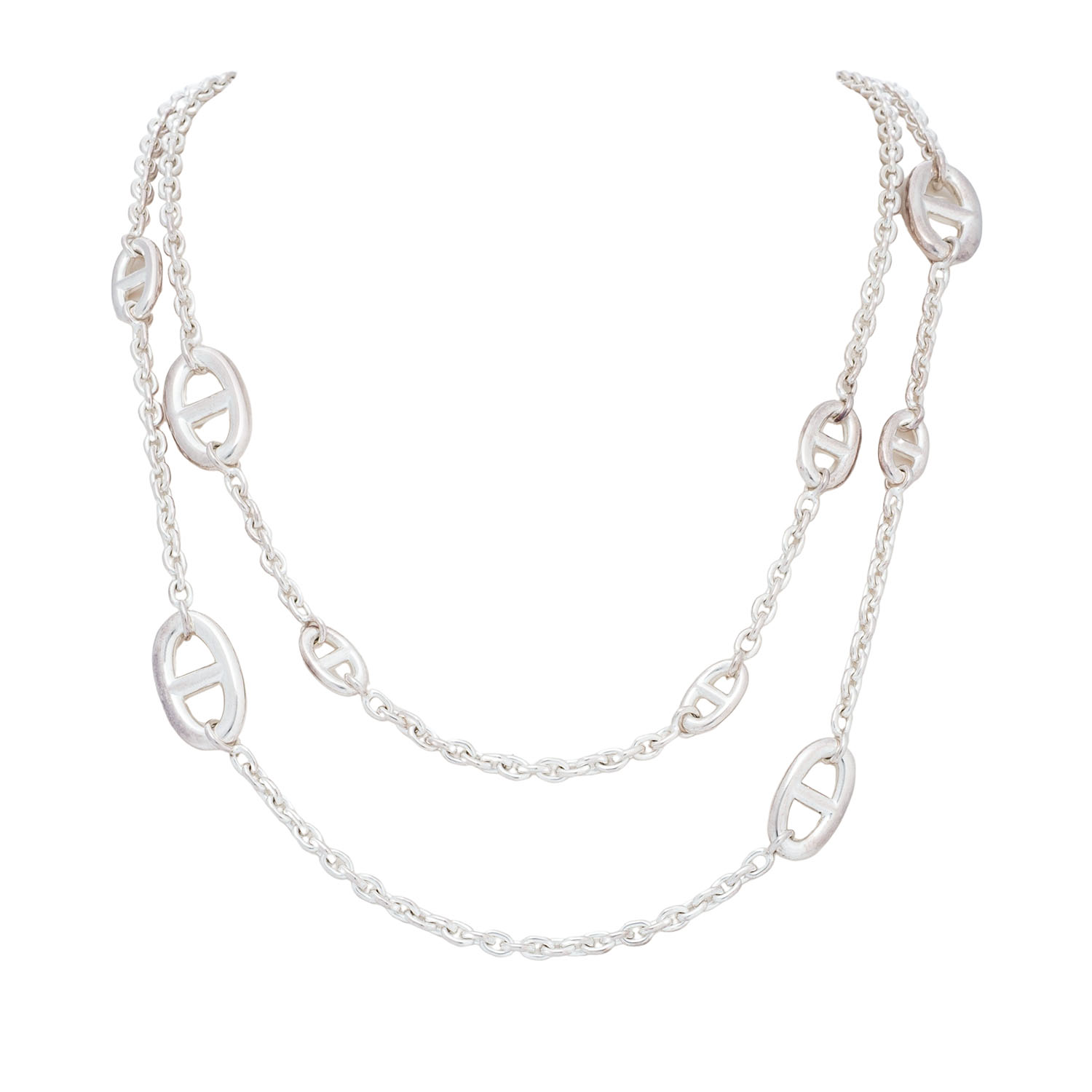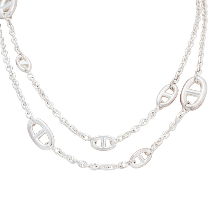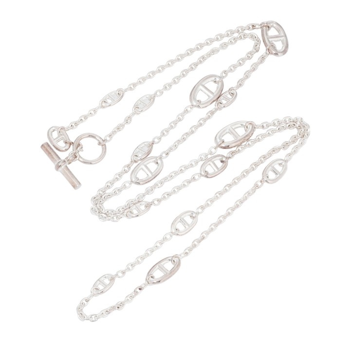 HERMÈS “FARANDOLE 120” necklace. 925 sterling silver. Delicate link chain with classic charms and toggle clasp. Like new with box.
