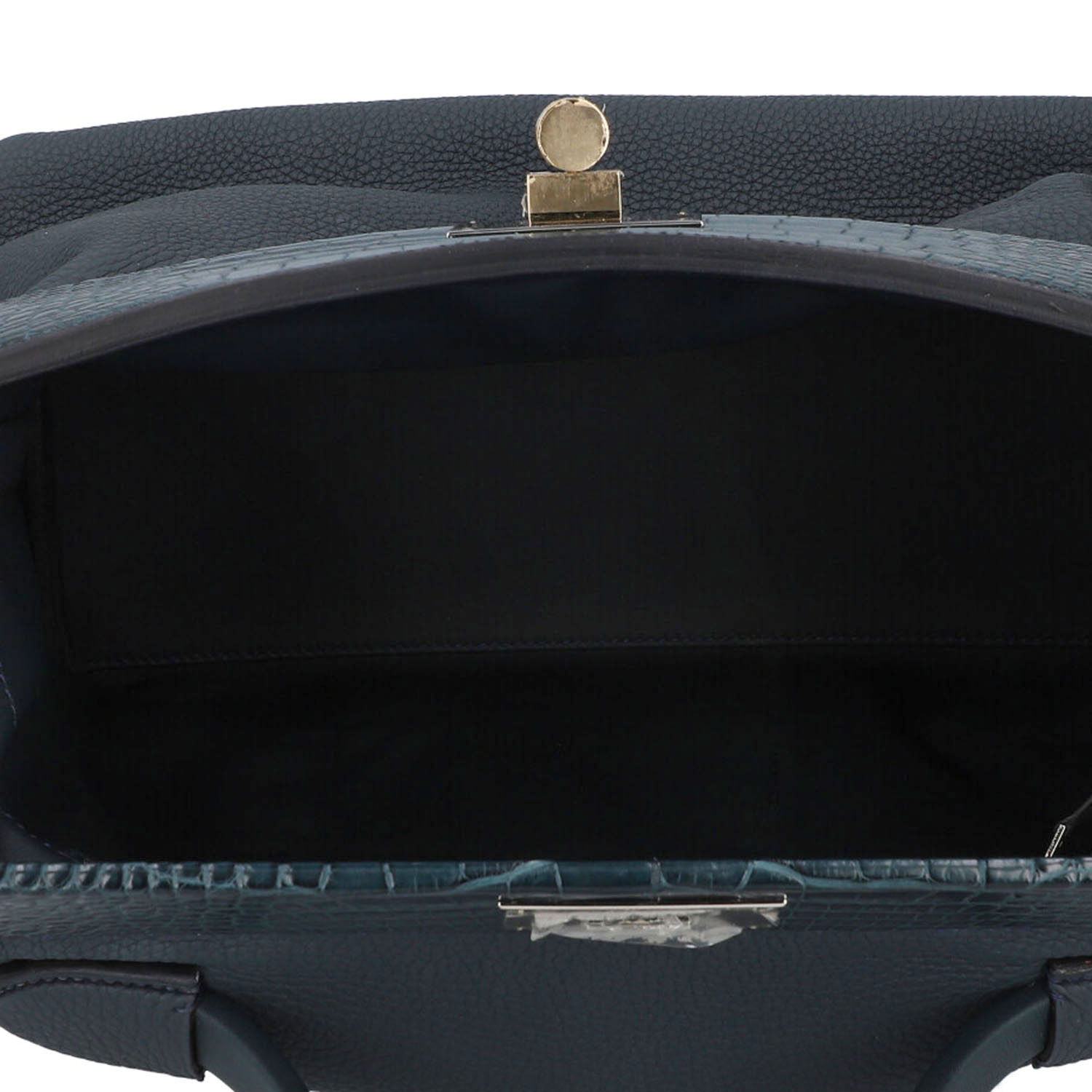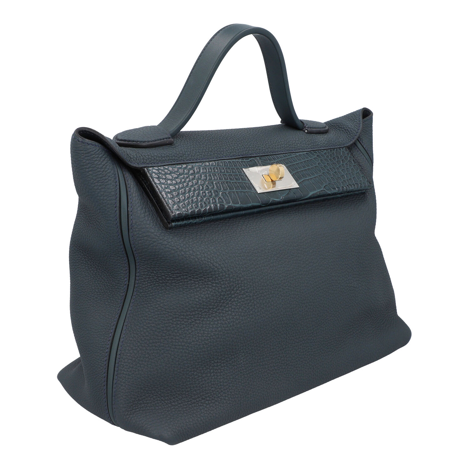 HERMÈS handbag '24/24-35 TOUCH'. Coll. 2022. Togo leather, swift leather and touch alligator leather in Vert Rousseau. Bicolour hardware. Twist fastening on the front flap, one handle and one outer compartment on the back. Interior with a zip compartment. Box, dust bag and invoice enclosed. Very good condition, hardware still laminated.
