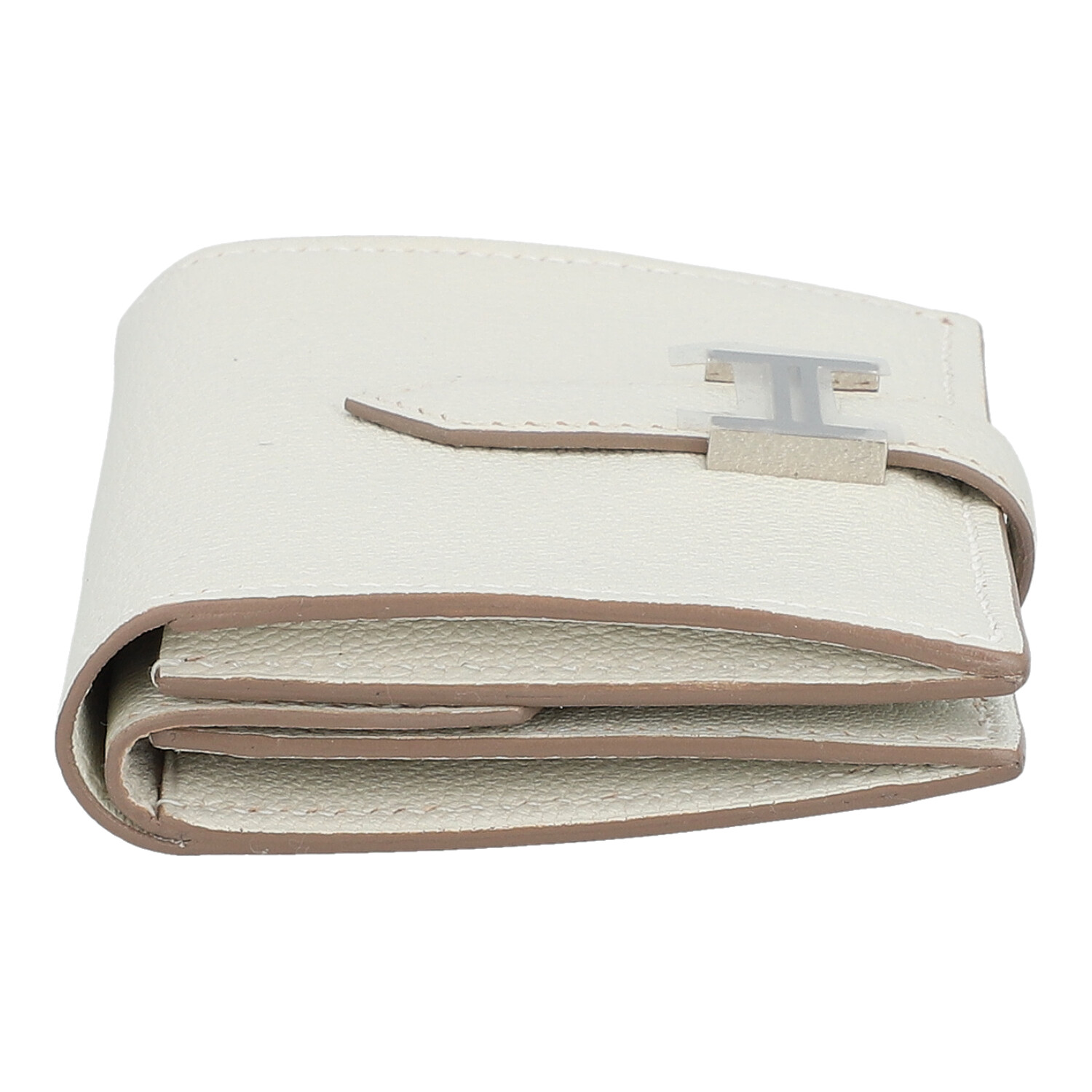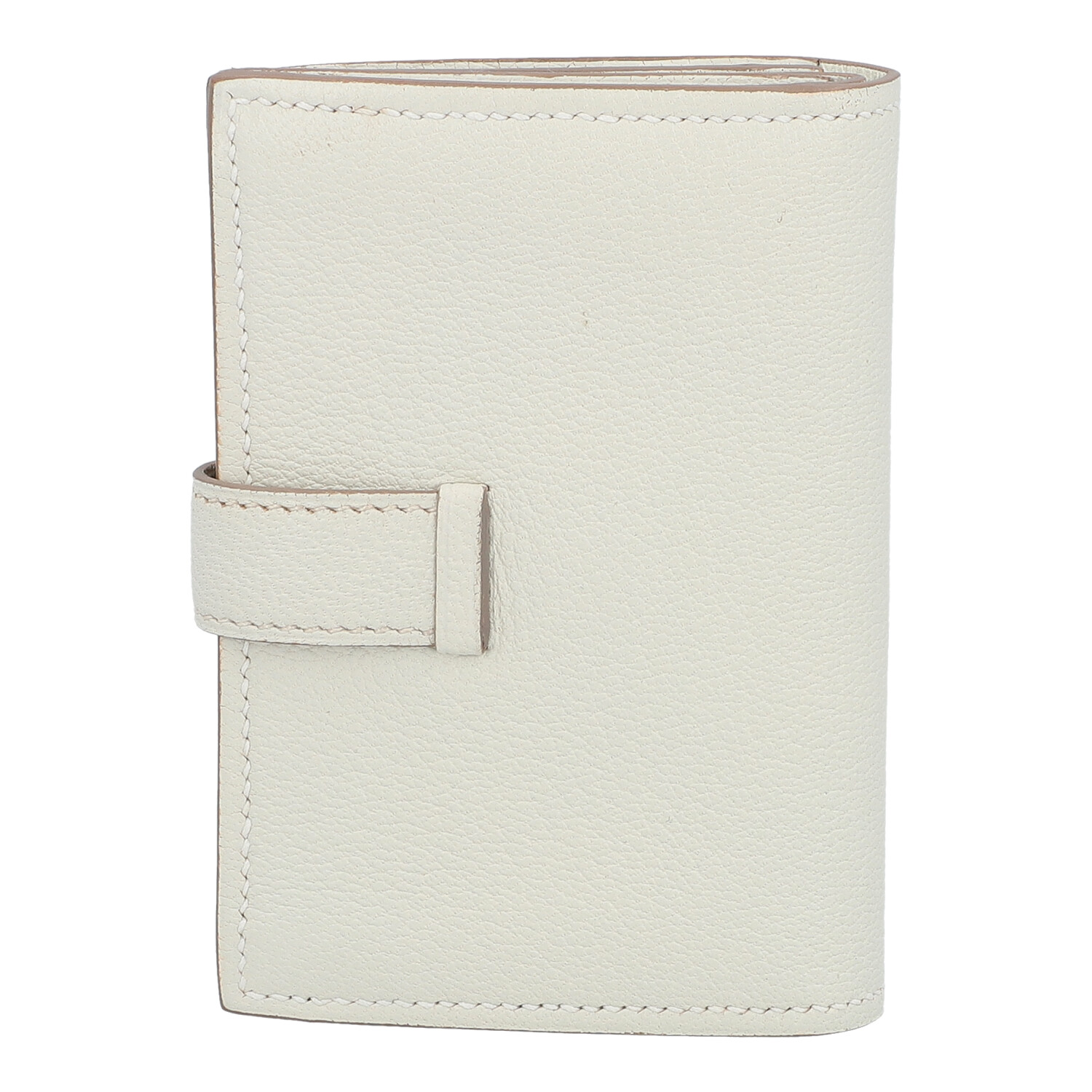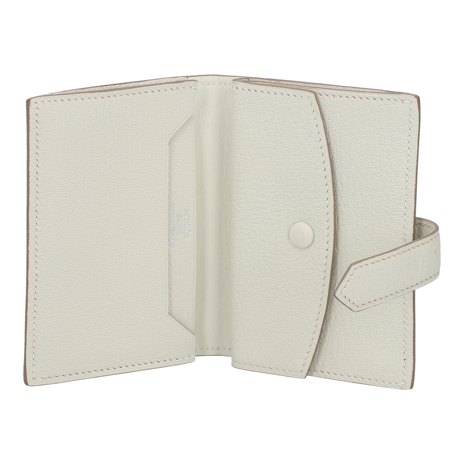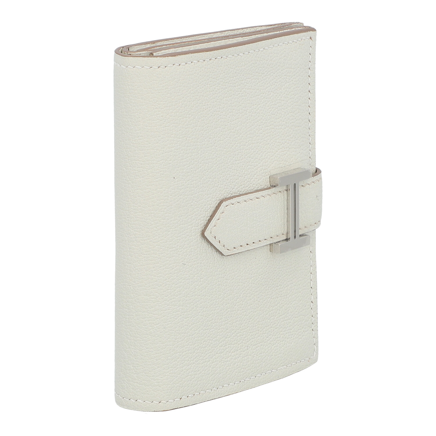 HERMÈS mini wallet ‘BEARN MINI’. Coll. 2023. NP.: 1.670,-€. Chevre Mysore leather in Mushroom with silver-coloured hardware. Small coin pocket and three card slots. Box and copy of invoice enclosed. Very good condition.