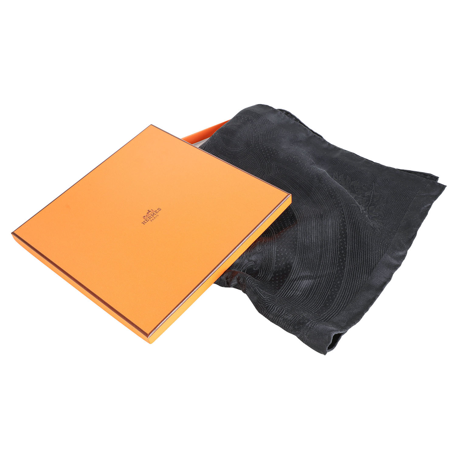 HERMÈS scarf 70 'GRANDE TRALALA', by Virginie Jamin. 100% silk. Black model in jacquard design. 65 x 65 cm. Hand rolled hems. Box enclosed. Signs of wear present.