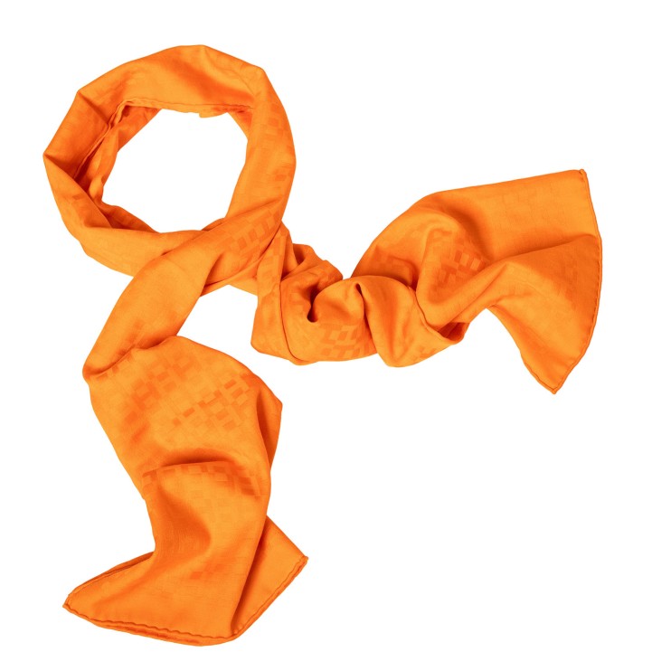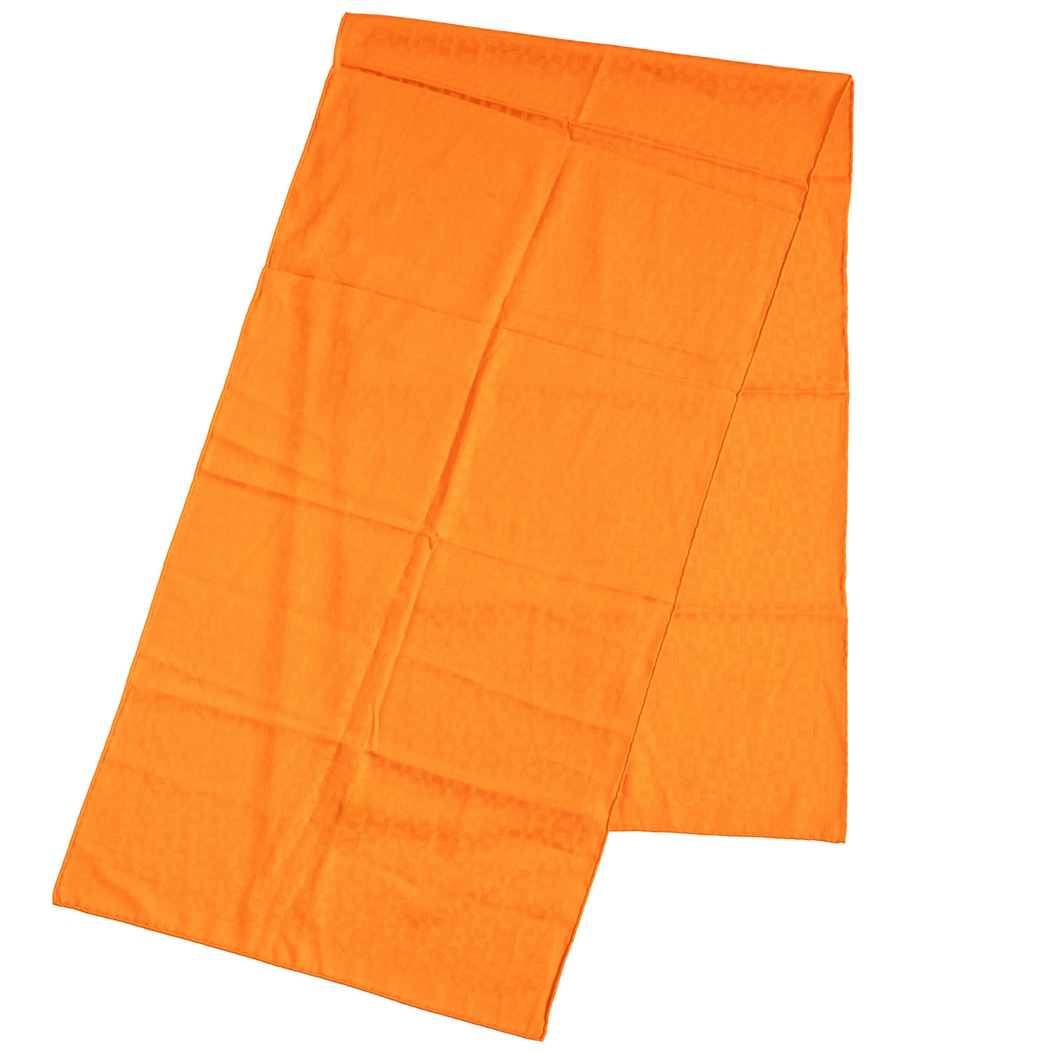 HERMÈS scarf, retail price: 450,-€. Cashmere, wool and silk blend. Orange model with H design. Hand-rolled hems. 45 × 180 cm. As new.