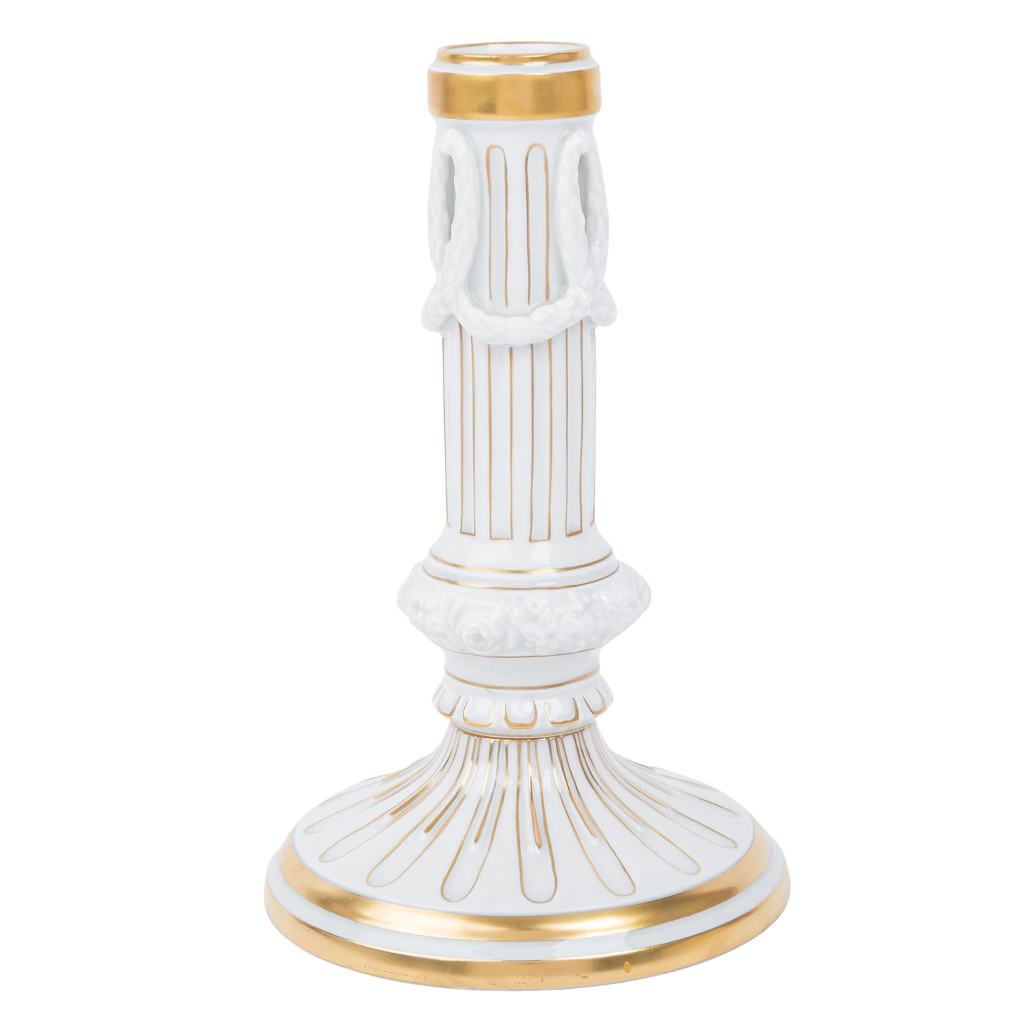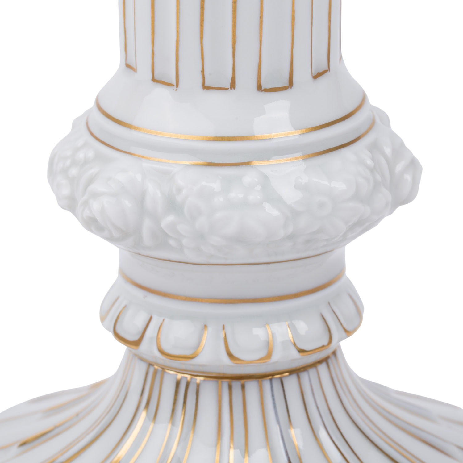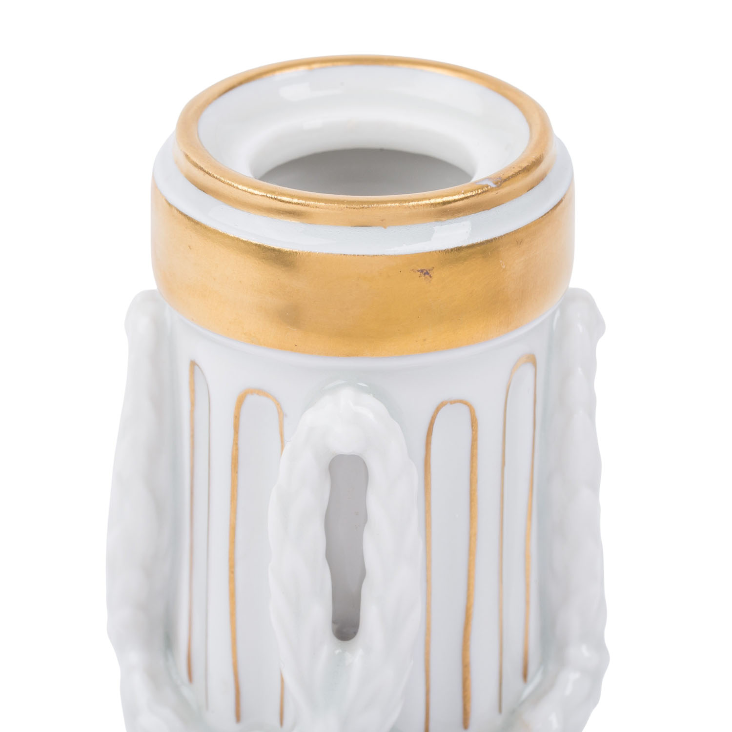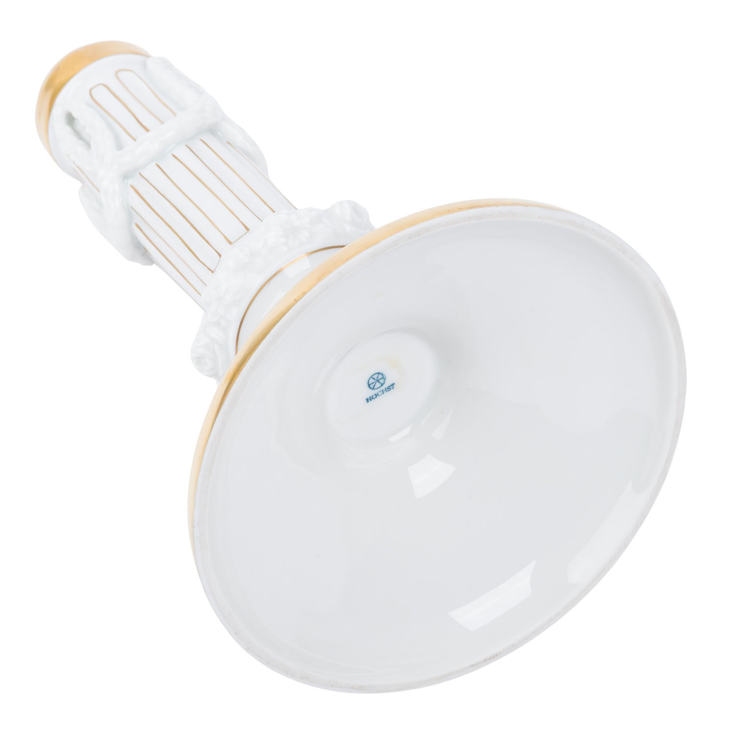 HÖCHST single-flame candlestick, 20th century. White porcelain with gold decoration, Empire style candlestick or vase, height approx. 20.5 cm. Slightly rubbed, signs of age and use.