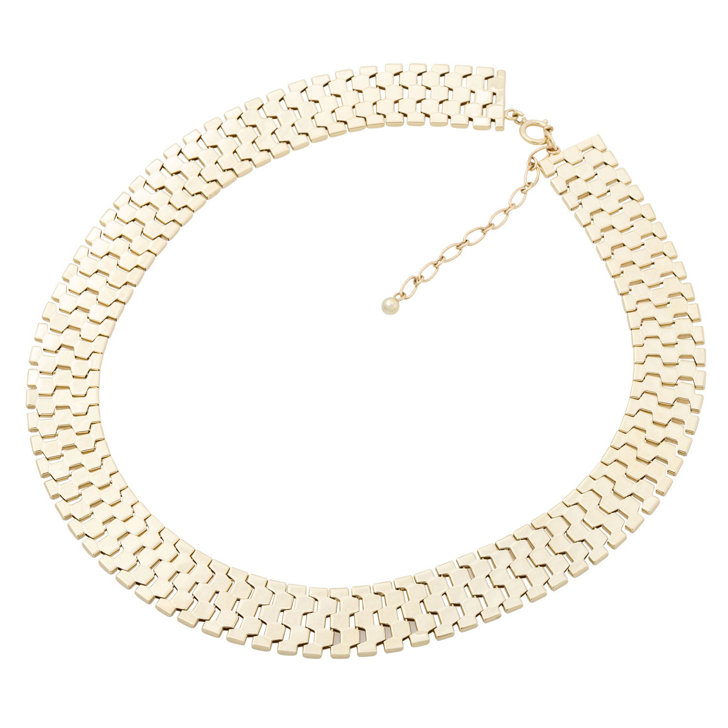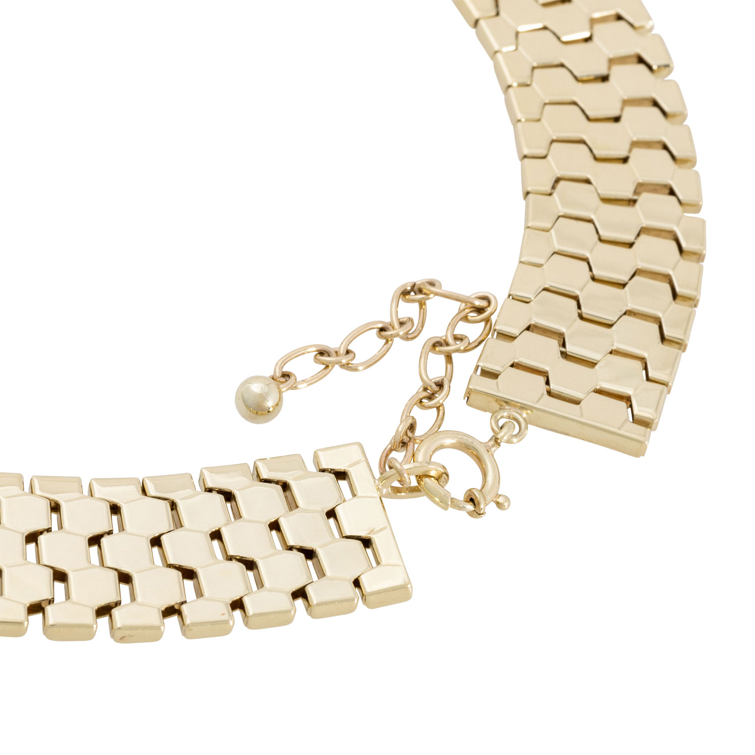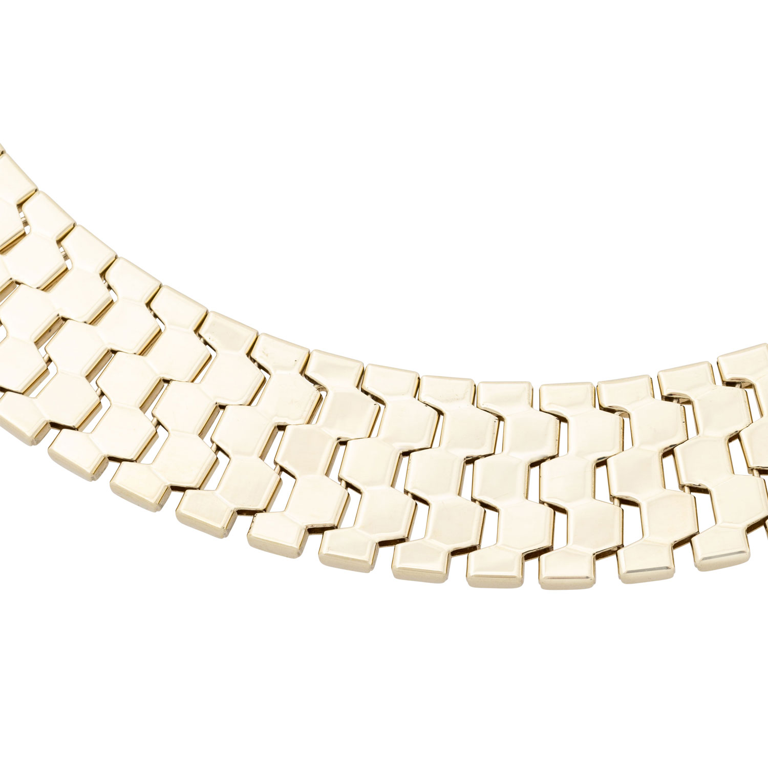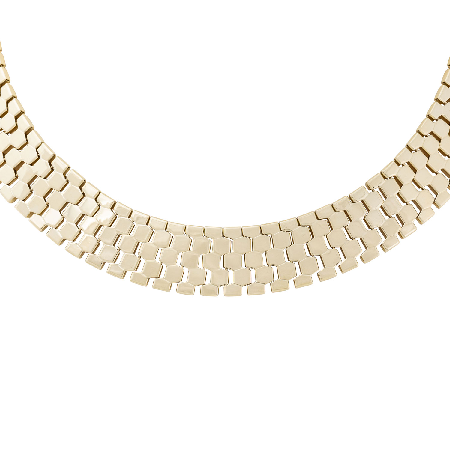 Necklacce, honeycomb design, 14K yellow gold, 76,2 g. L: 42 cm + 6 cm extension chain, spring ring, 20th century, minimal signs of wear.