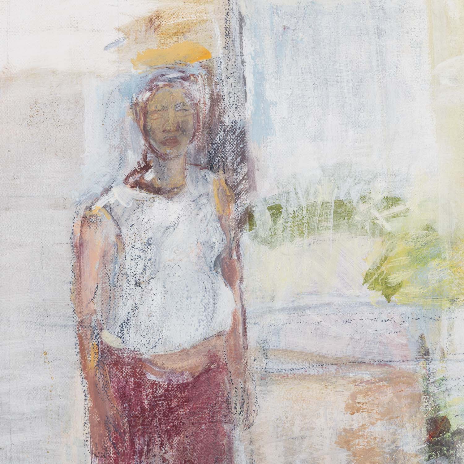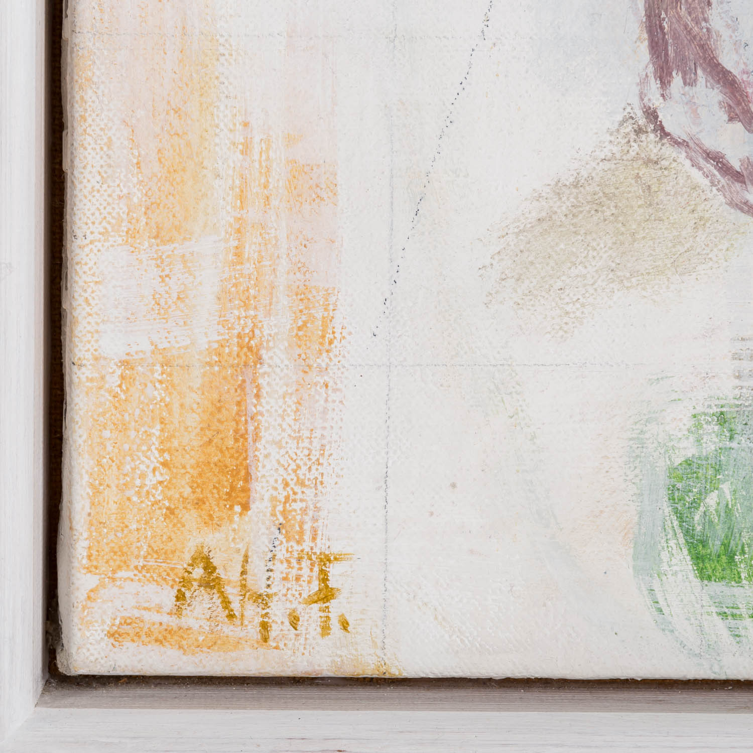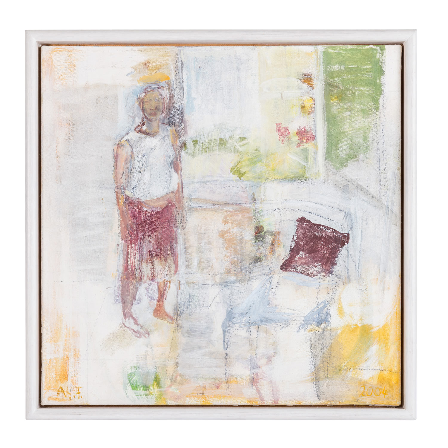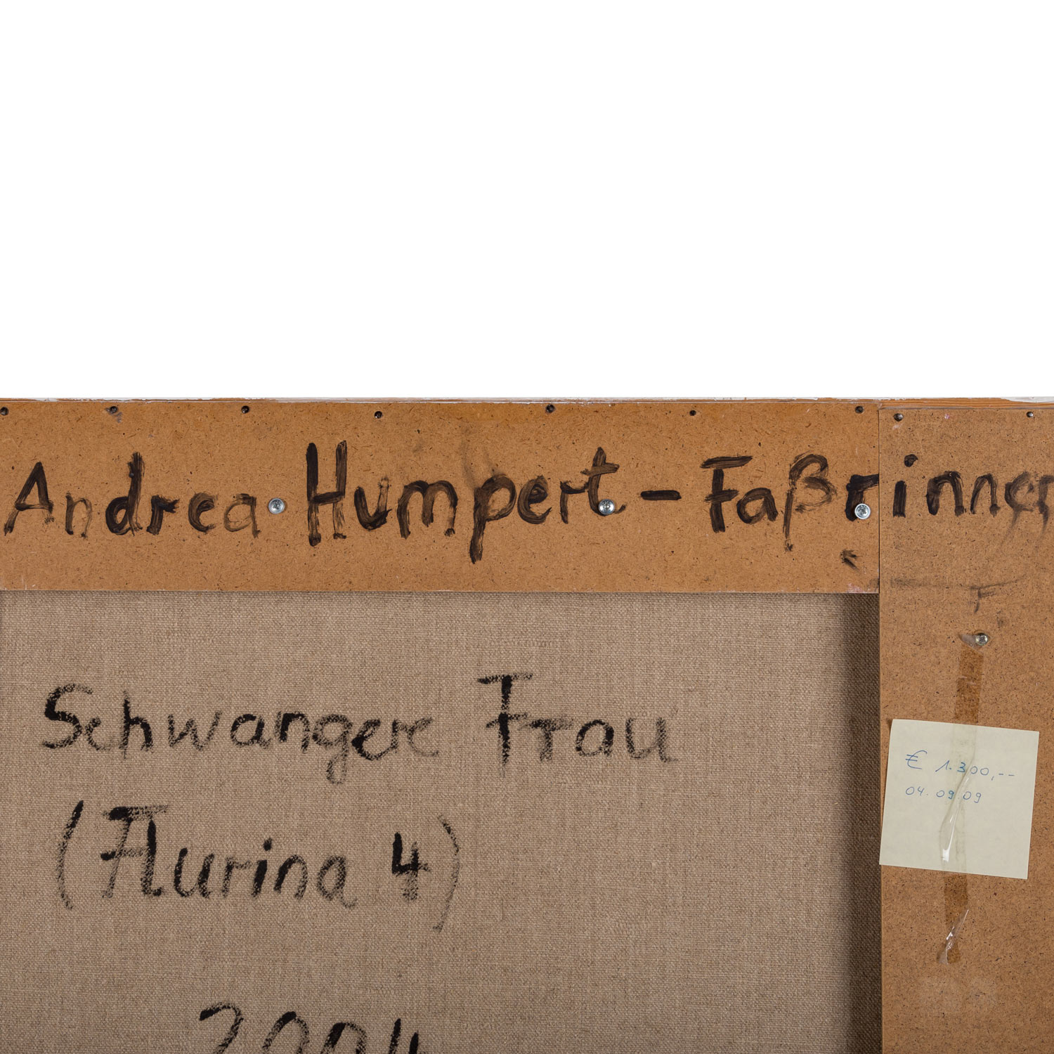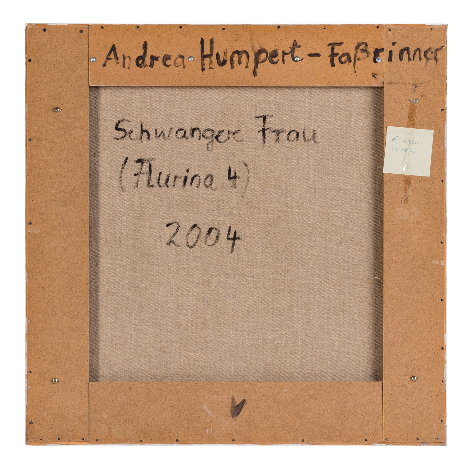 HUMPERT-FAßLRINNER, ANDREA (1956), ‘Schangere Frau (Flurina 4)’, 2004, monogrammed ‘A.H.F.’ lower left and dated lower right, egg tempera/canvas, HxW: approx. 64x64 cm (70x70 cm with frame). Minimally. Traces of age. With original frame. VERSO inscribed ‘Andrea Humpert-Faßrinner’, titled and dated. PROVENANCE: Galerie WERKRAUM, Ulm (copy of the original enclosed).