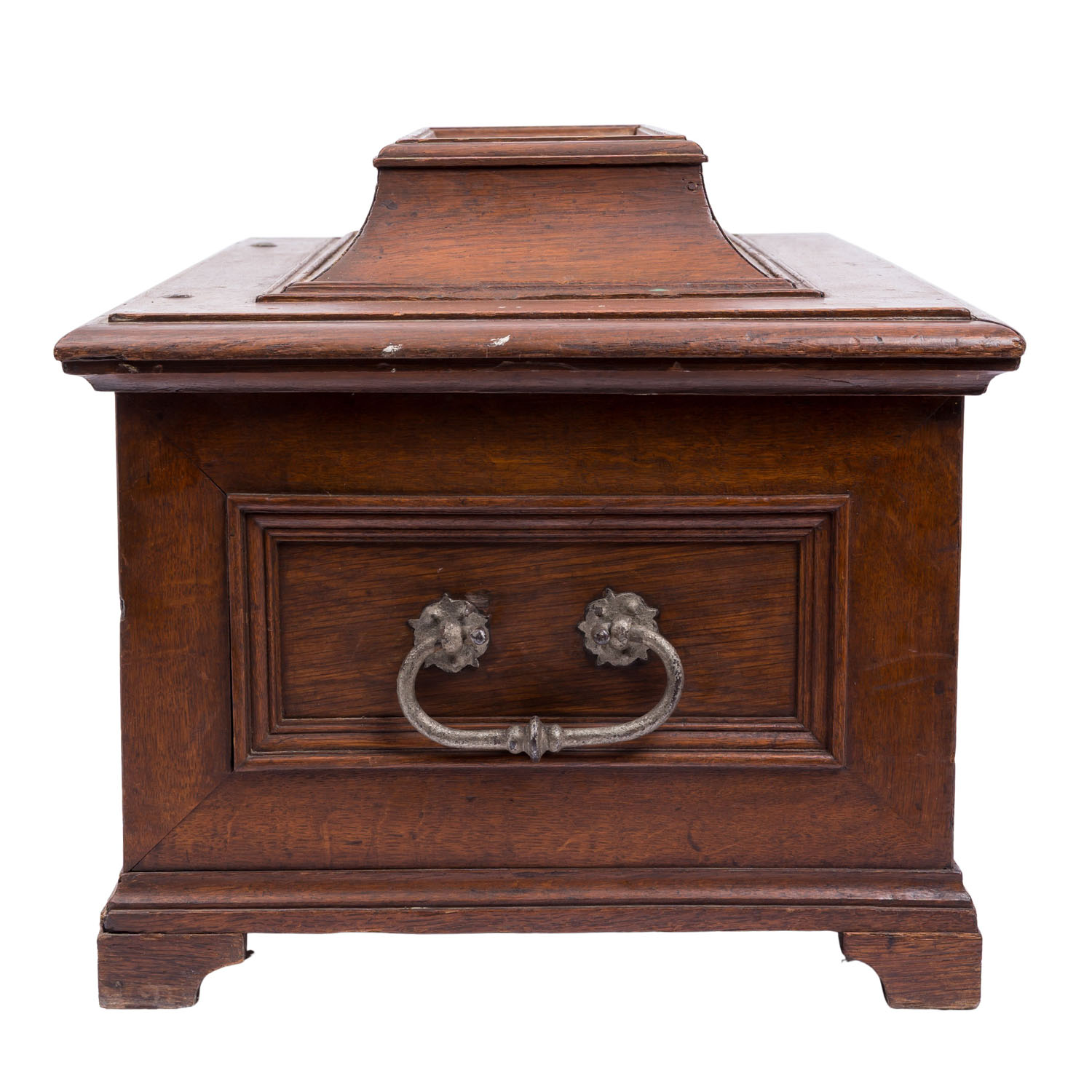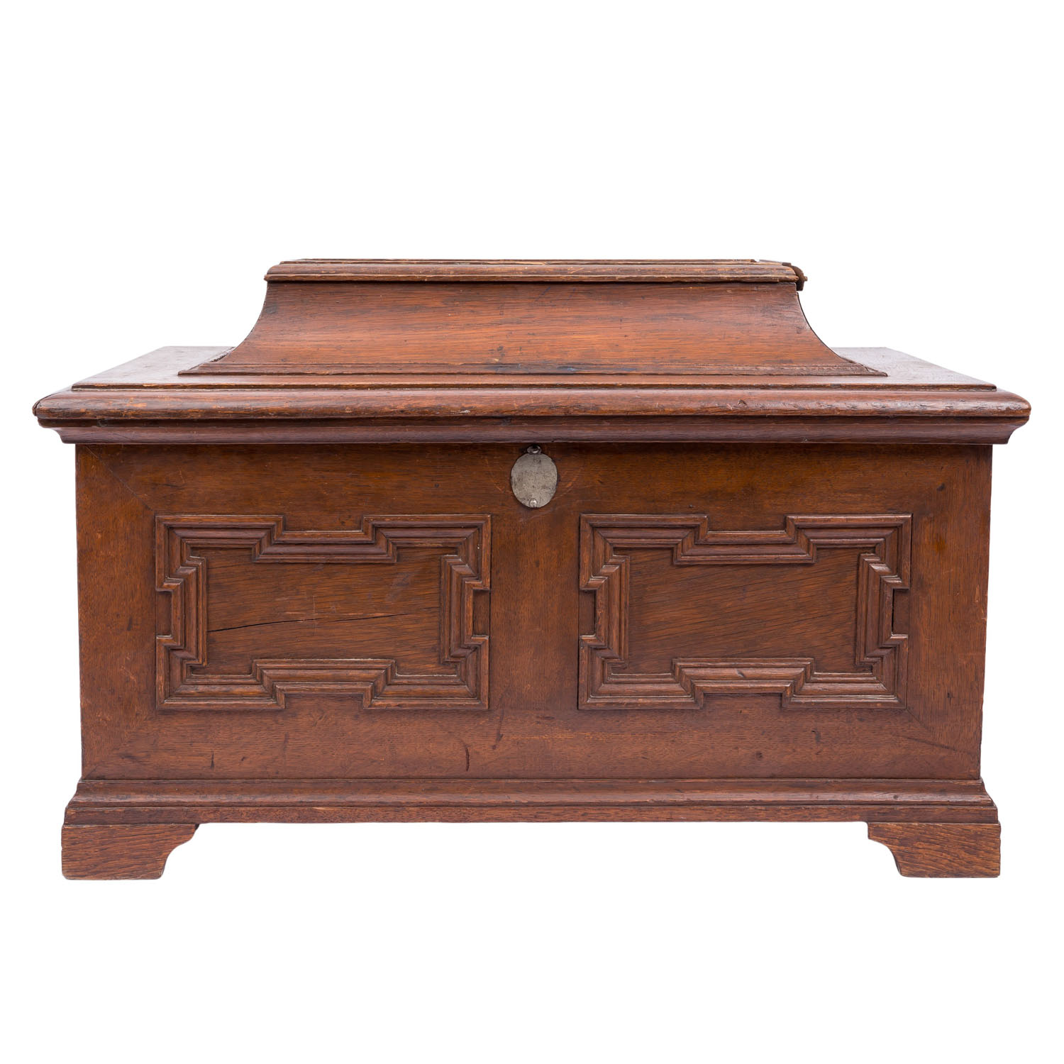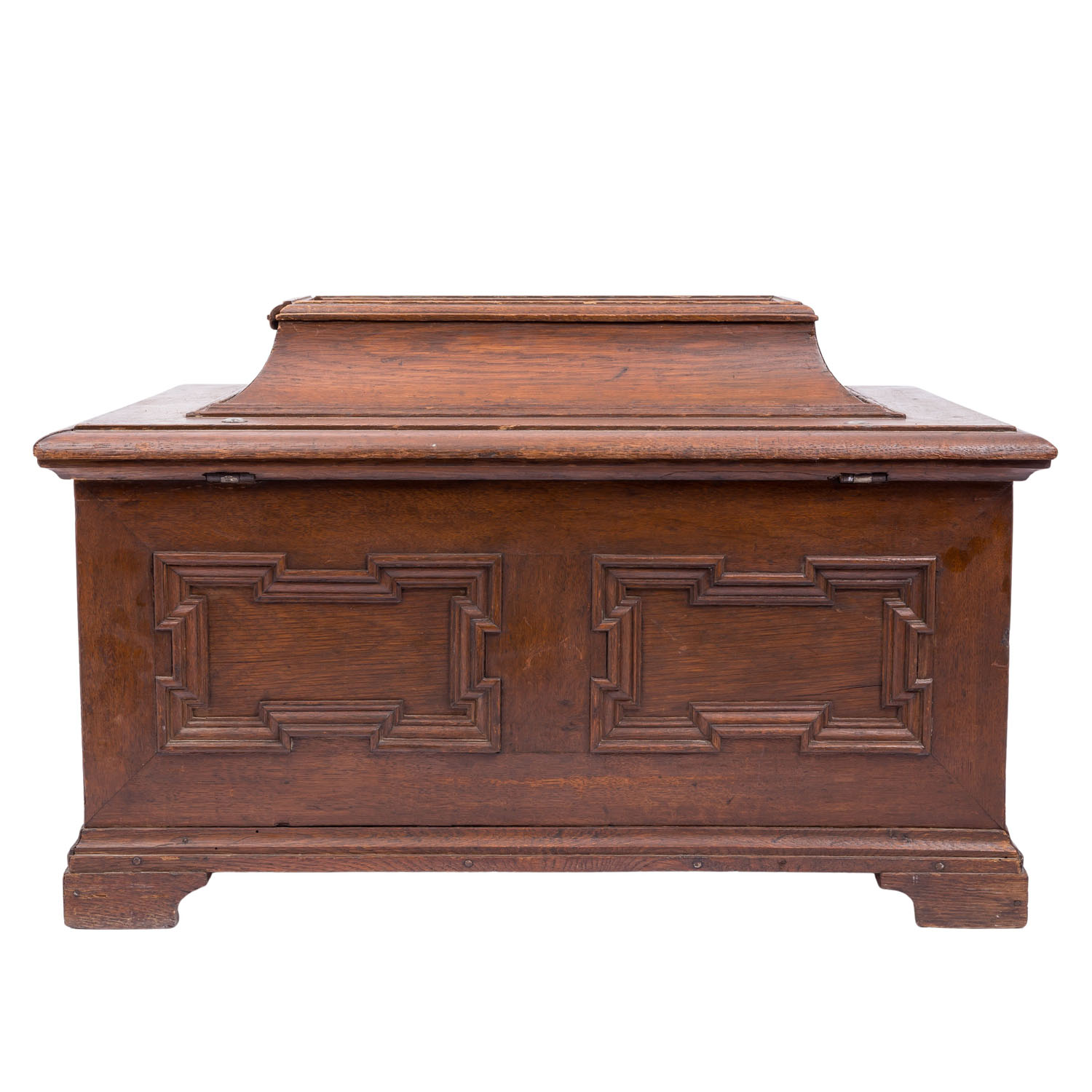 Late 18th century, oak body, rectangular base, HxWxD: 40/60/40 cm. Signs of age, lock replaced.