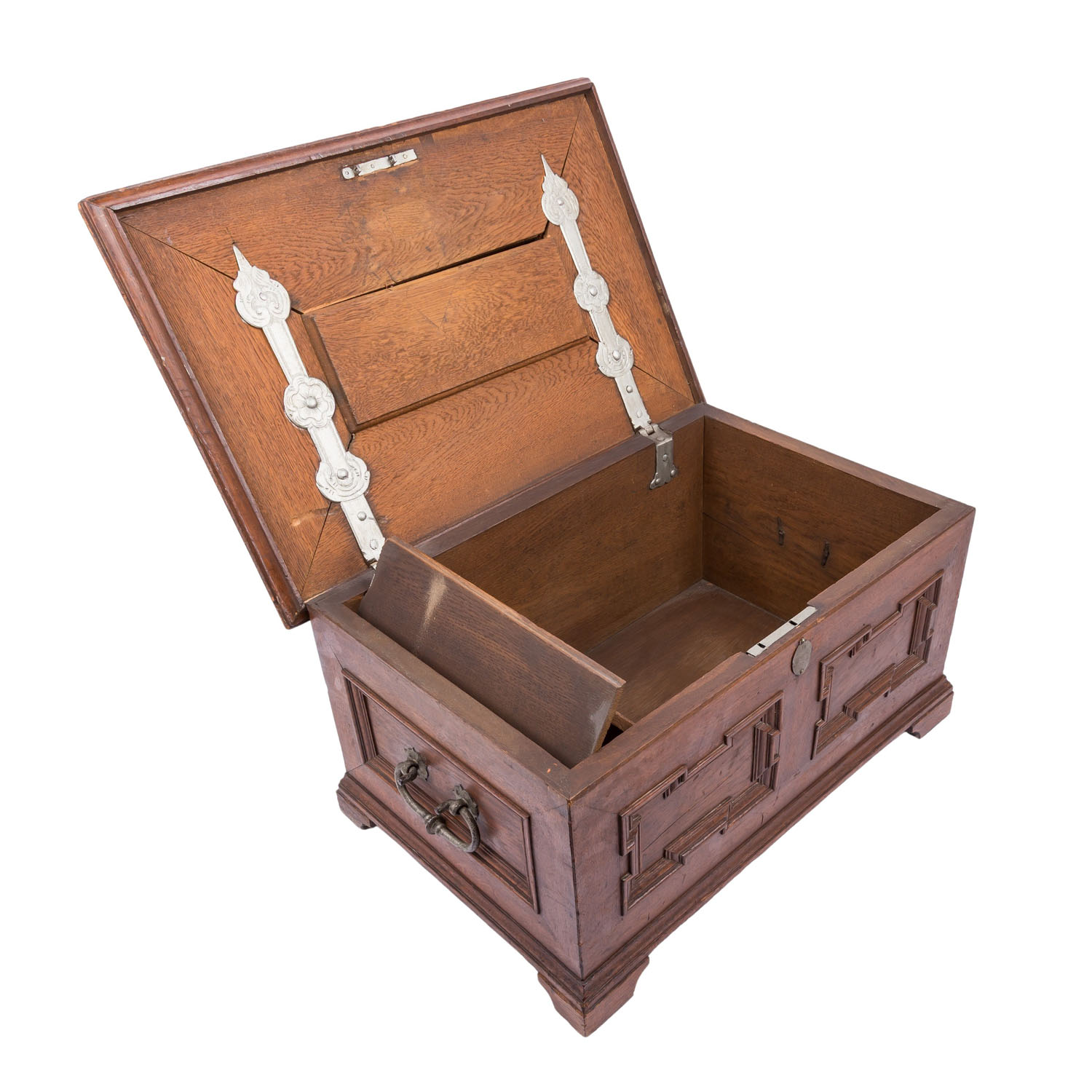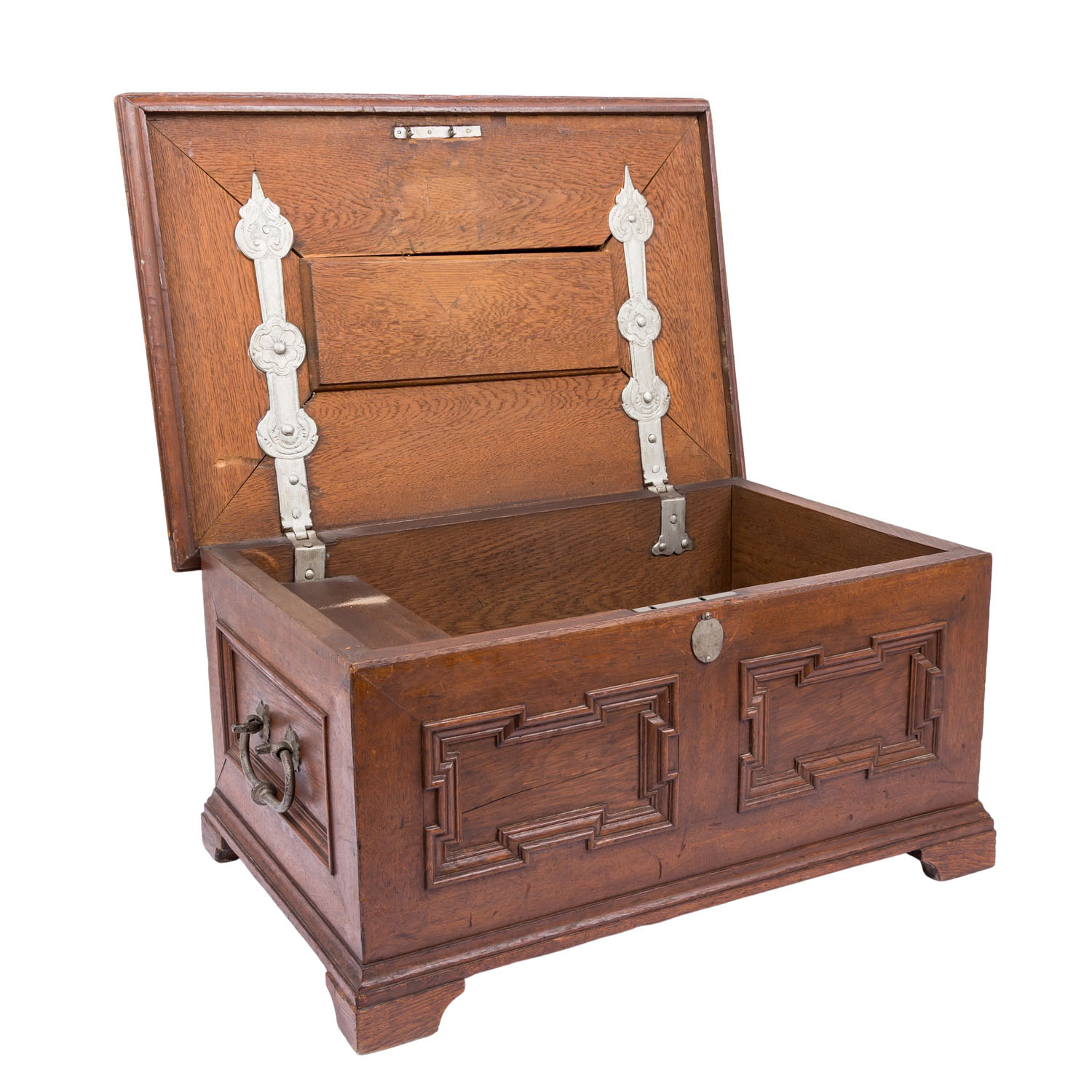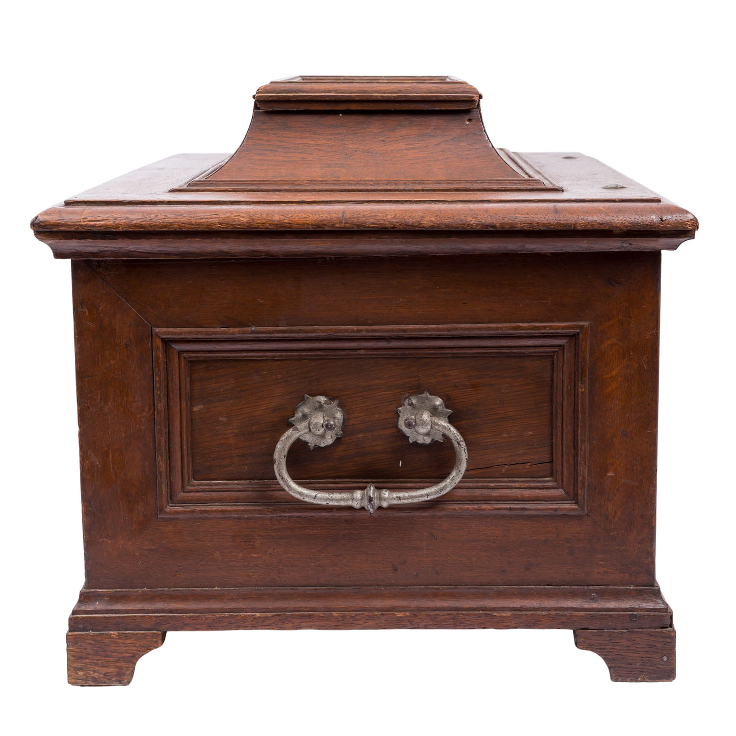 Late 18th century, oak body, rectangular base, HxWxD: 40/60/40 cm. Signs of age, lock replaced.