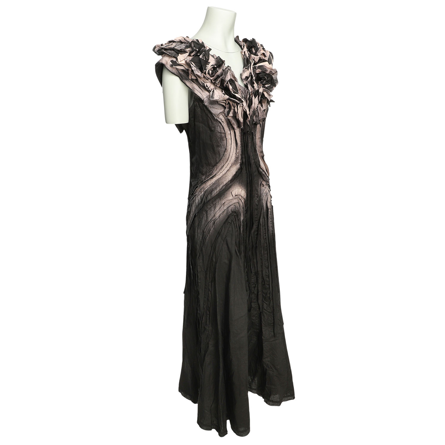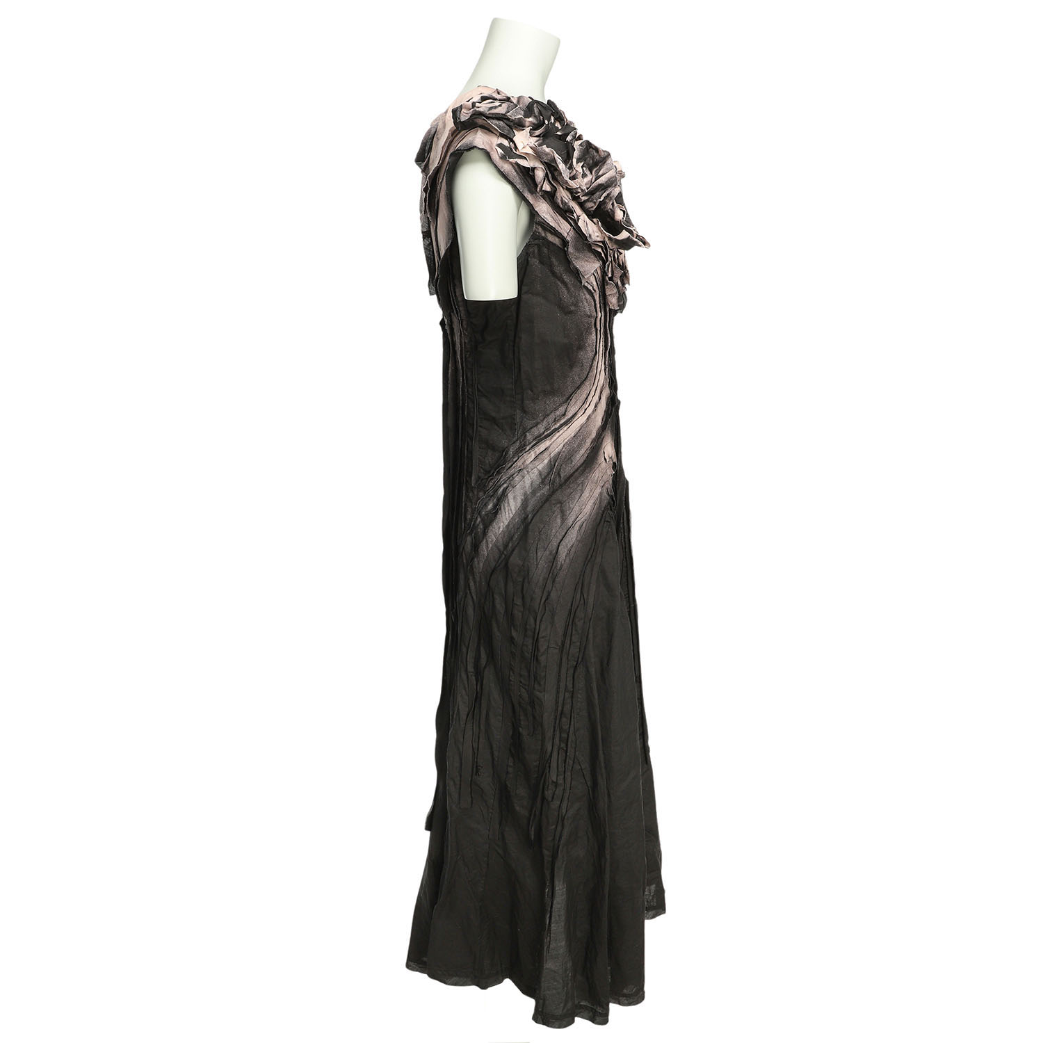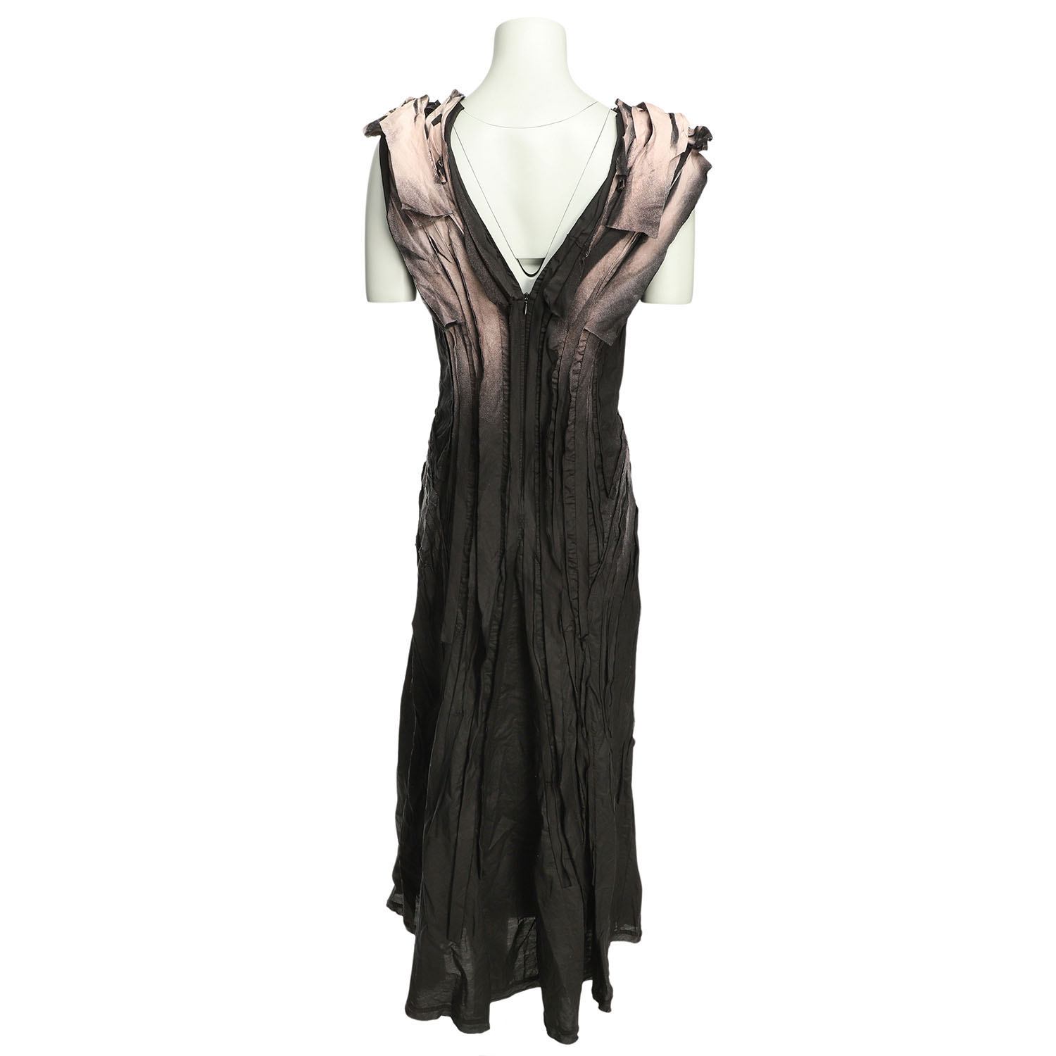 ISSEY MIYAKE dress, size 3. 50% cotton and 50% ramie. Extravagant design in black with a decorative colour gradient and pleated design as well as a layered look. In good condition.