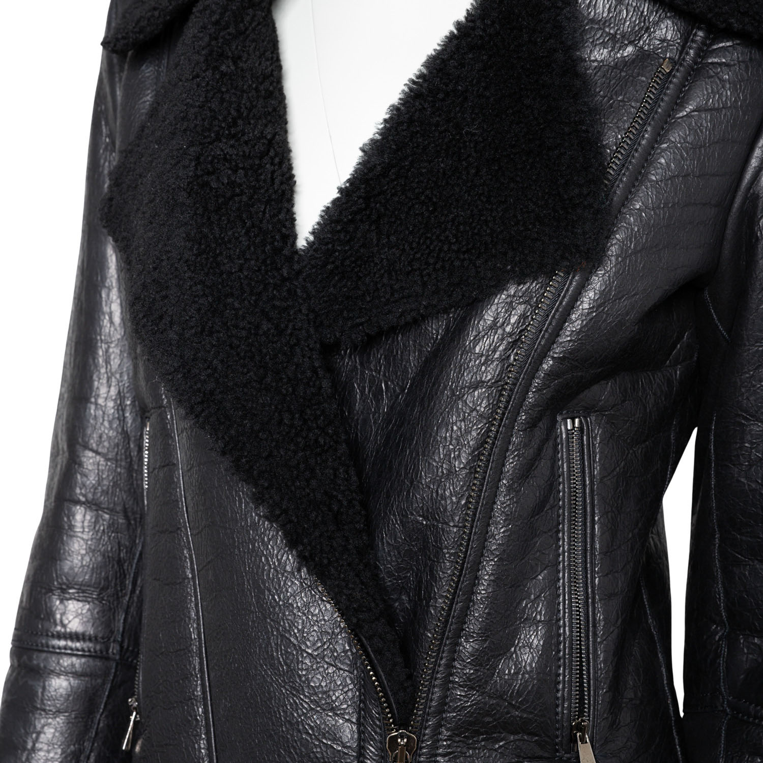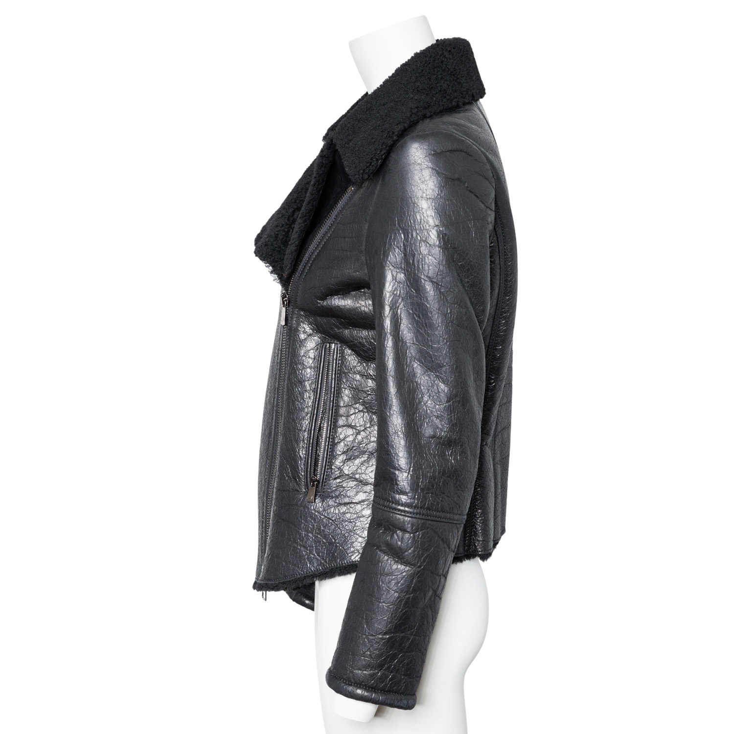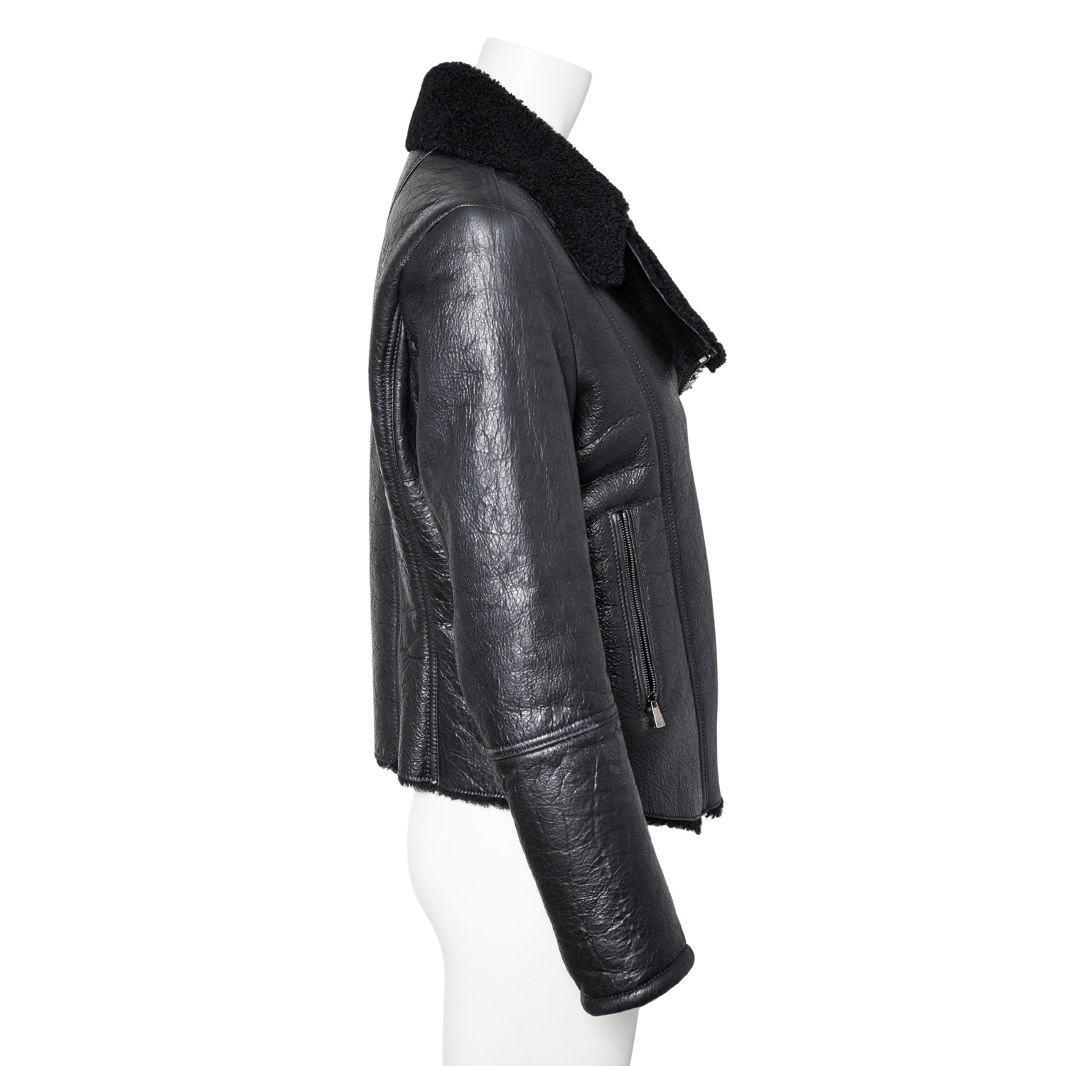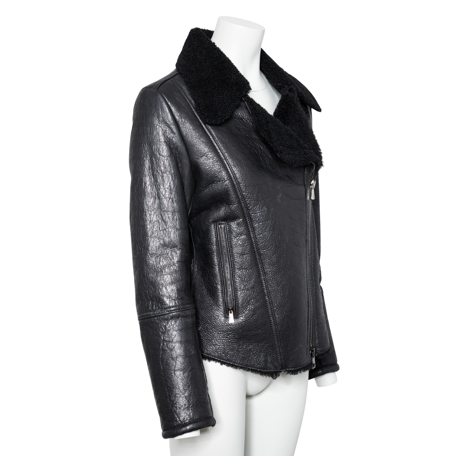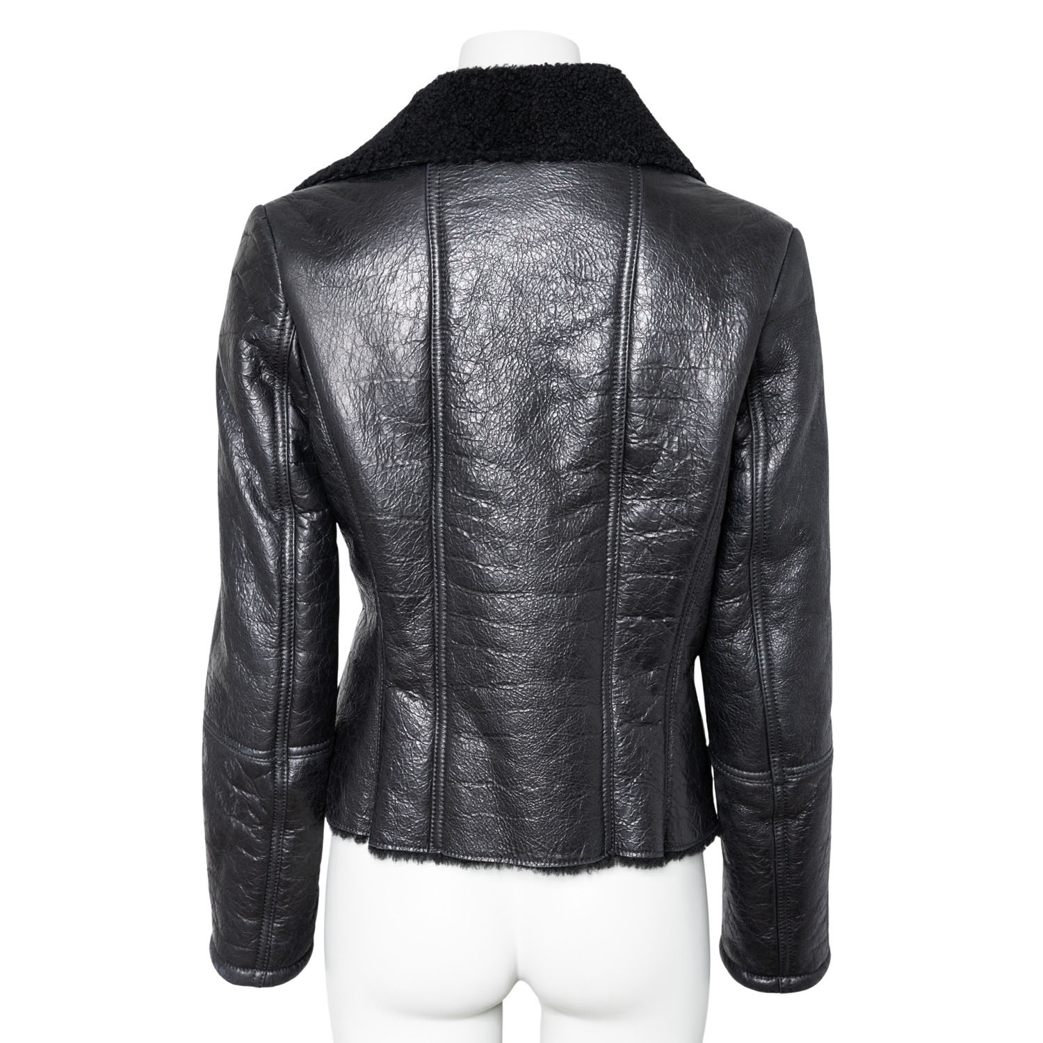 JACOB COHEN Lambskin jacket, size 38 (Italian size 42). Biker style made of black lambskin with coated outer leather. Hardware in dark gray. Very good condition.