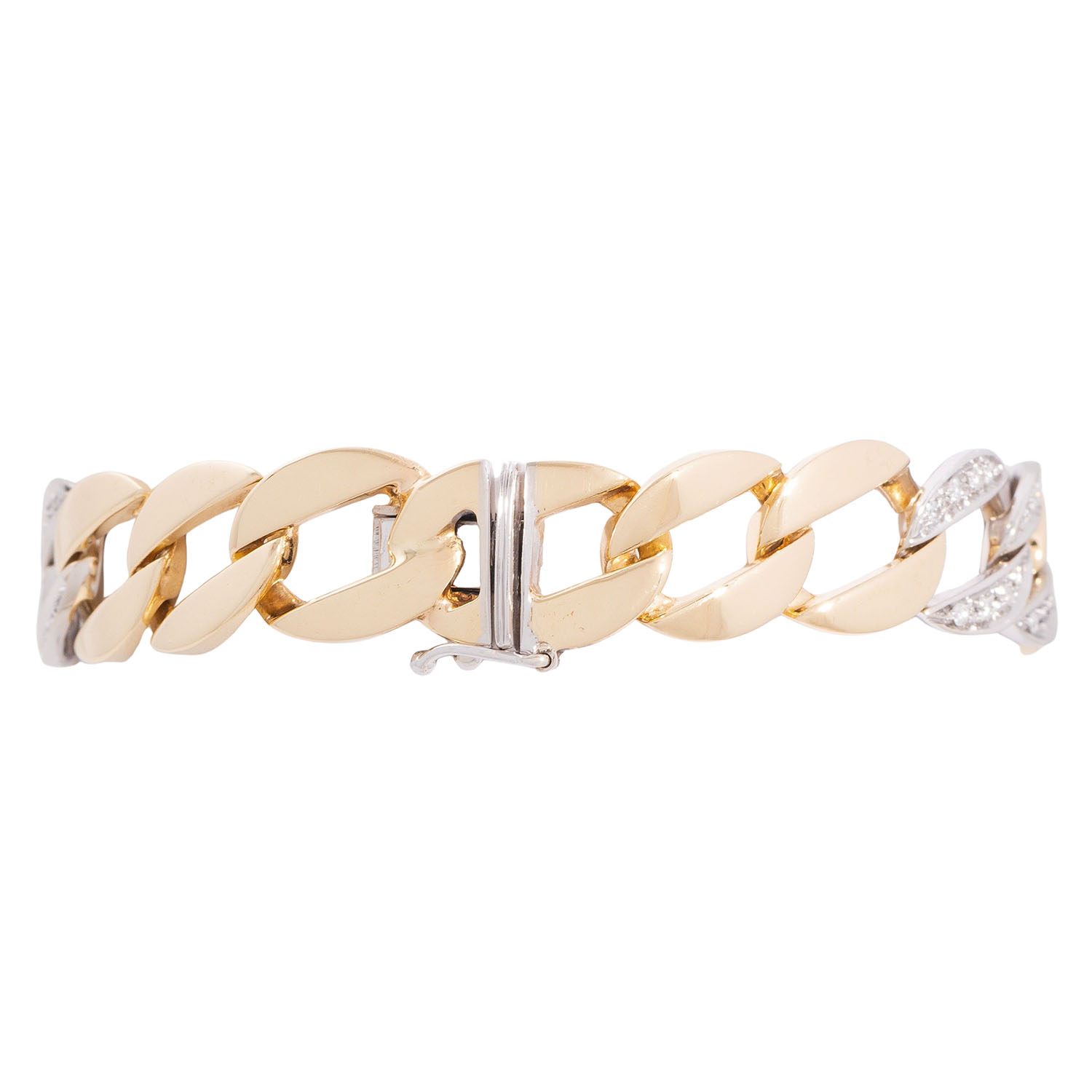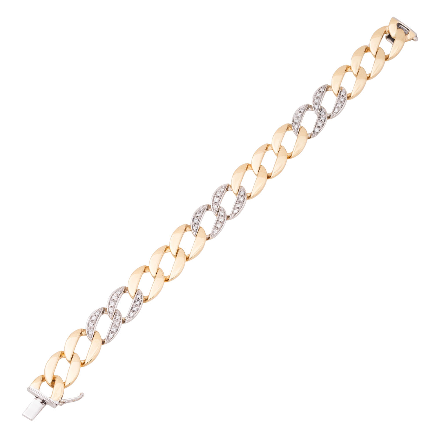 Two-tone curb chain bracelet with 88 octagonal diamonds,