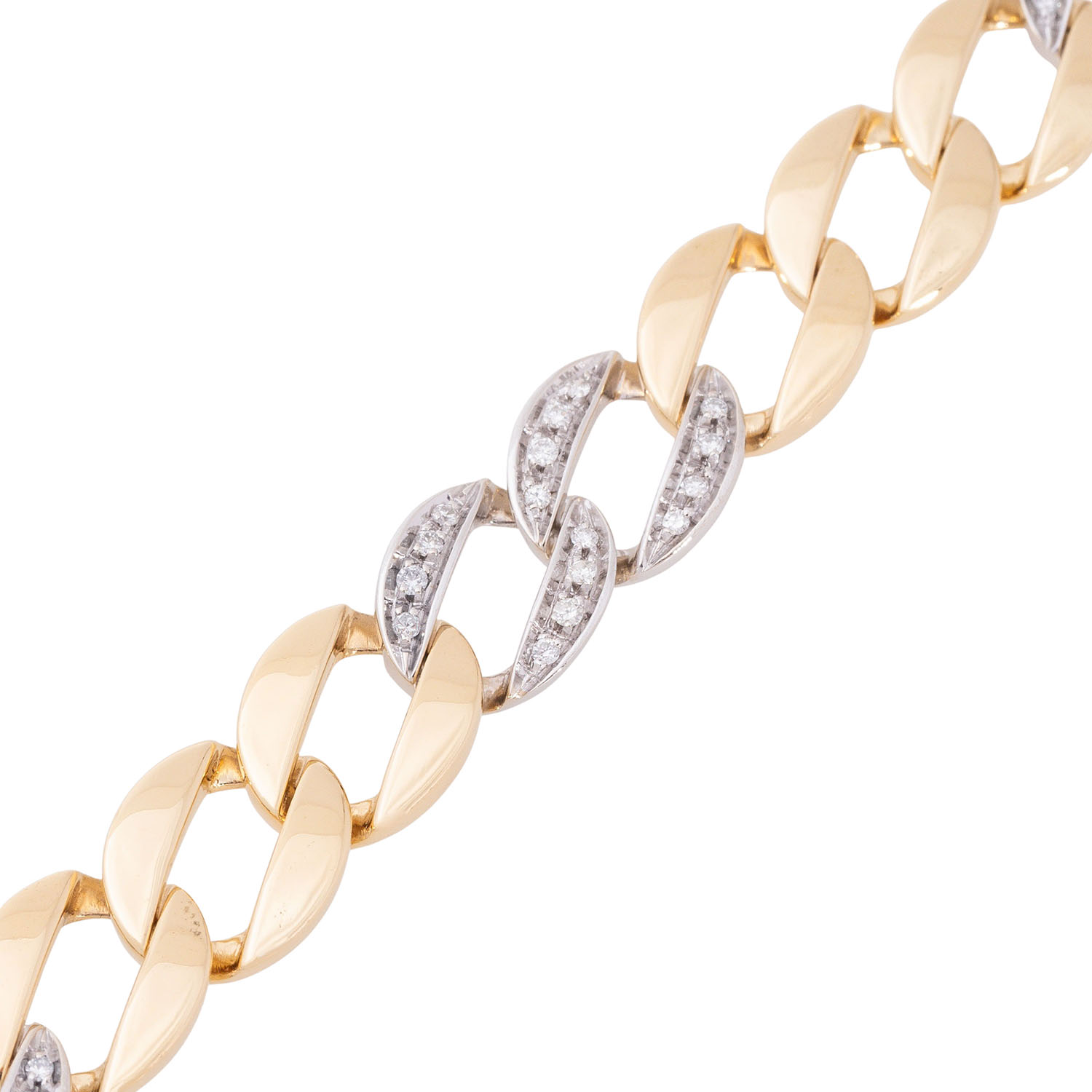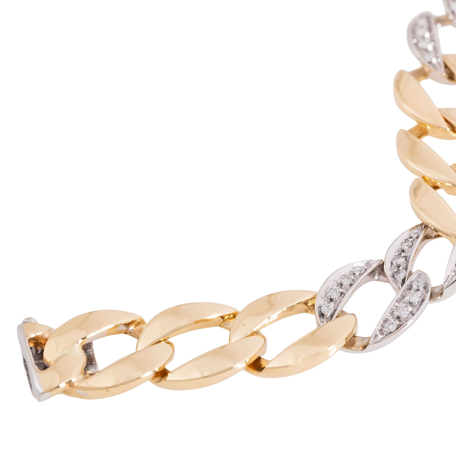 JACOBI Curb link bracelet with 48 brilliant cut diamonds, totalling 0.75 ct (cert.), RW (F-G)/VVSI (cert.), pavé setting in white gold, 18K yellow and white gold, 33.1 g, L: 18.5 cm, W: 11.7 mm, box clasp, security catch, 2000, minimal signs of wear, accessory: JACOBI Certificate.