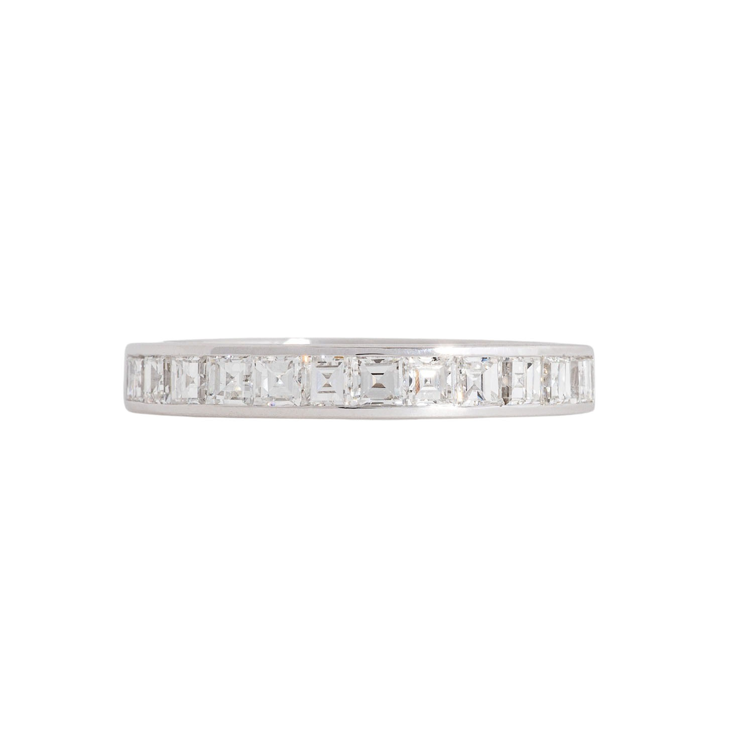 JACOBI Eternity ring with 12 carée-cut diamonds, totall. ca. 1 ct, ca. STW (I-J)/VS-SI, 18K white gold, 5 g, ring size: 57, 20th/21st century, minor signs of wear.