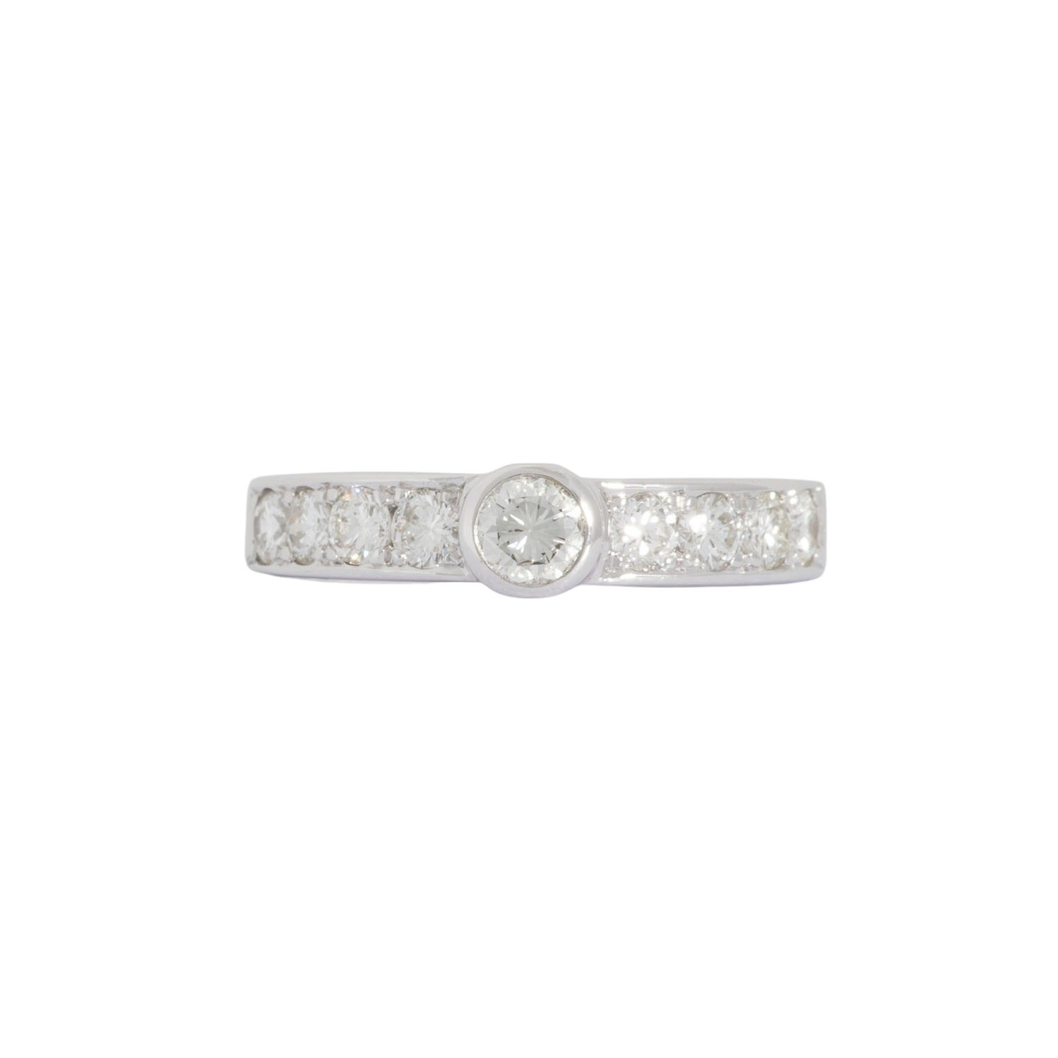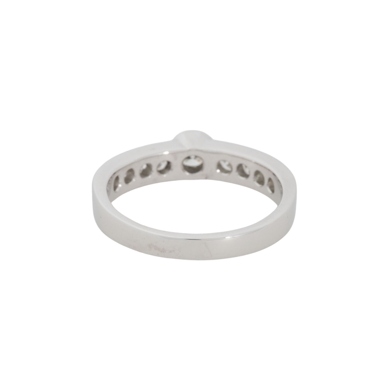 JACOBI solitaire ring with 9 brillant-cut diamonds, central brillant-cut diamond approx. 0.17 ct, totalling approx. 0.57 ct, RW (F-G)/VS, 18K white gold, 3.8 g, ring size: 51, W: approx. 2.6 - 4.4 mm, 21st century, signs of wear, with hallmark 'JACOBI'.