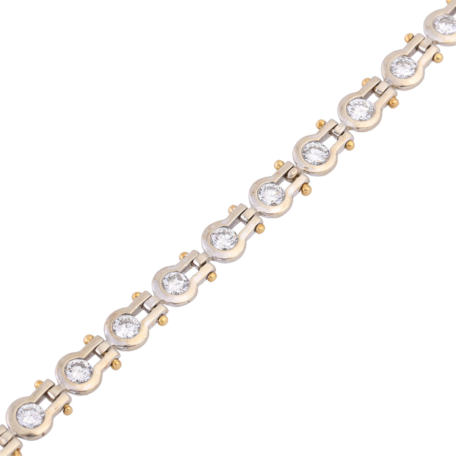 JACOBI unique bracelet with 22 brilliant-cut diamonds, totalling approx 2.68 ct approx RW (G)/IF, YG/WG 18K, 12.4 g, L: 18 cm, 20th/21st century, good condition, handcrafted. Jacobi receipt enclosed.