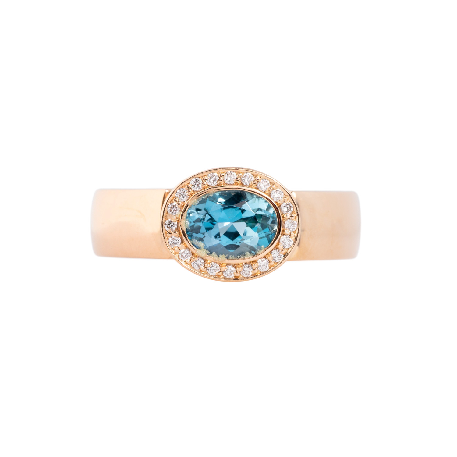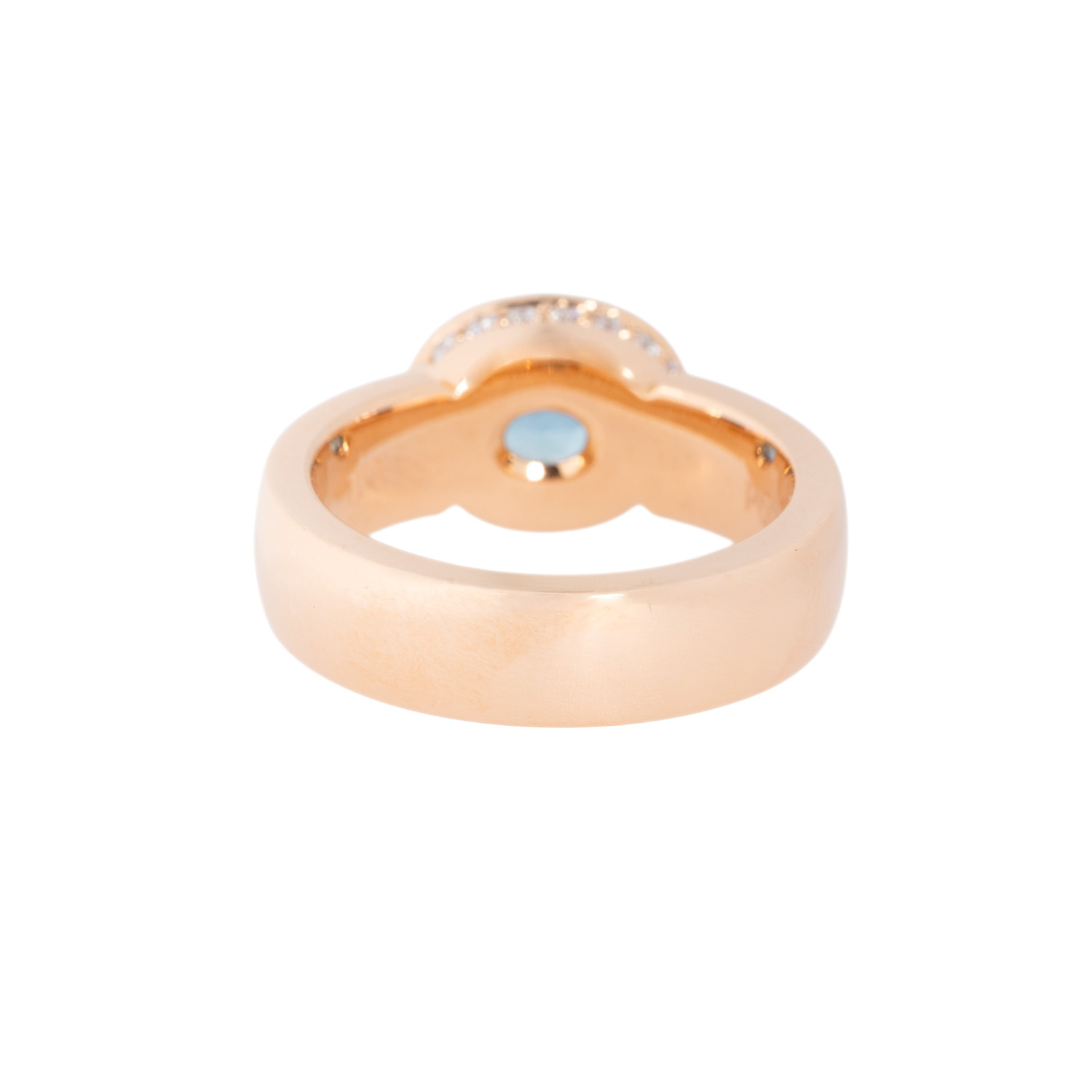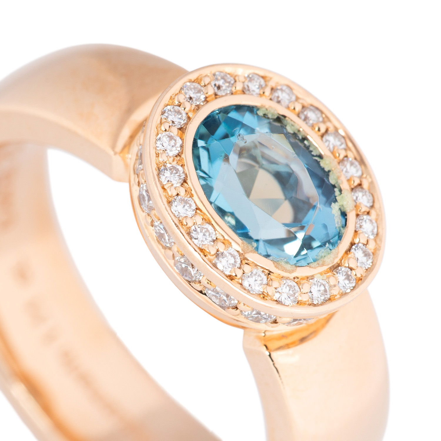 JOCHEN POHL ring with aquamarine and small brilliant-cut diamonds totalling ca. 0.44 ct (marked), good to very good color a. clarity, 18K RSG, 15.5 g, ring size 57.5, 21st century, minor signs of wear, aquamarine slightly chipped, incl. sales receitp (2011).