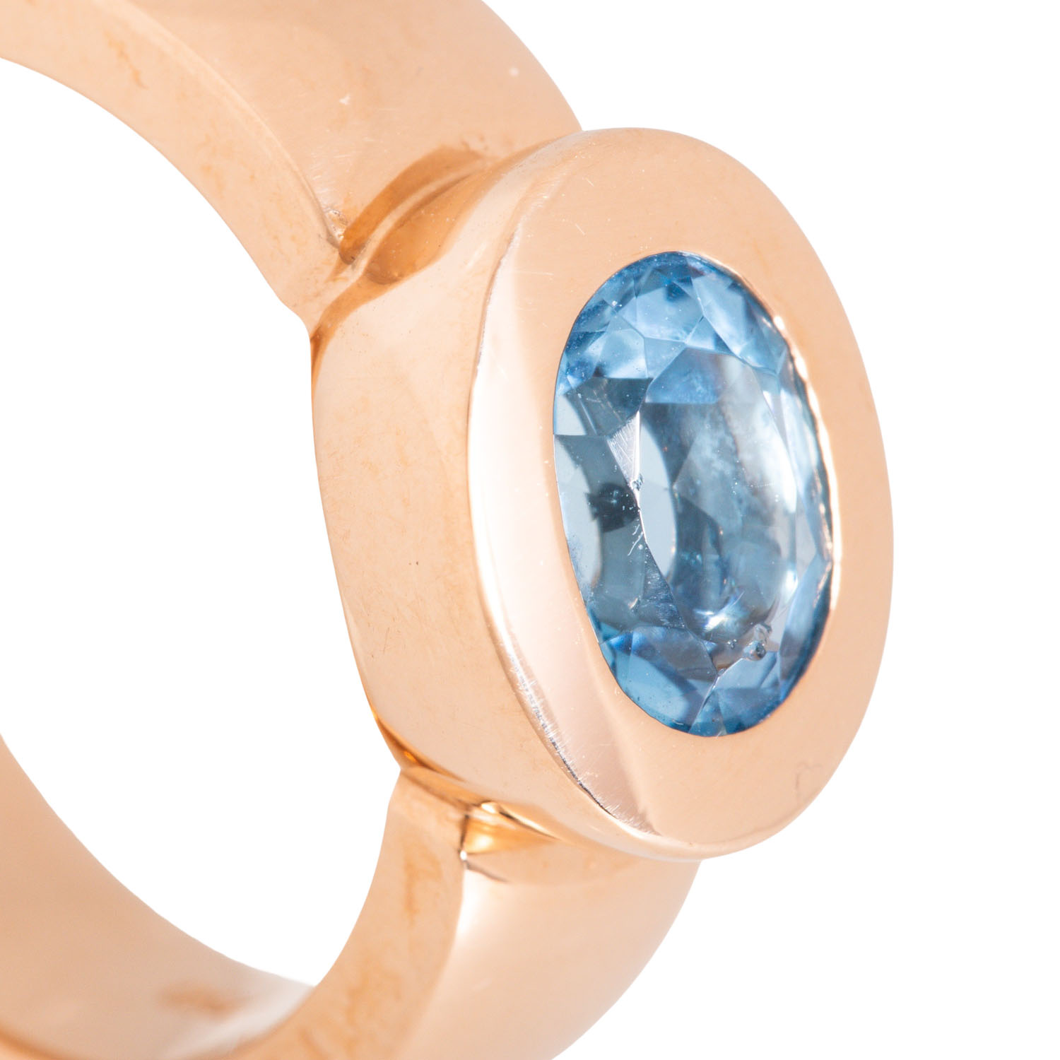 JOCHEN POHL ring with blue topaz, 18K RG, 17 g, ring size 53, 21st century, minor signs of wear, stone minimally chipped, with maker's mark.