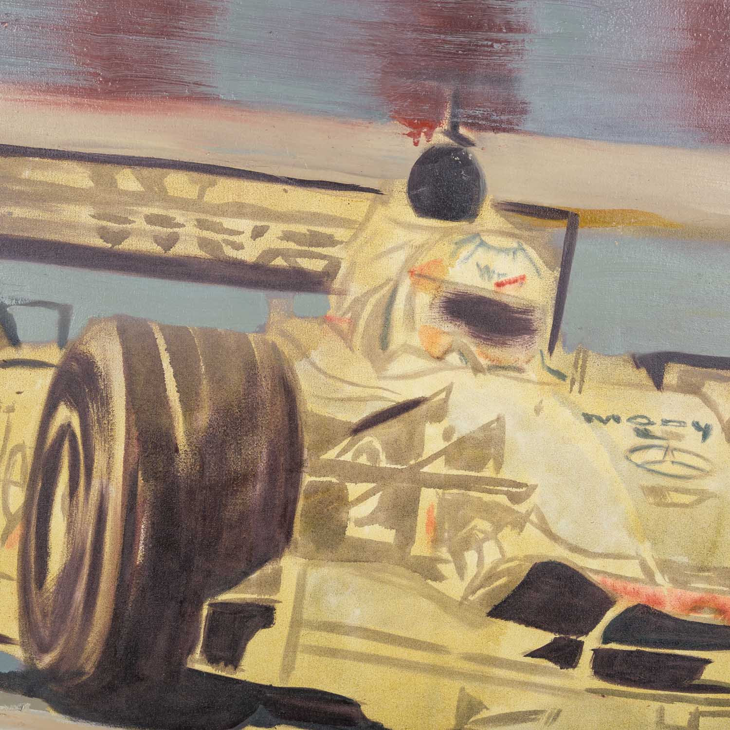 KÄSER, PETER OSKAR (born in 1966), 'Mercedes Formula 1 racing car', around 2002 to 2004, study, unsigned, oil/canvas, HxW: approx. 60x96 cm. Signs of age and use. P. O. KÄSER works in Düsseldorf, studied at the Düsseldorf Academy with Markus Lüpertz and Dieter Krieg, 1995 master class with Krieg and the Markus Lüpertz Prize.