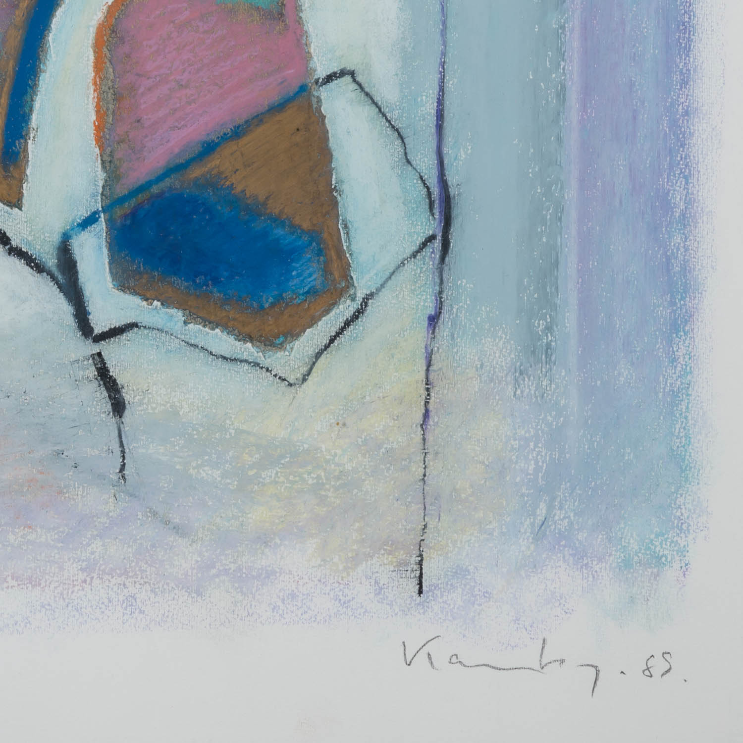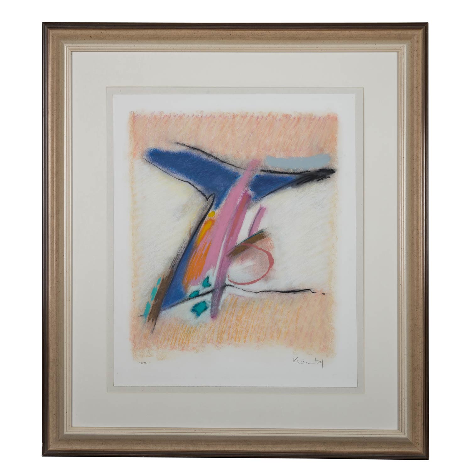 KANTSO, JENS (born 1935), 2 pastels, 1.) 'Whale', titled by hand in pencil lower left, signed by hand in pencil lower right, HxW: sheet approx. 60x50 cm (89.5x79.5 cm with frame). Traces of age and wear, corners and edges slightly chipped. 2.) ‘Butterfly’, titled in pencil by hand lower left, signed and indistinctly dated (89?) in pencil by hand lower right, HxW: sheet approx. 50x70 cm (85x105 cm with frame). Signs of age and rubbing, corners and edges slightly worn. Each framed behind glass in passepartout (traces of age and rubbing).
