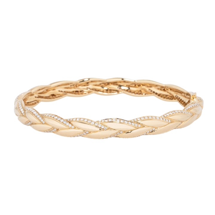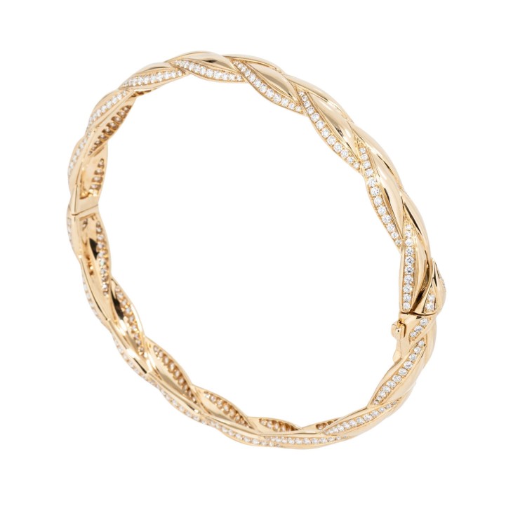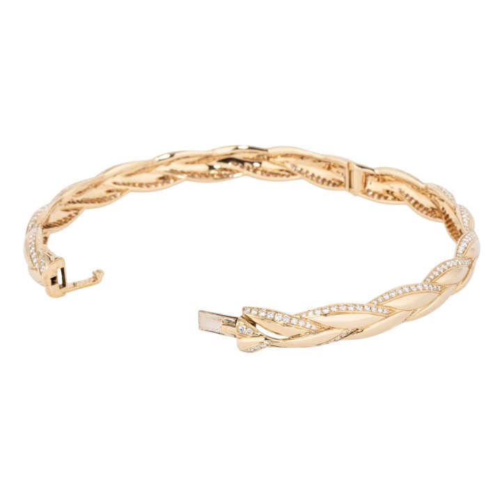KAT FLORENCE bracelet wit 355 brilliant-cut diamonds totalling 1.98 ct, EW+ (D)/IF, NP: ca. 37,000 €,18K YG, 22.9 g, inner circumference 17 cm, 21st century, minimal signs of wear, incl. Kat Florence certificate and drawing.