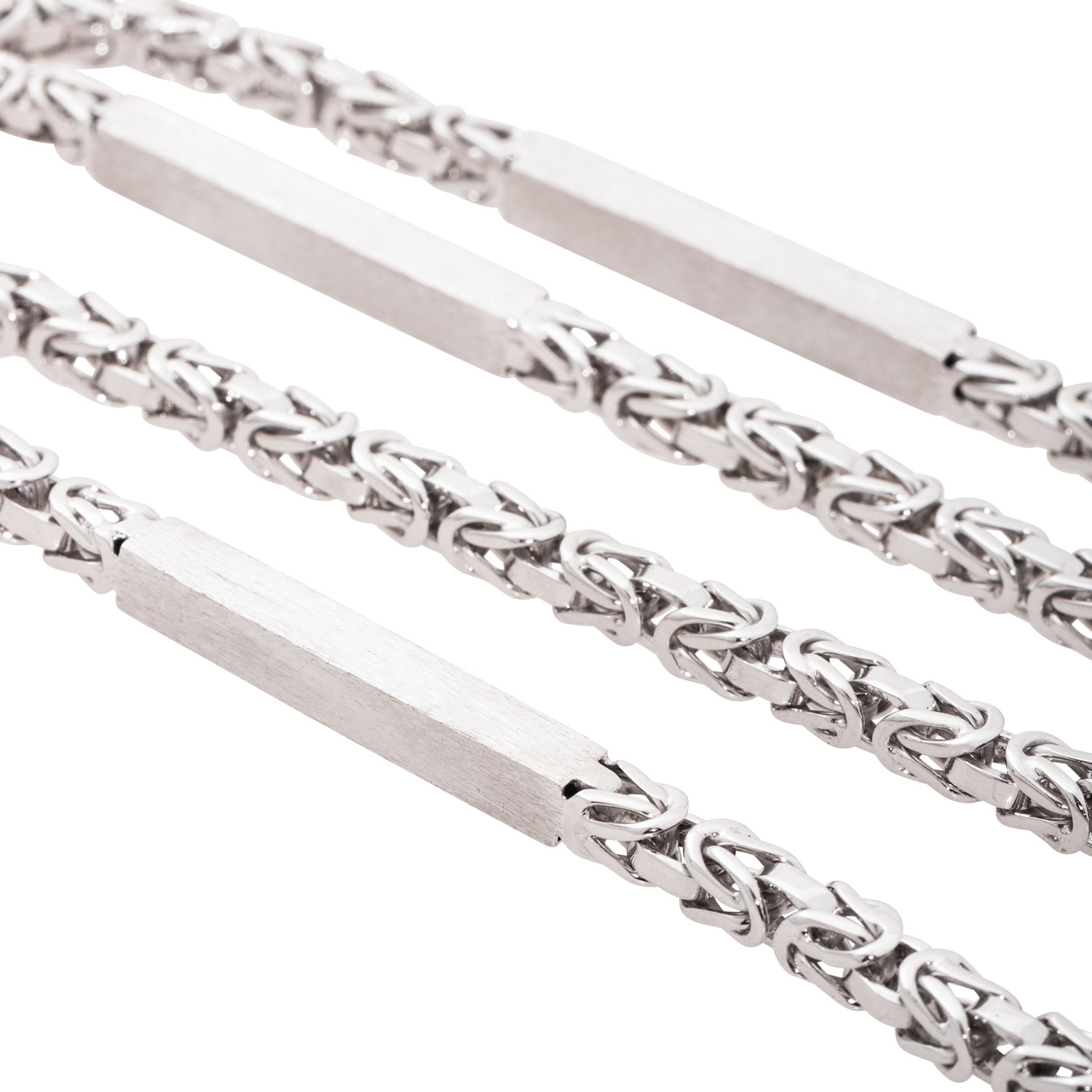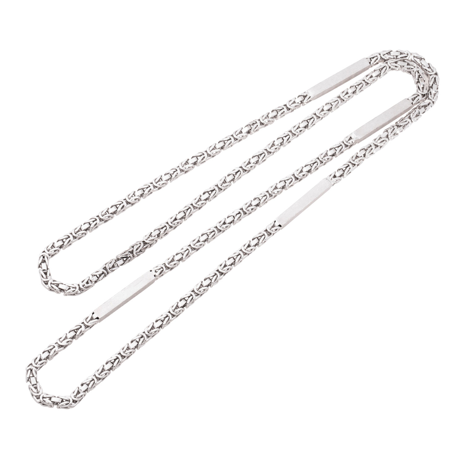 Birdcage chain with massif intermediate parts, 18K white gold, 113.1 g, L: 90 cm, W: 4.5 mm, without clasp, entermediate parts matted, late 20th century, minimal signs of wear.