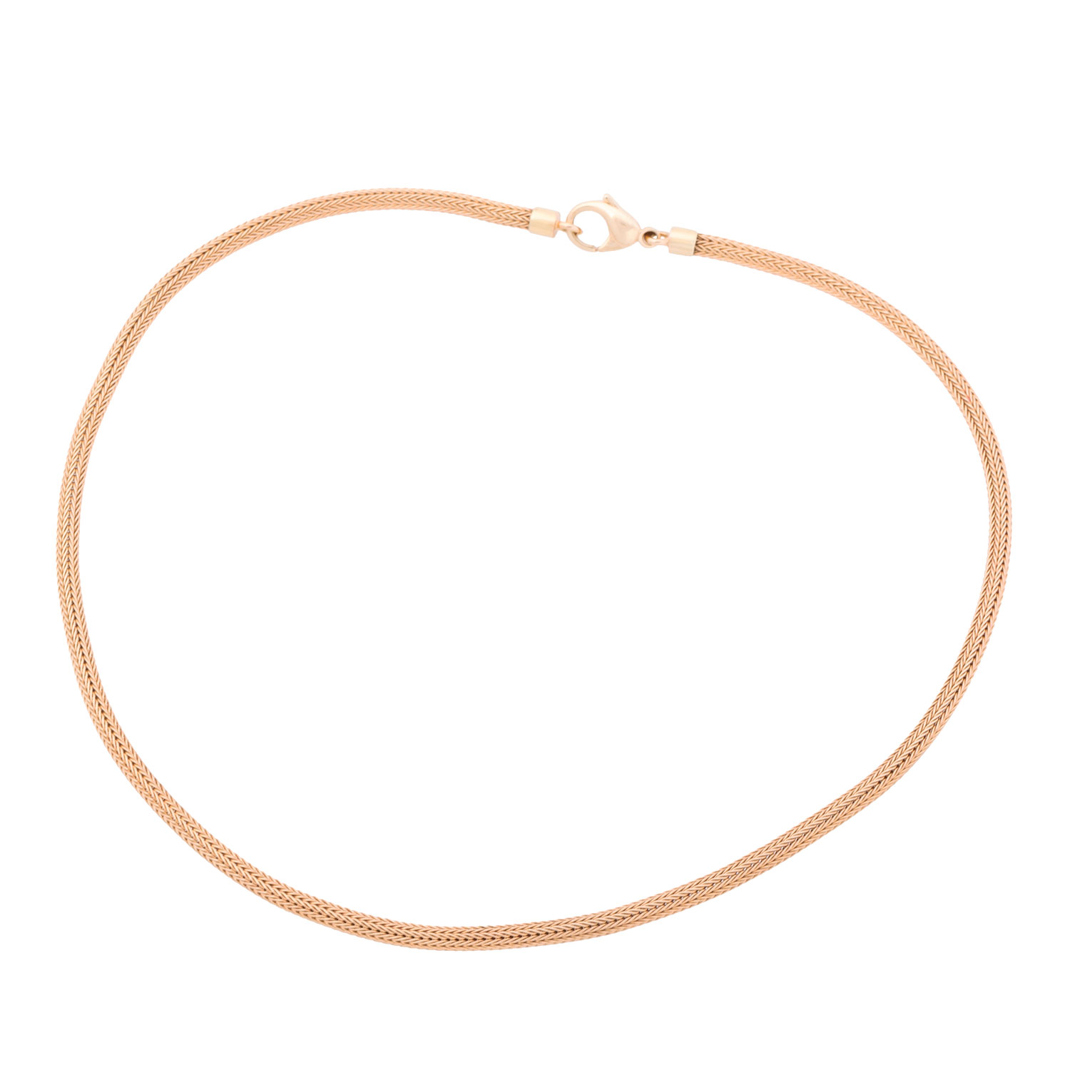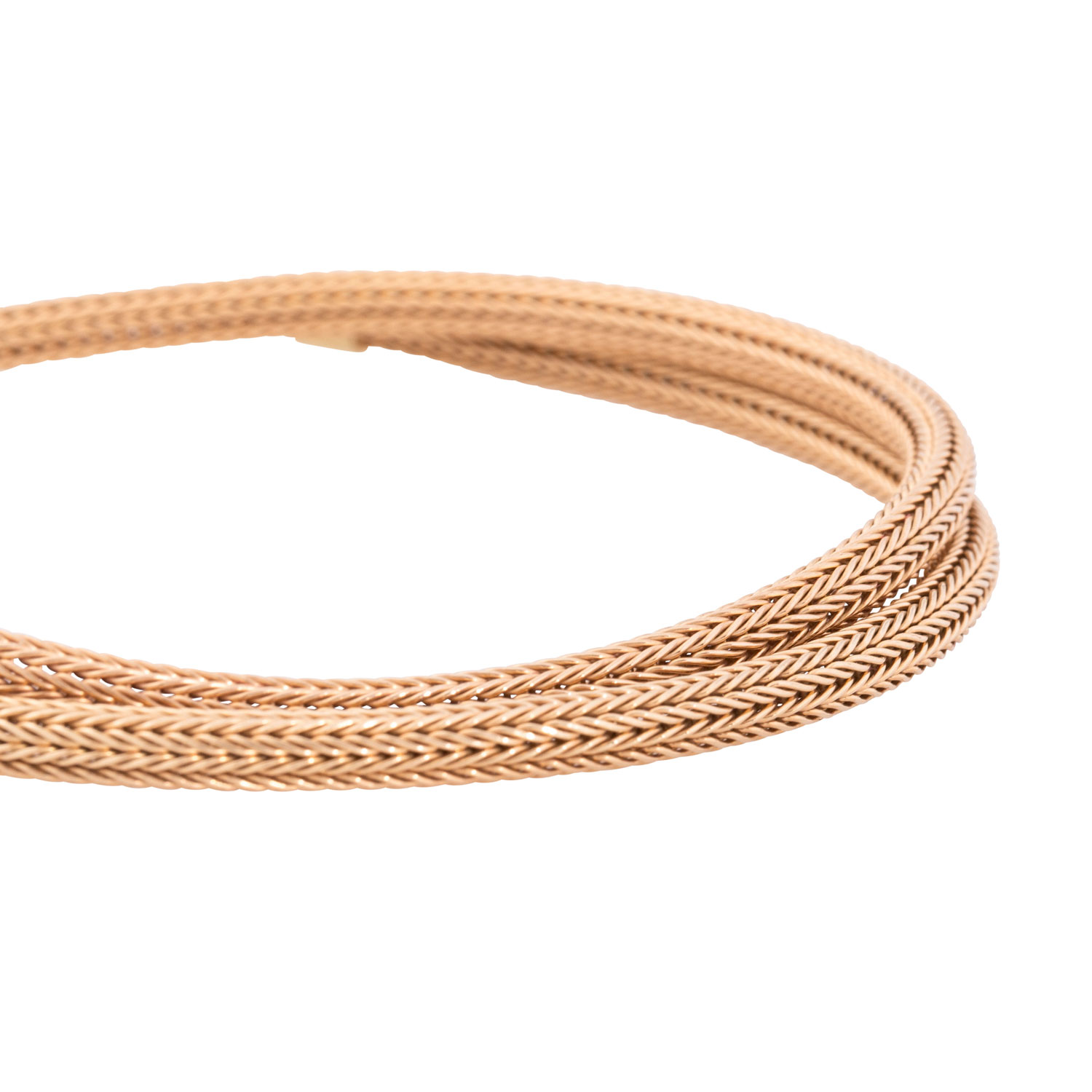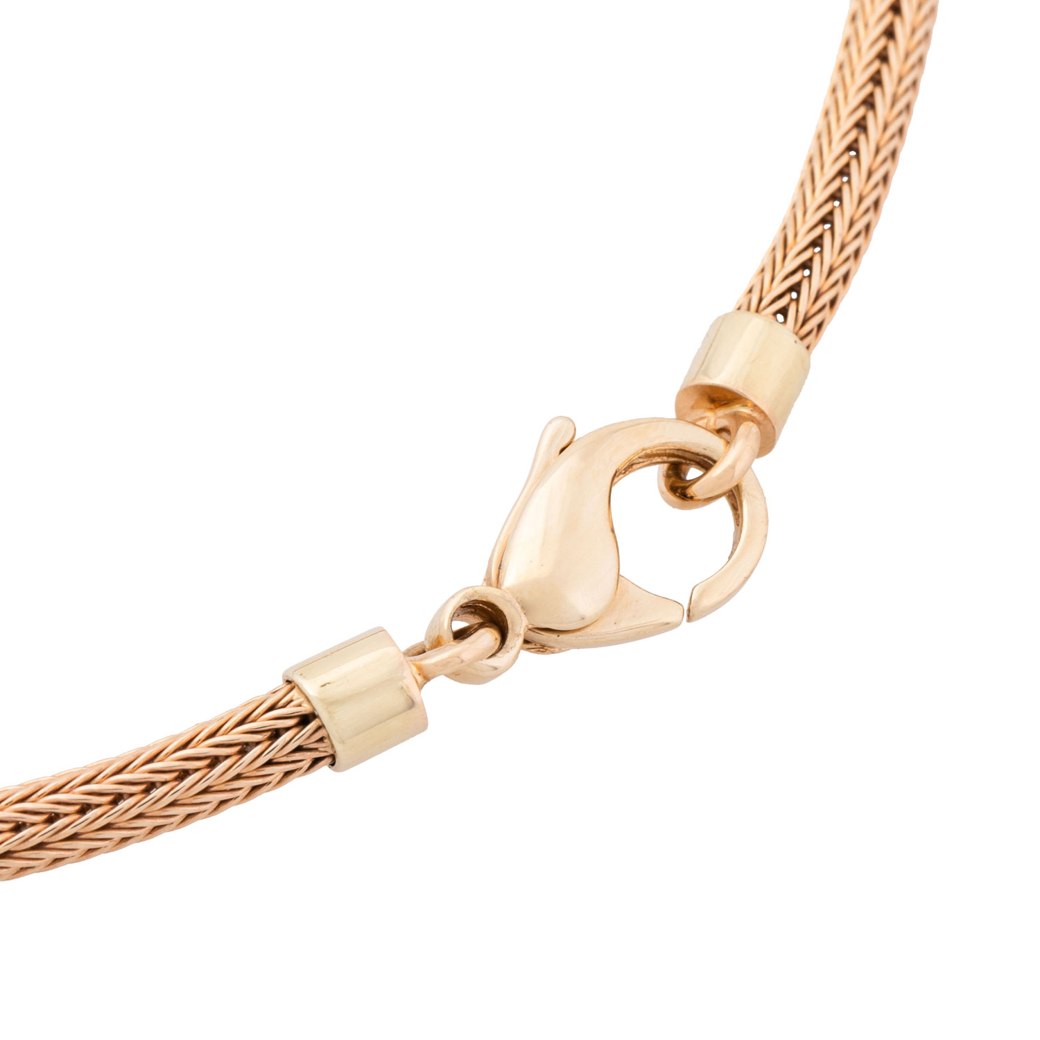 Braided necklace, polished, 14K yellow gold, 22.7 g, L: 46 cm, D: 3.6 mm, carabiner clasp, late 20th century, minor signs of wear.