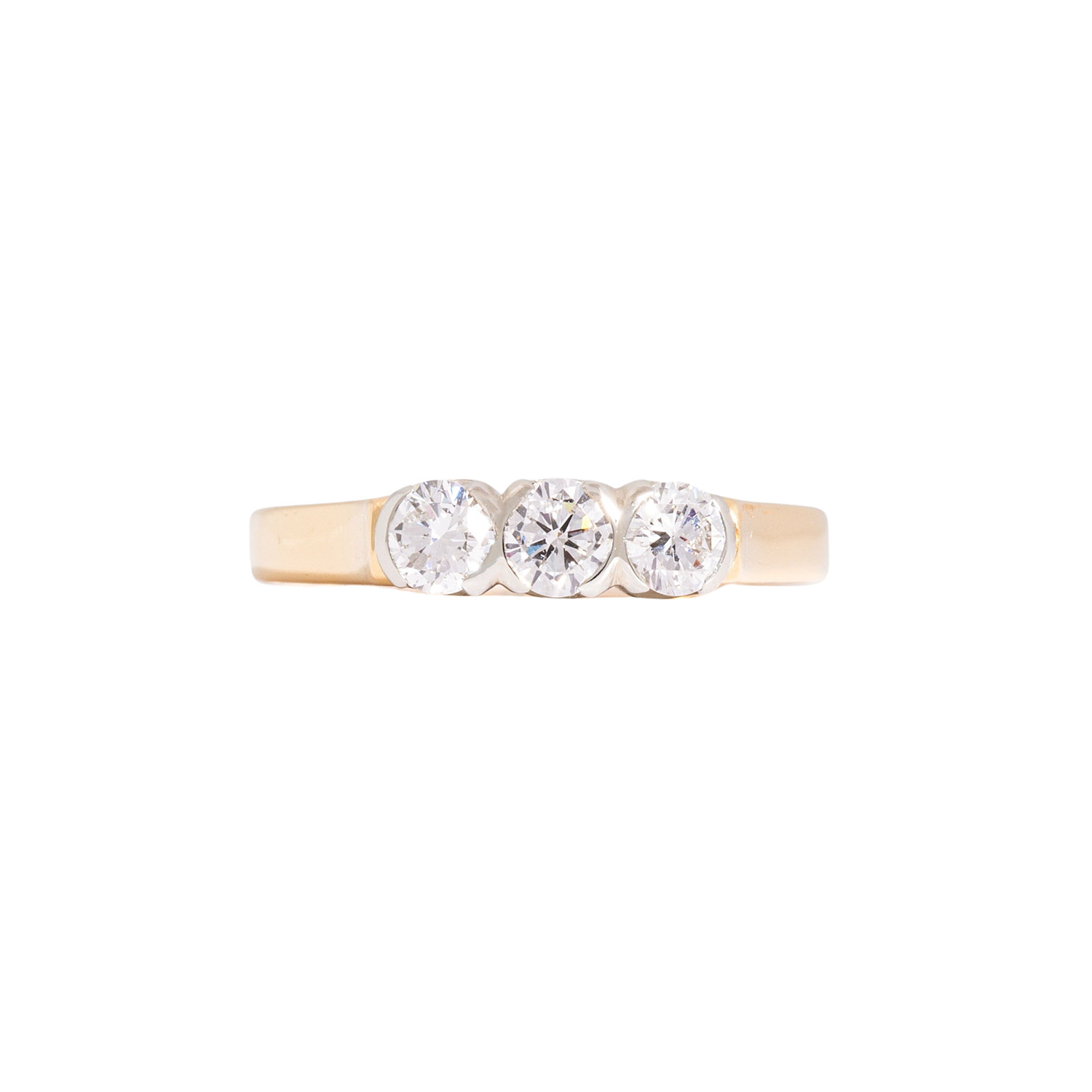 KURTZ Ring with 3 brilliant cut diamonds, totalling ap. 0.50 ct, WHITE (H)/VS, 18K yellow and white gold, 3.2 g, ring size 52, 2nd half of 20th century, minimal signs of wear.
