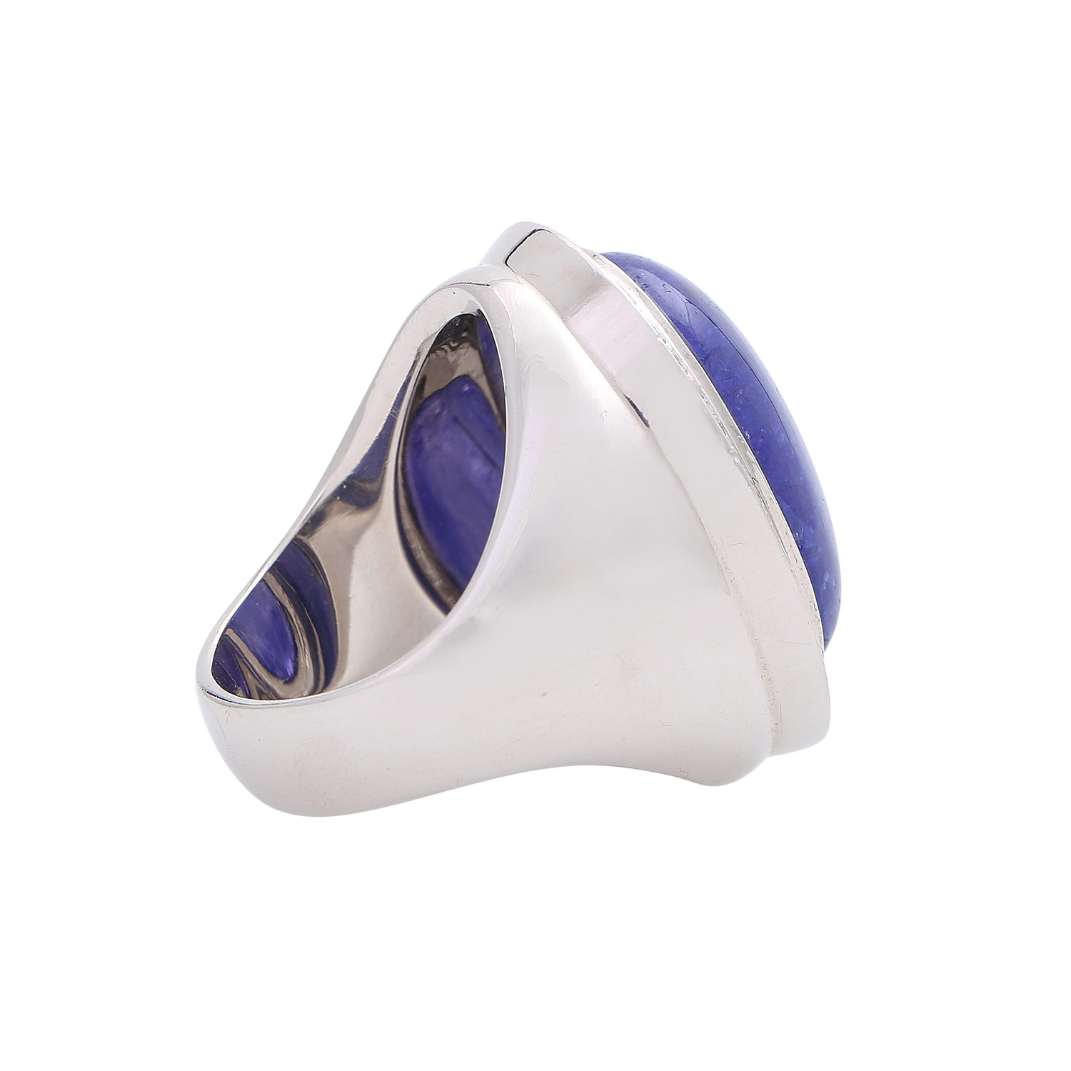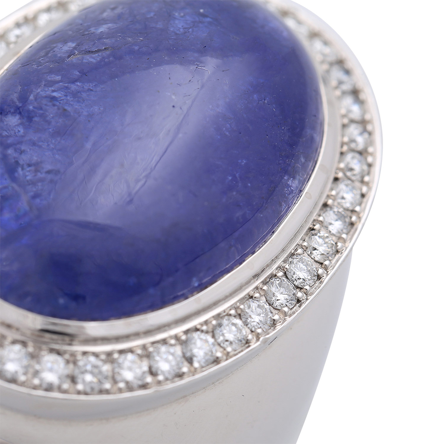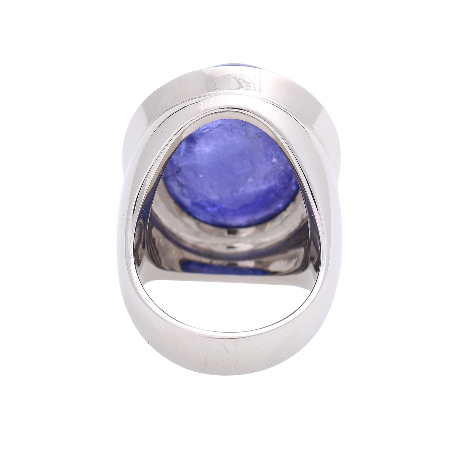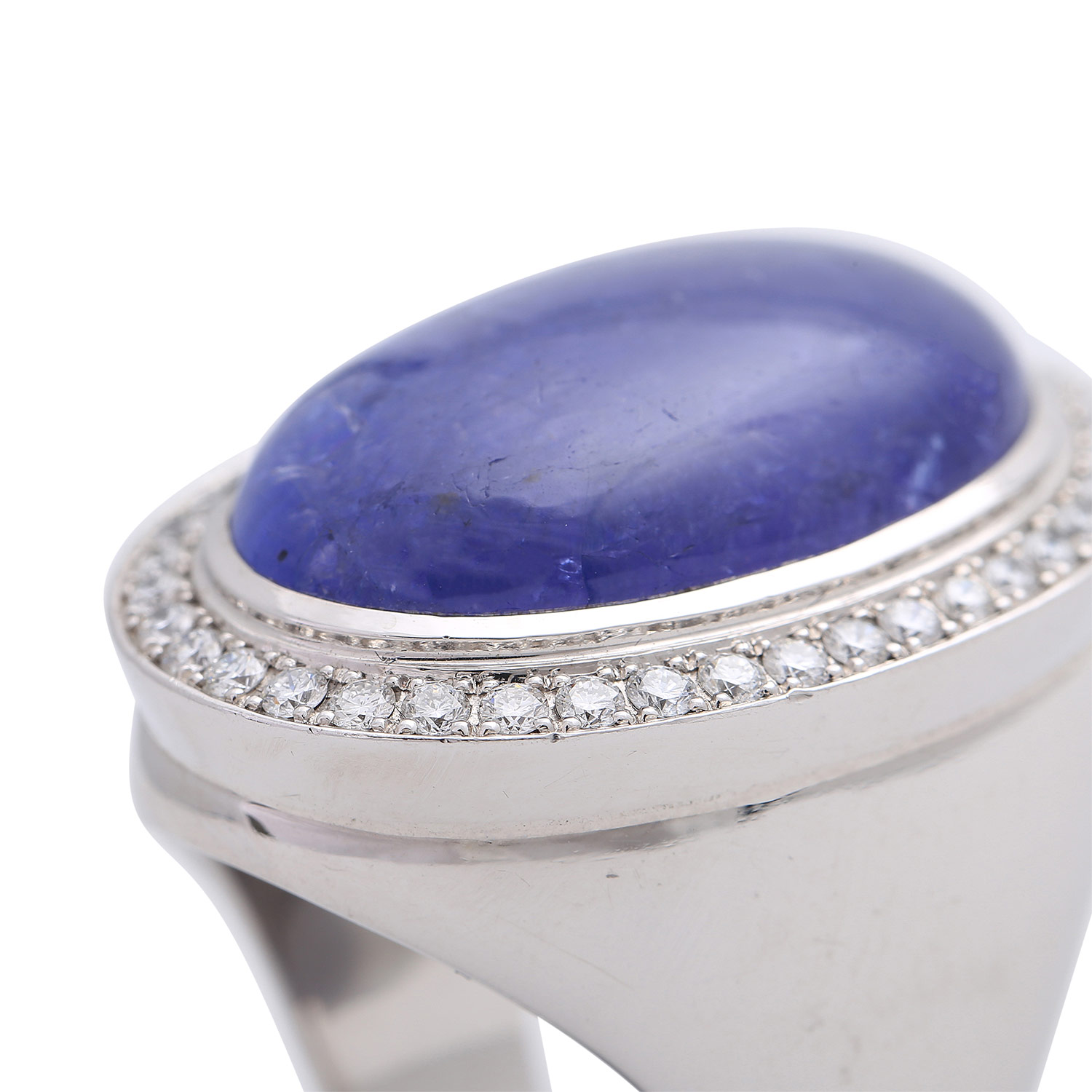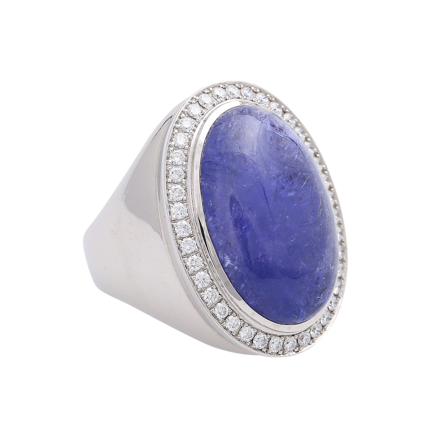 Ladies ring, decorated with 1 tanzanite cabochon 25.36 cts. and diam. brill. totaling 1.01 ct. TW/VSI.