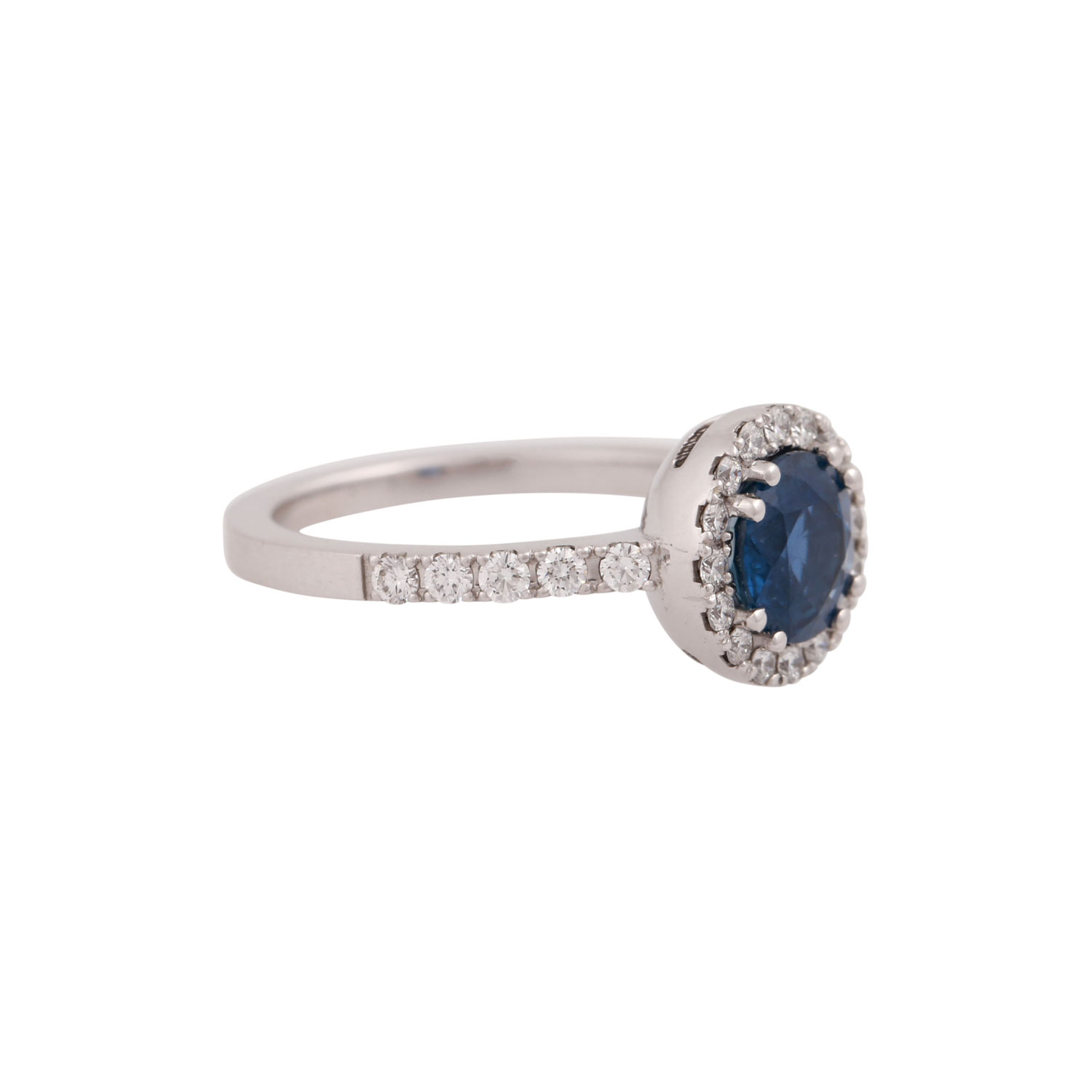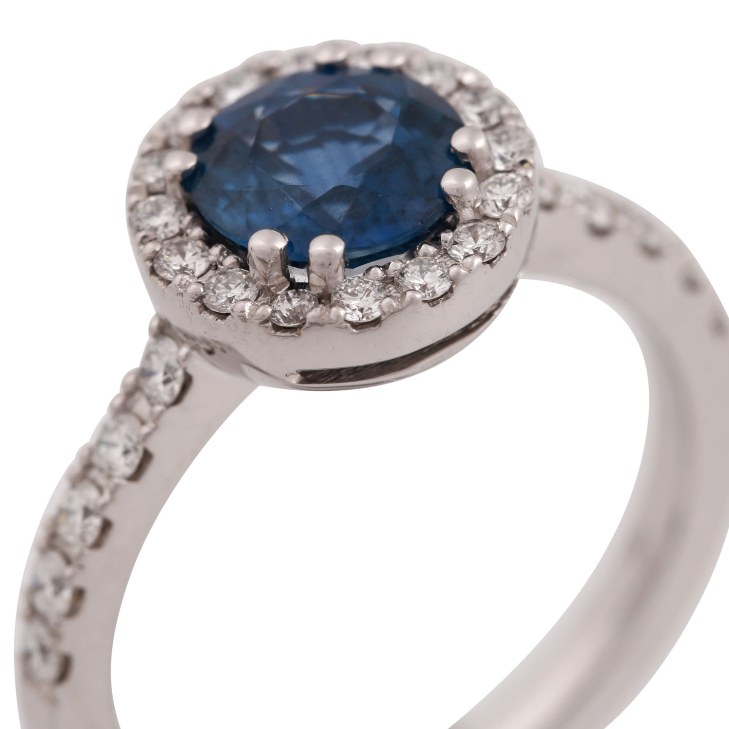 Ladies ring, esp. with 1 sapphire 1,72 cts. and 26 brill. in total 0,46 ct. FINE WHITE/SI.