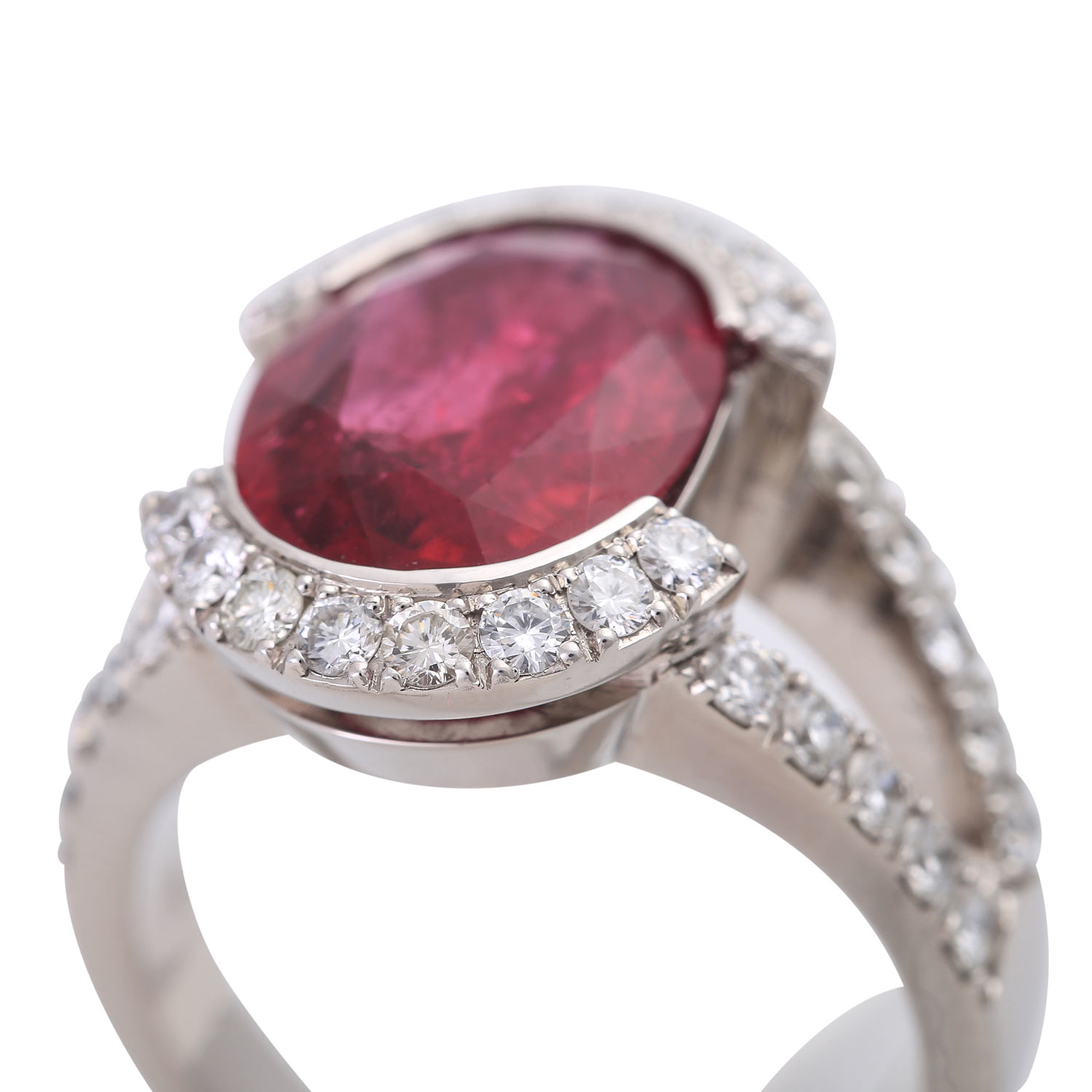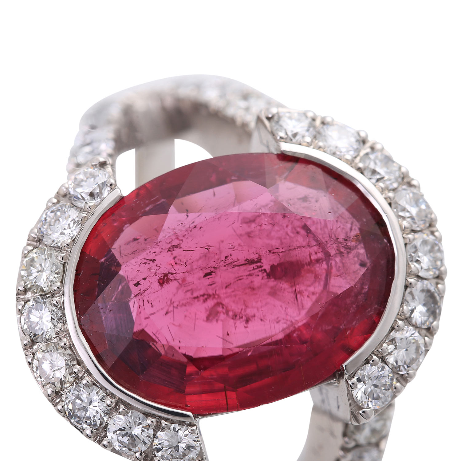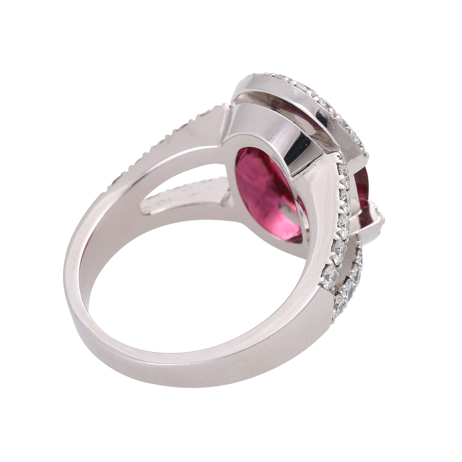Ladies ring, esp. with 1 tourmaline 4,15 ct. and diam. brill. in total approx. 1,13 cts. TW-W/VSI-SI.