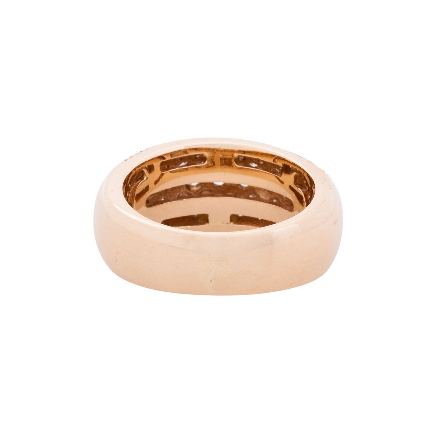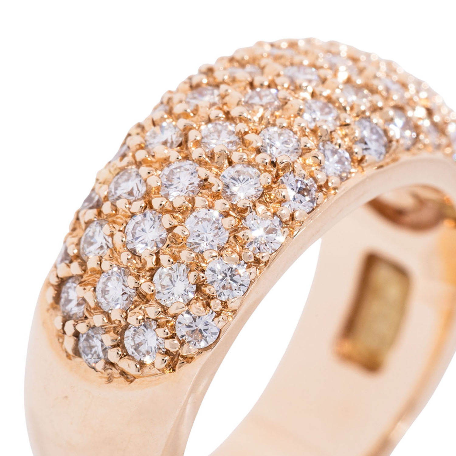 Ladies ring, set with brill. cut diamonds tot. ca. 1,2 ct. G/VSI. YG 18 K, 8,10 g. Size ca. 51. High quality craftsmenship.