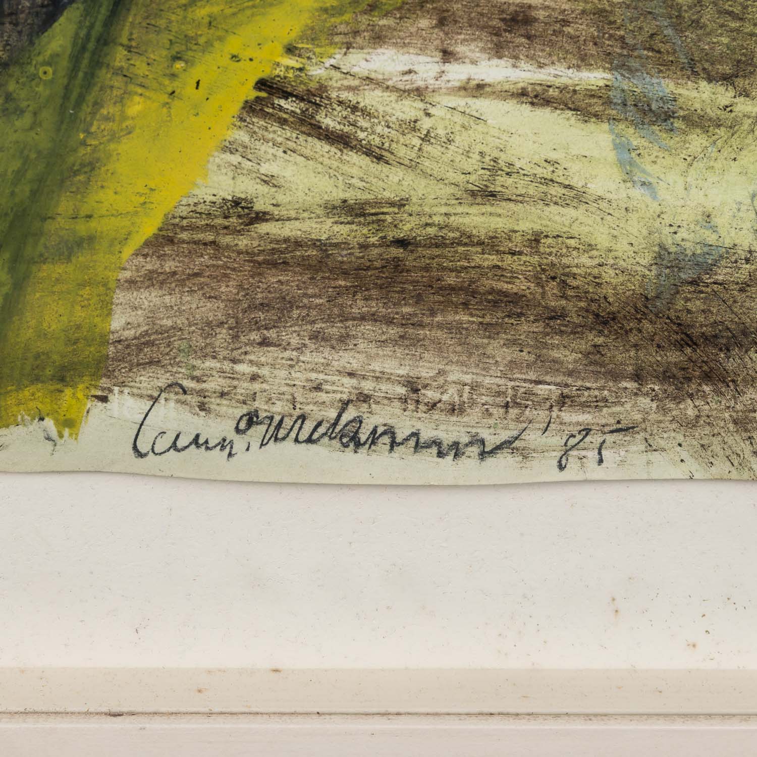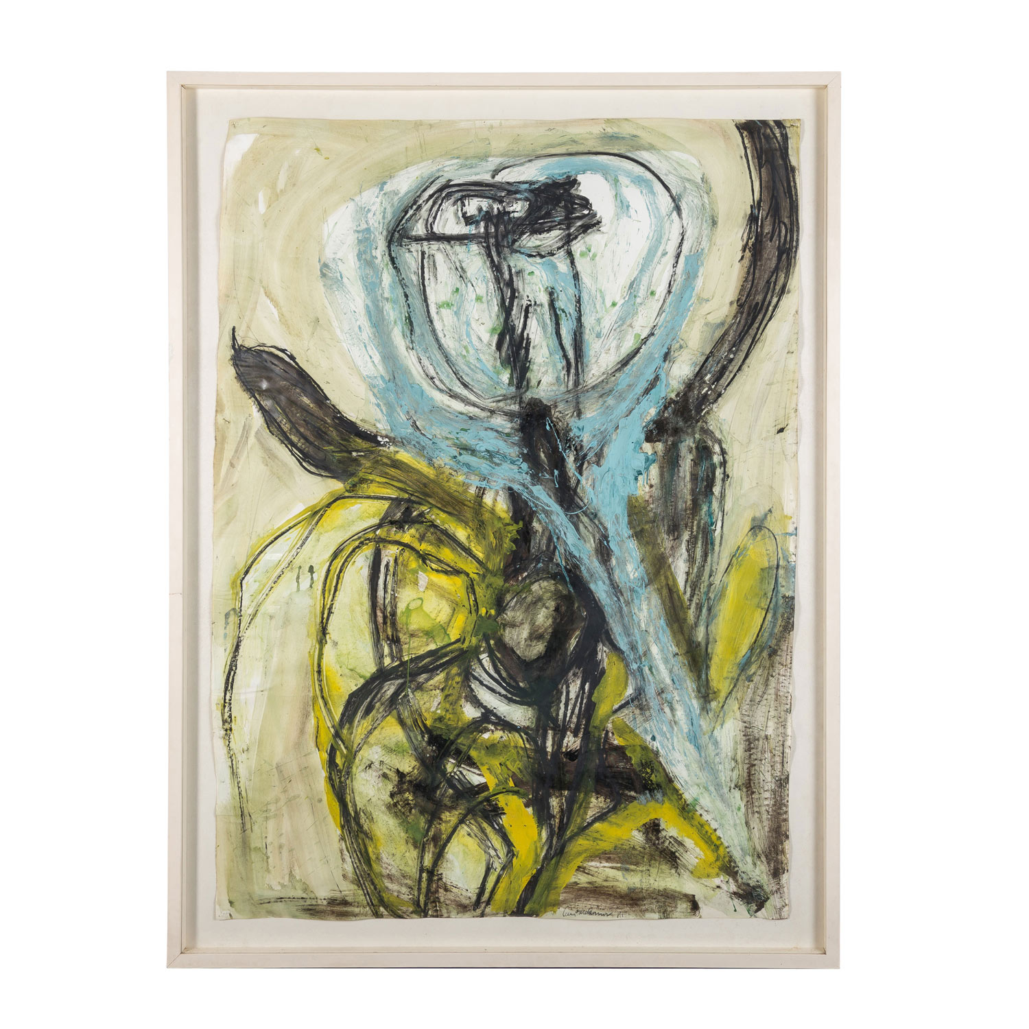 LEBERER, CAMILL (born 1953), 'Abstract Composition', 1985, signed and dated lower center, mixed media/laid paper (watermark on the edge), HxW: approx. 149x108 cm (165x124 cm with frame). Signs of age and creases, wavy, slightly browned. With glazed frame (signs of age and dirt, version partially rubbed). NOT SUITABLE FOR SHIPPING - COLLECTION ONLY.