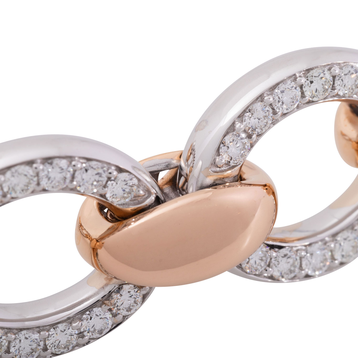Bracelet with brilliant-cut diamonds totalling ca. 5.8 ct, of good colour and clarity, RSG /WG 18K, 63.4 g, L: 20 cm, W: 16 mm, 21st century, mint condition.