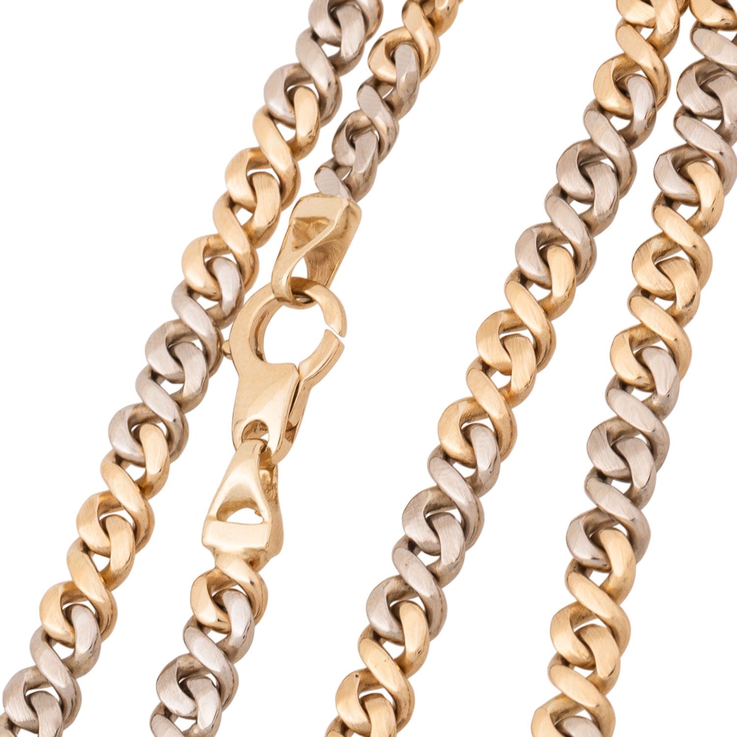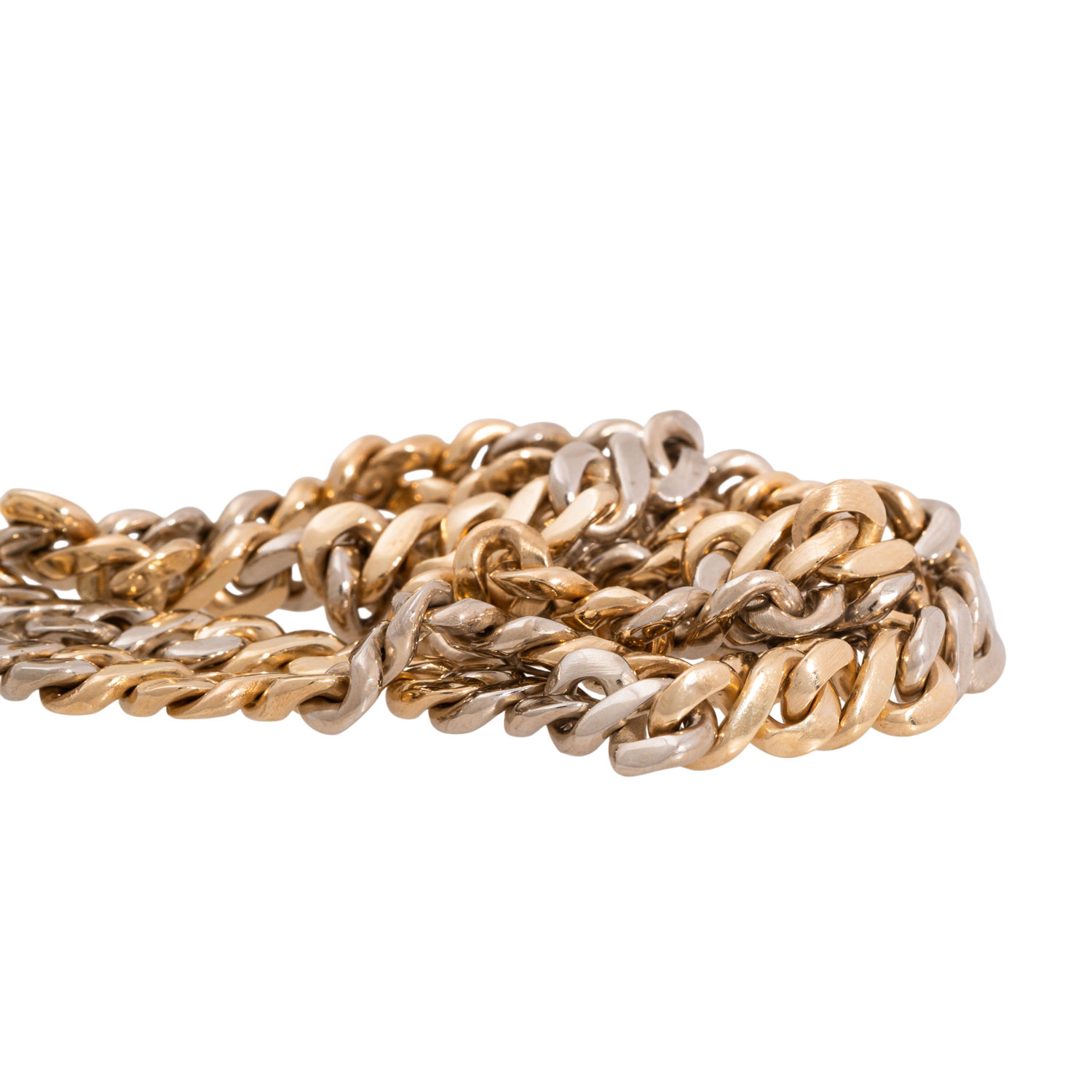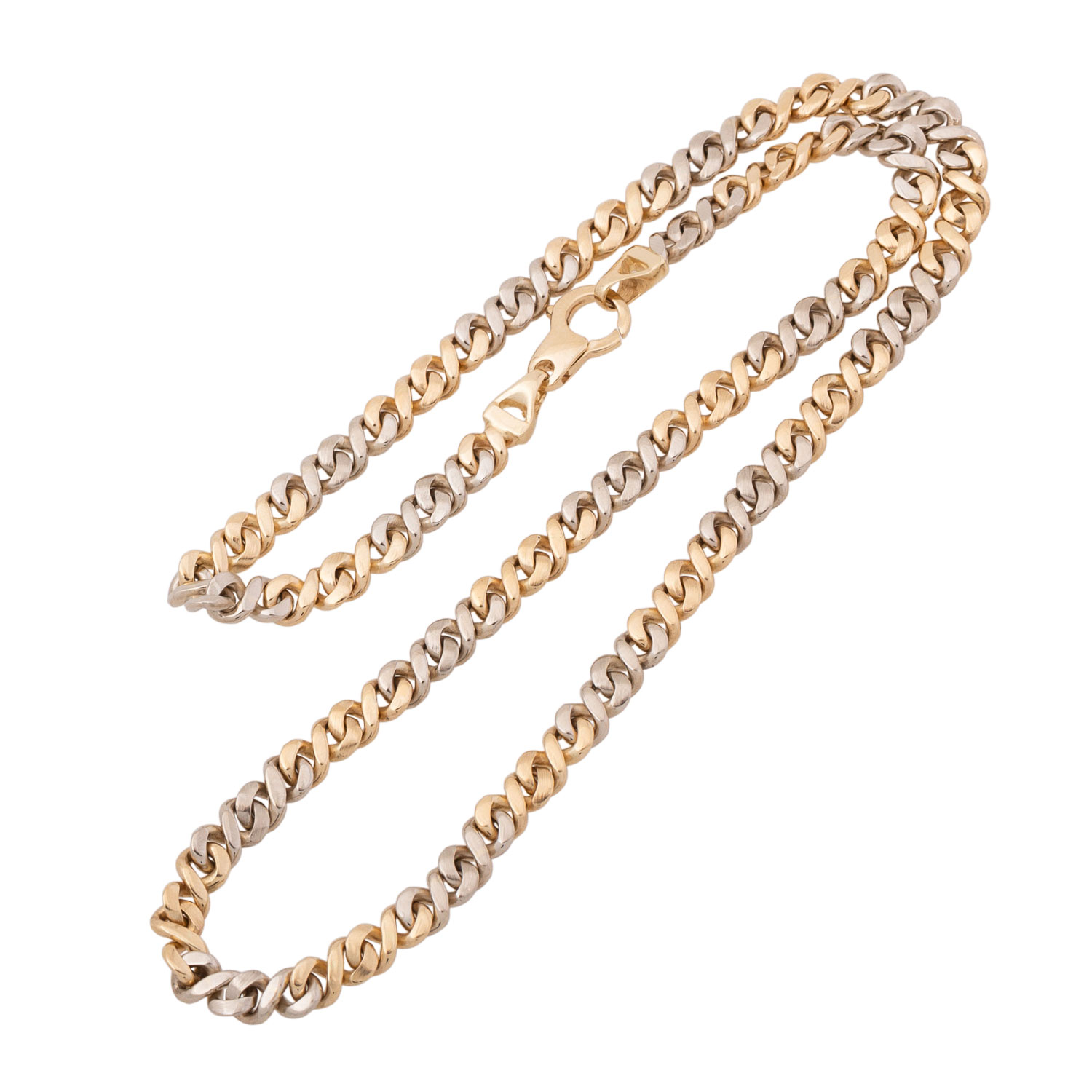 Link chain, flat, polished, 14K yellow gold/white gold, 37.5 g, L: approx. 45.5 cm, W: approx. 0.5 cm, 21st century, minor signs of wear.