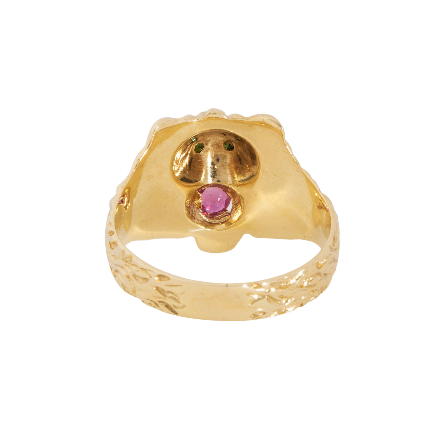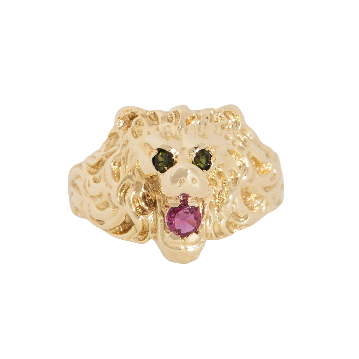 Lion's head' ring, 2 green tourmalines, 1 ruby,