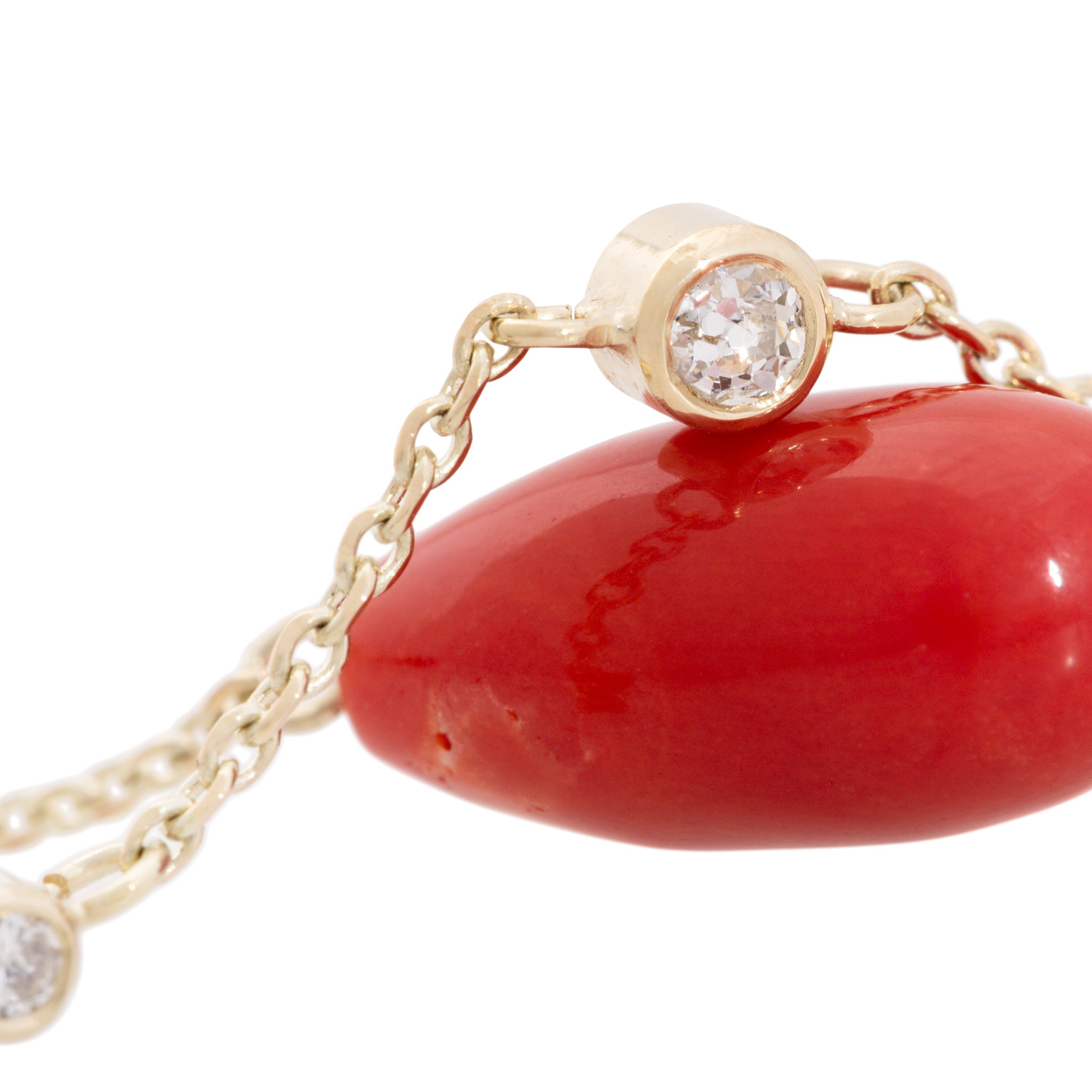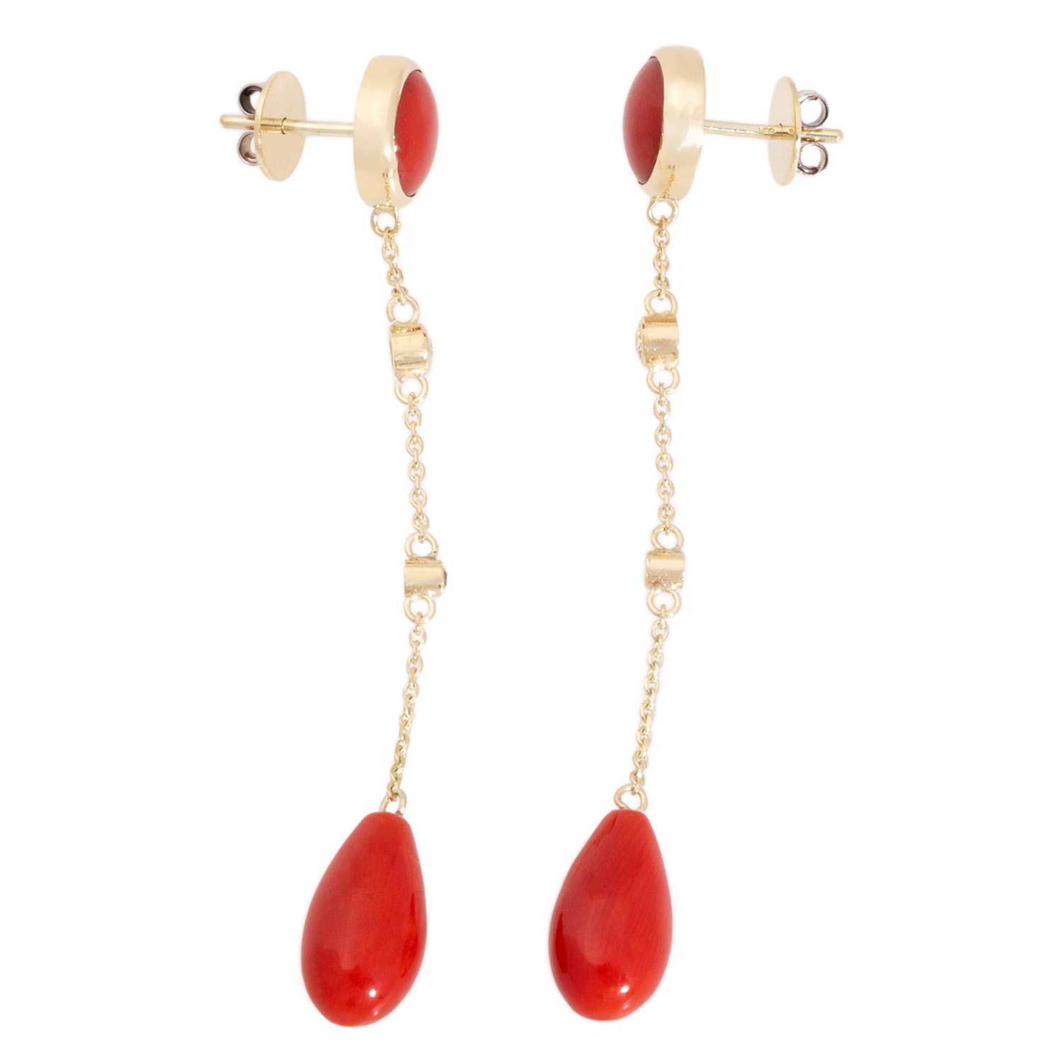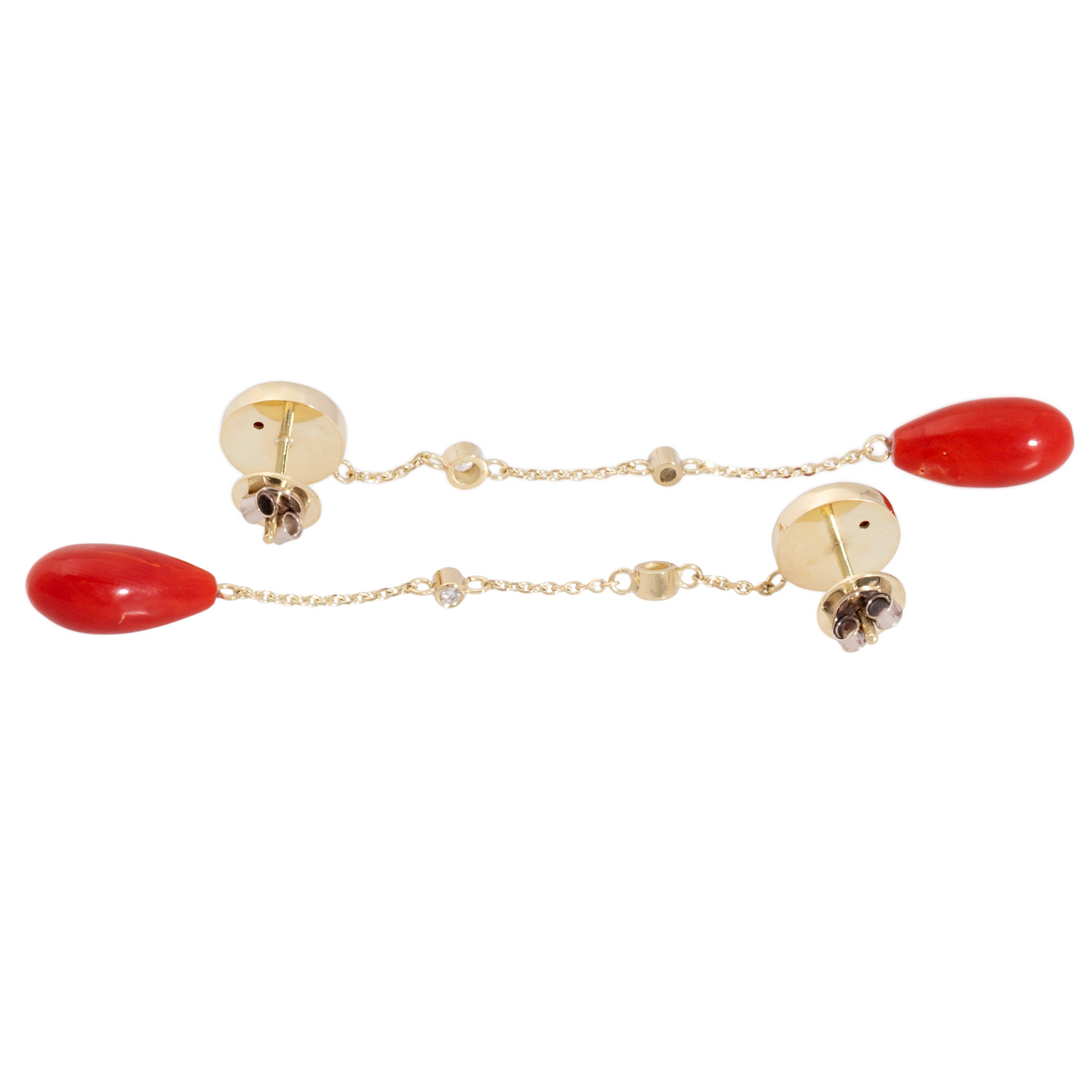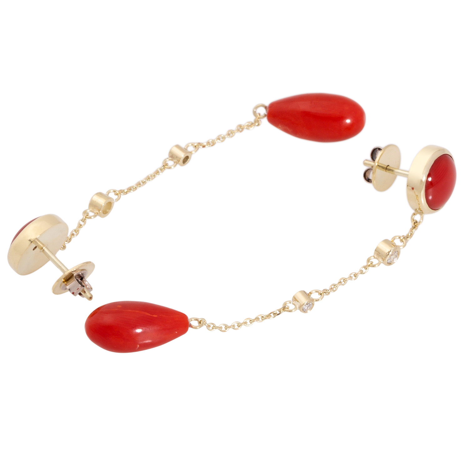 Long drop earrings with coral and diamonds totaling ca. 0.2 ct,