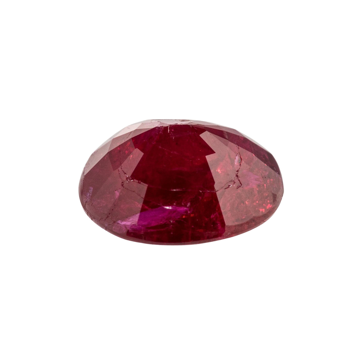 Loose ruby weighing 1.20 ct, star/step cut, oval, no indications of heating, origin: Mozambique, numerous small fissures and nicks near the surface, including Bellerophon gemstone report (03/2025).