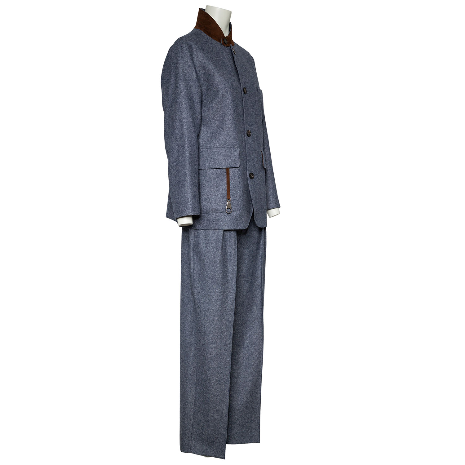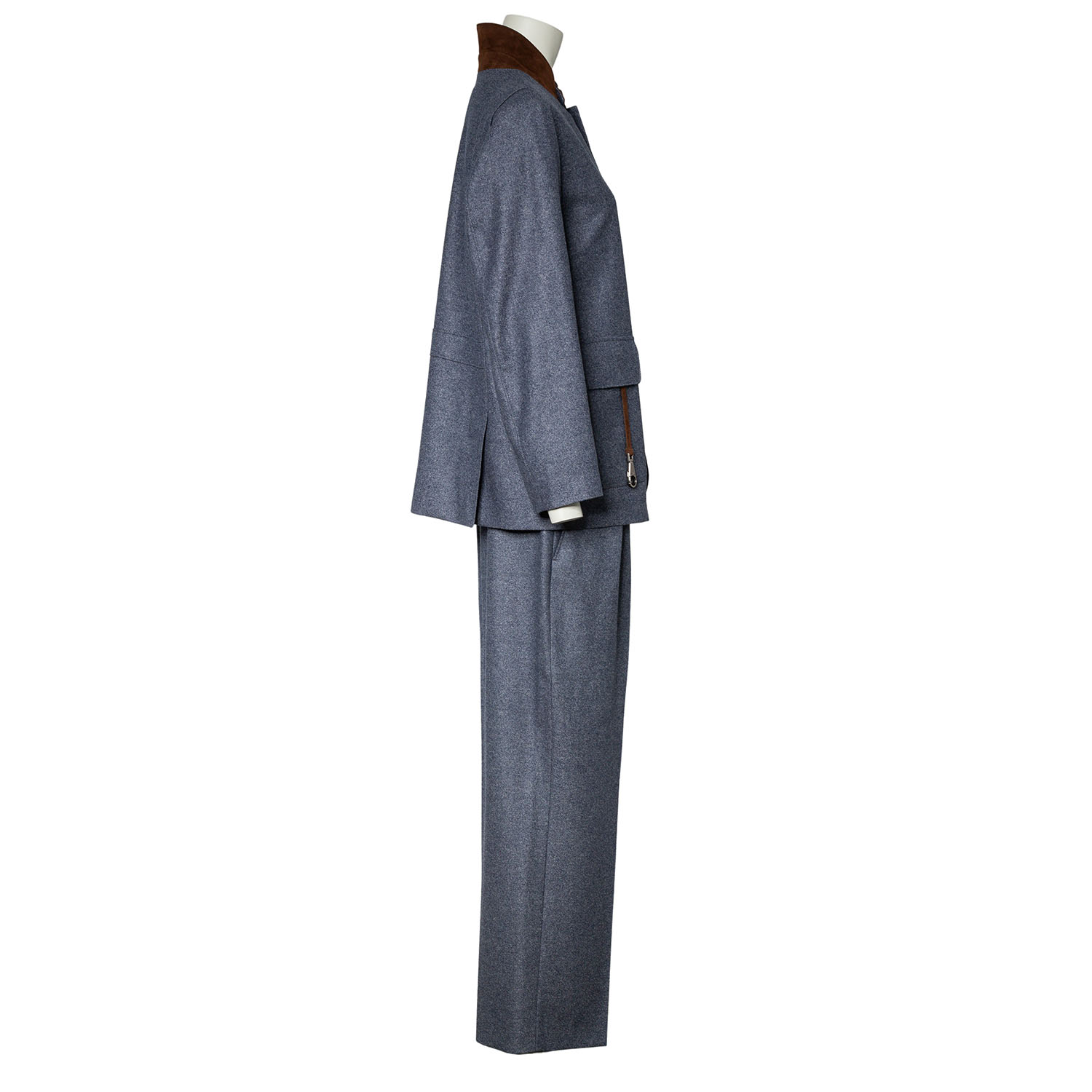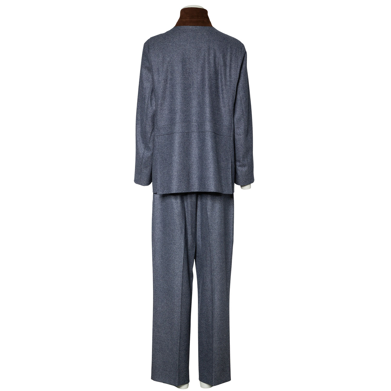 LORO PIANA pantsuit, size L. Jacket “ROADSTER” (RRP approx.: €3,950) and pants “YURIK” (RRP: €1,400) made of cashmere blend in blue-gray melange. Very good condition.