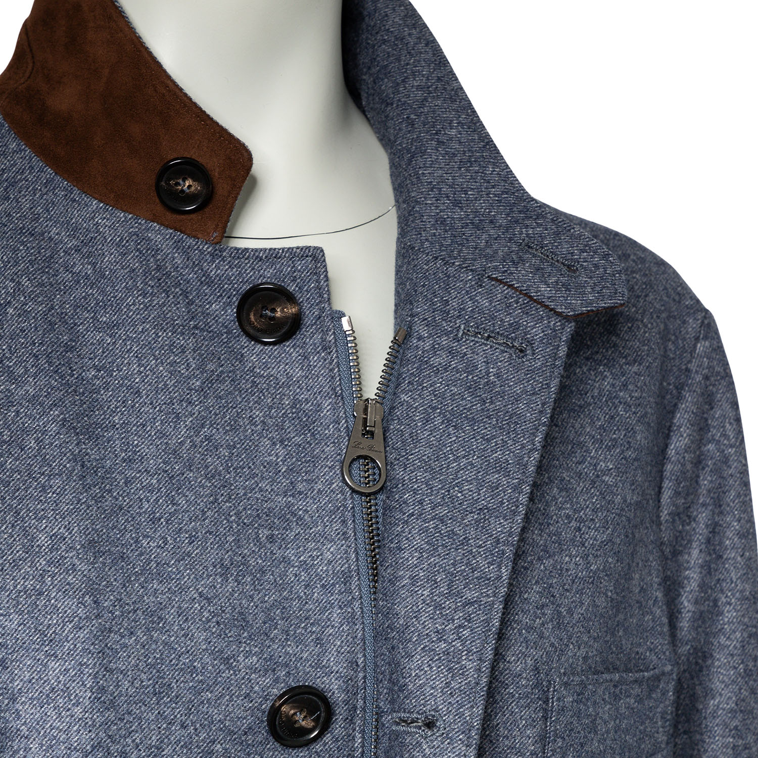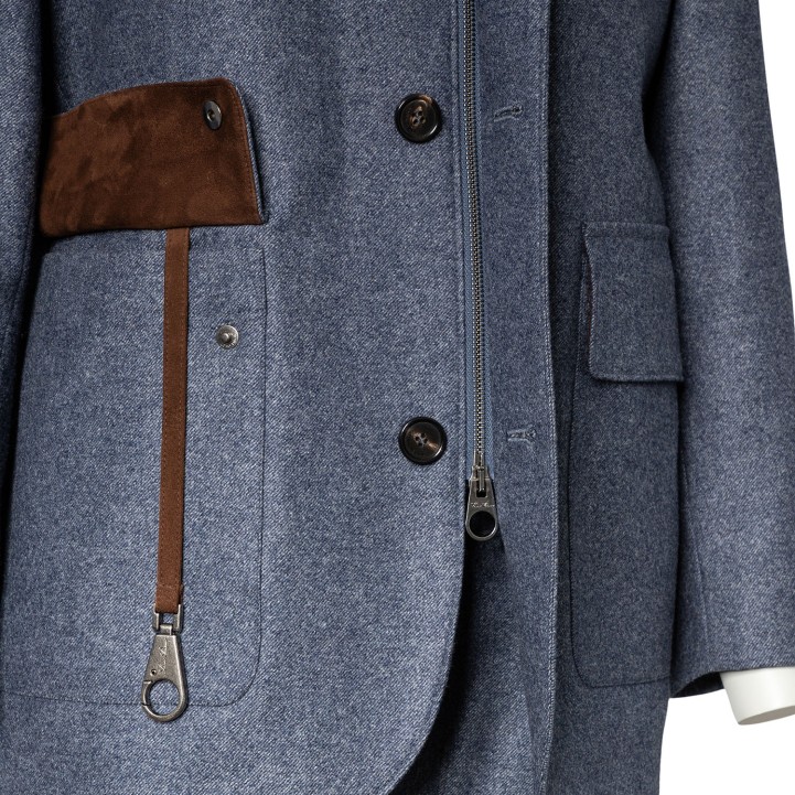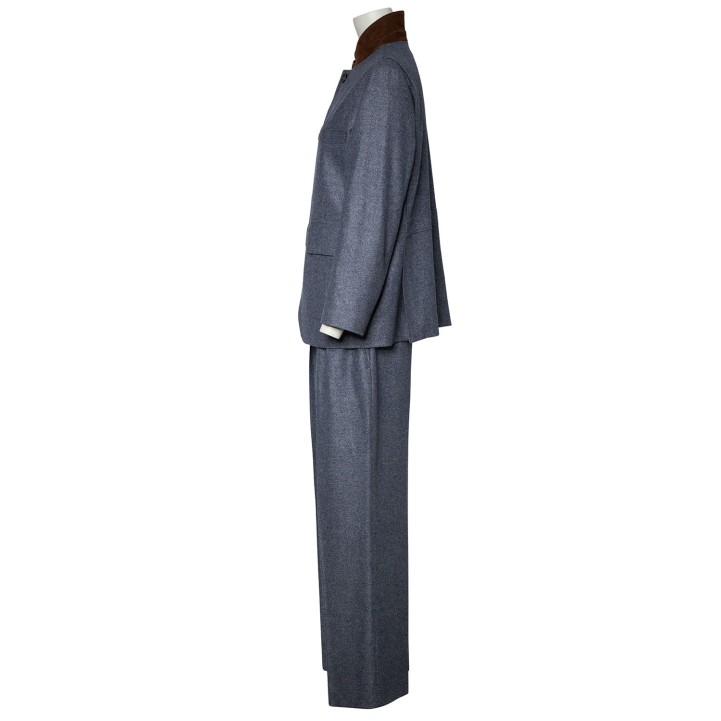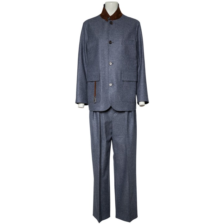 LORO PIANA pantsuit, size L. Jacket “ROADSTER” (RRP approx.: €3,950) and pants “YURIK” (RRP: €1,400) made of cashmere blend in blue-gray melange. Very good condition.